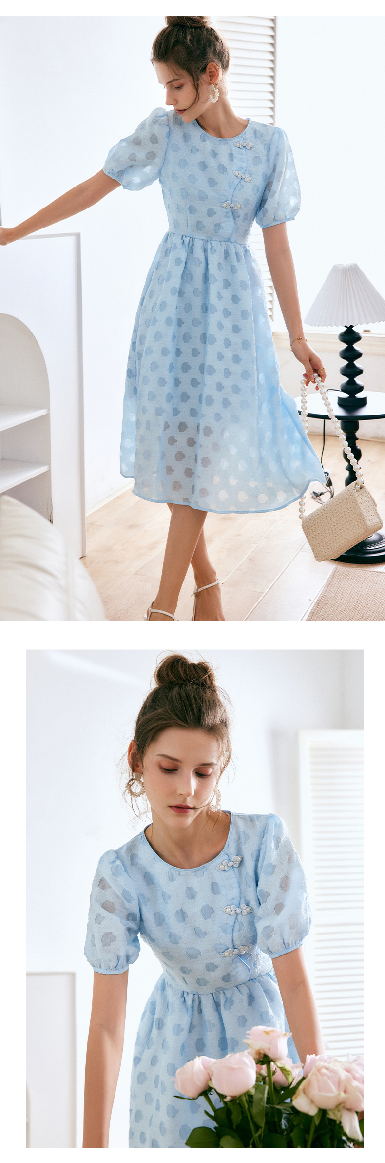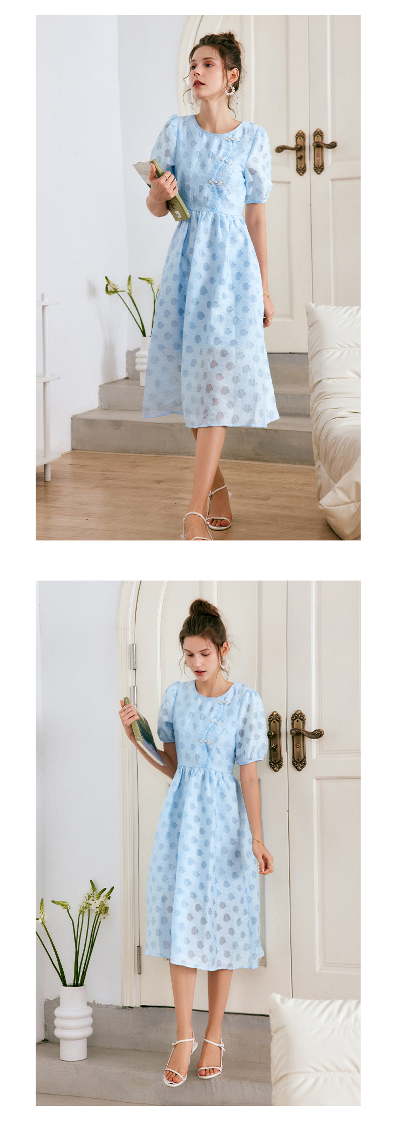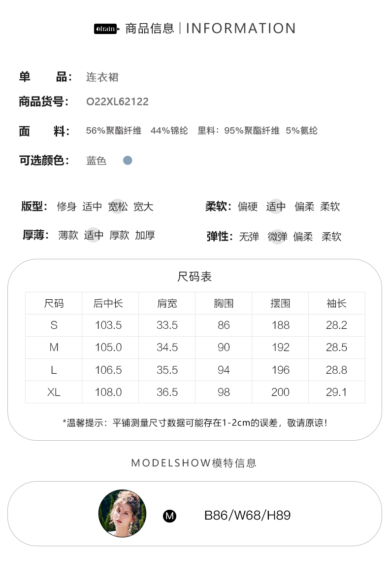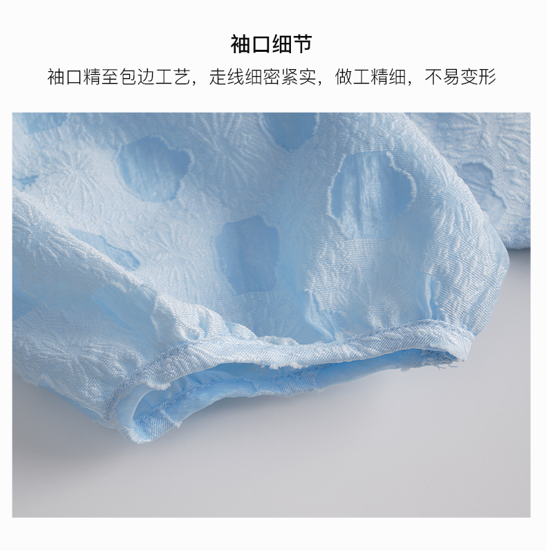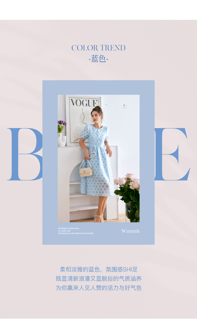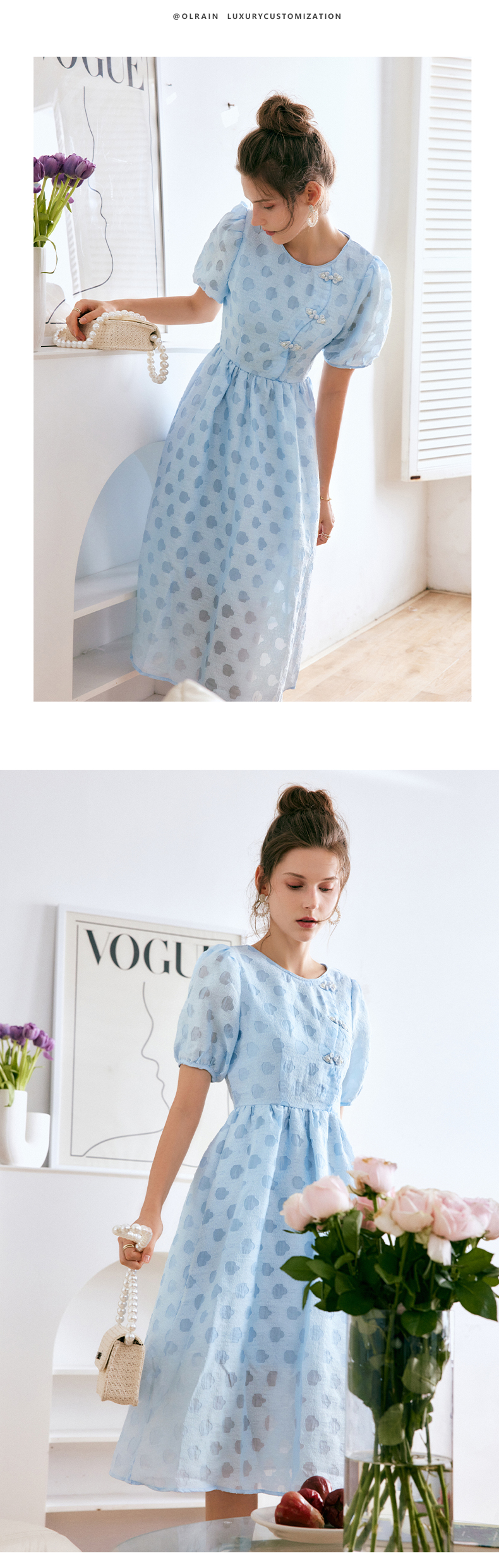 OLrain法式高级穿搭蓝色短袖连衣裙女夏季2022新款新中式气质裙子