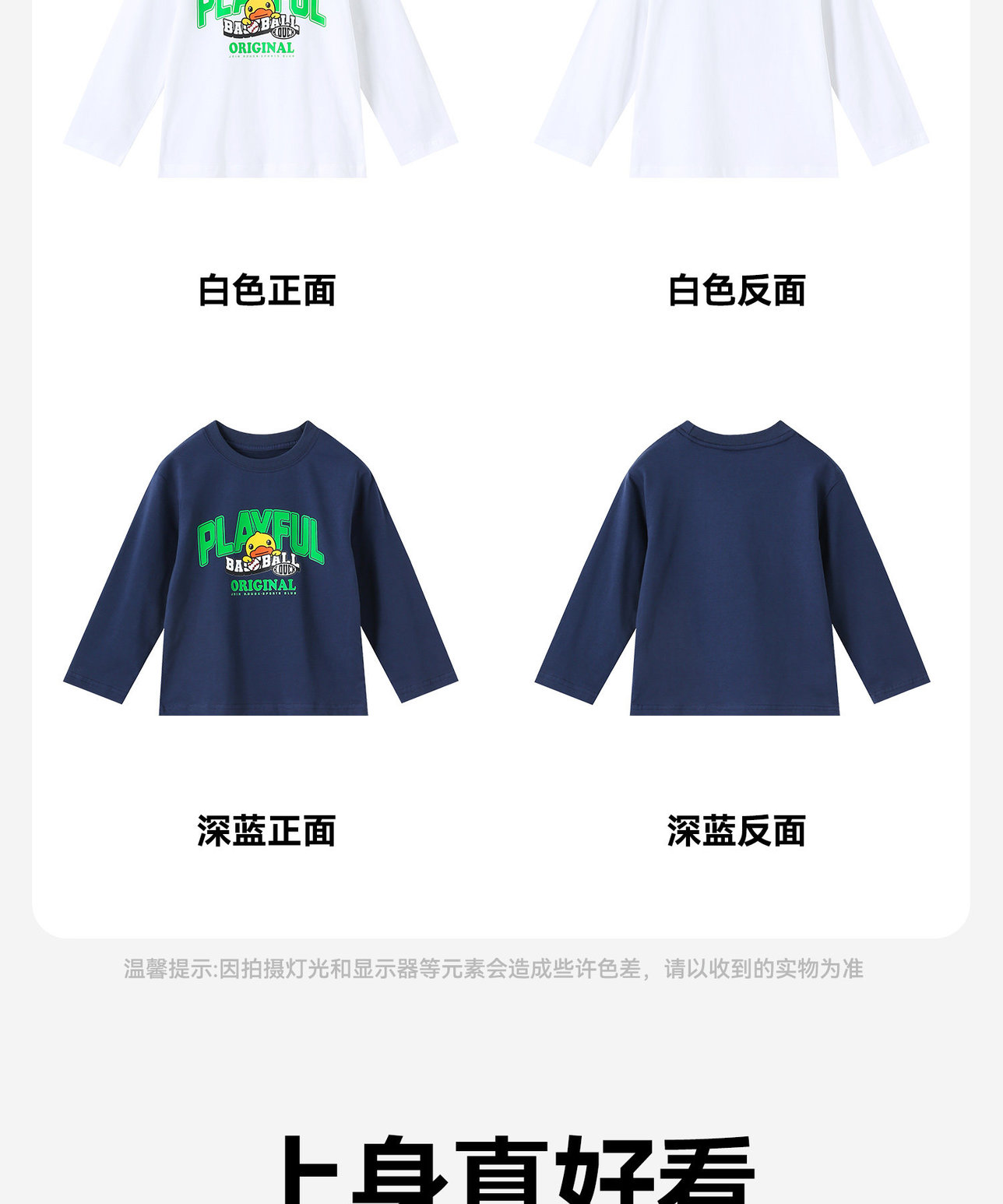 bduck小黄鸭童装春秋男童T恤长袖儿童纯棉打底衫春季男孩内搭110-160 BF1606031