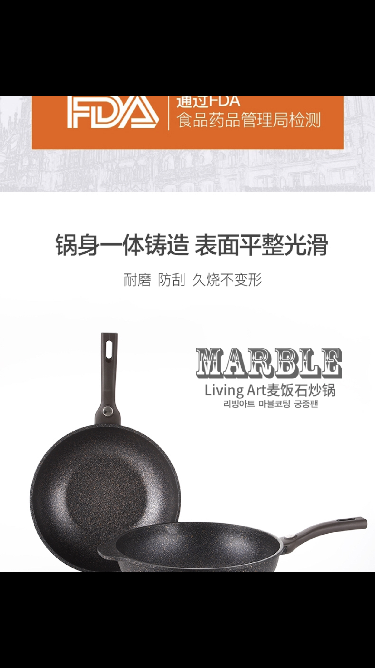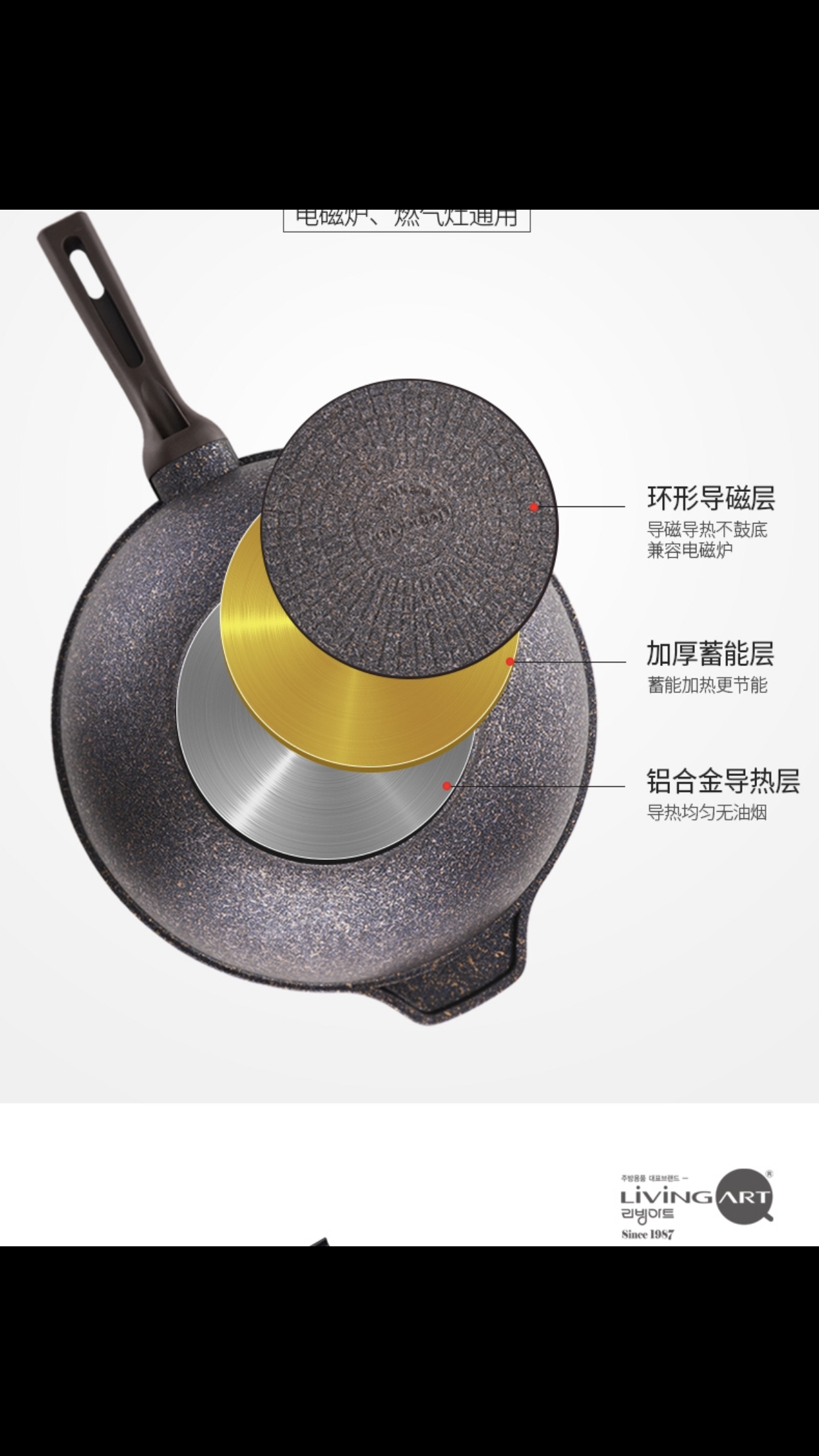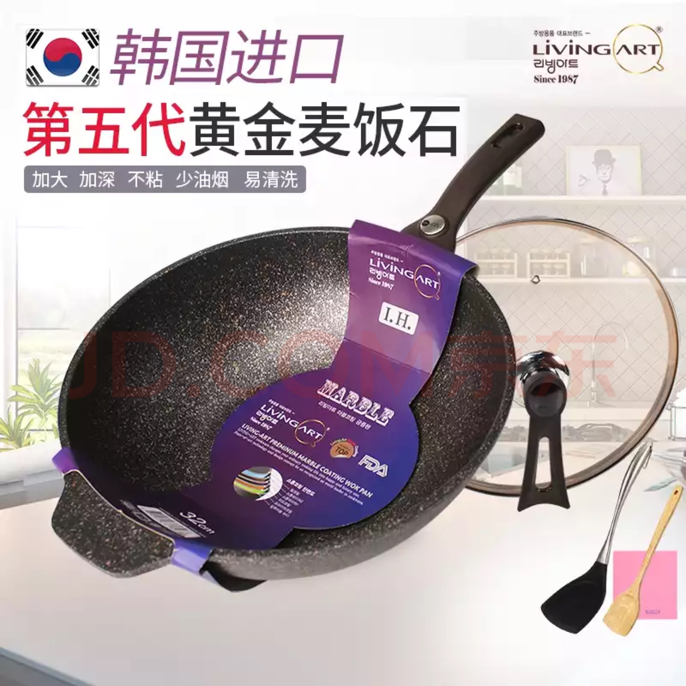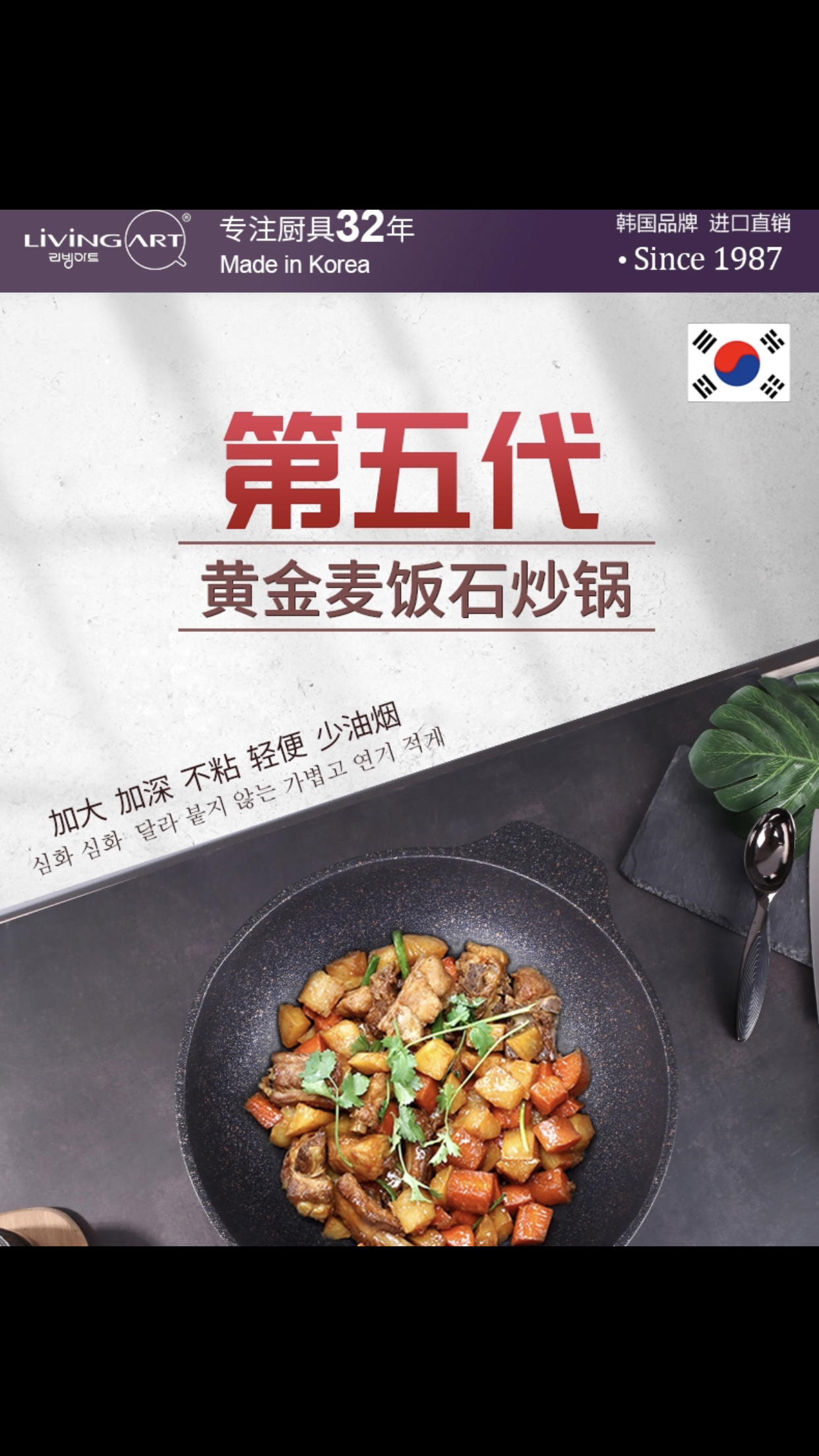 韩国进口-Living Art黄金麦饭石炒锅 彩盒IH1电磁炉可用-会员6折