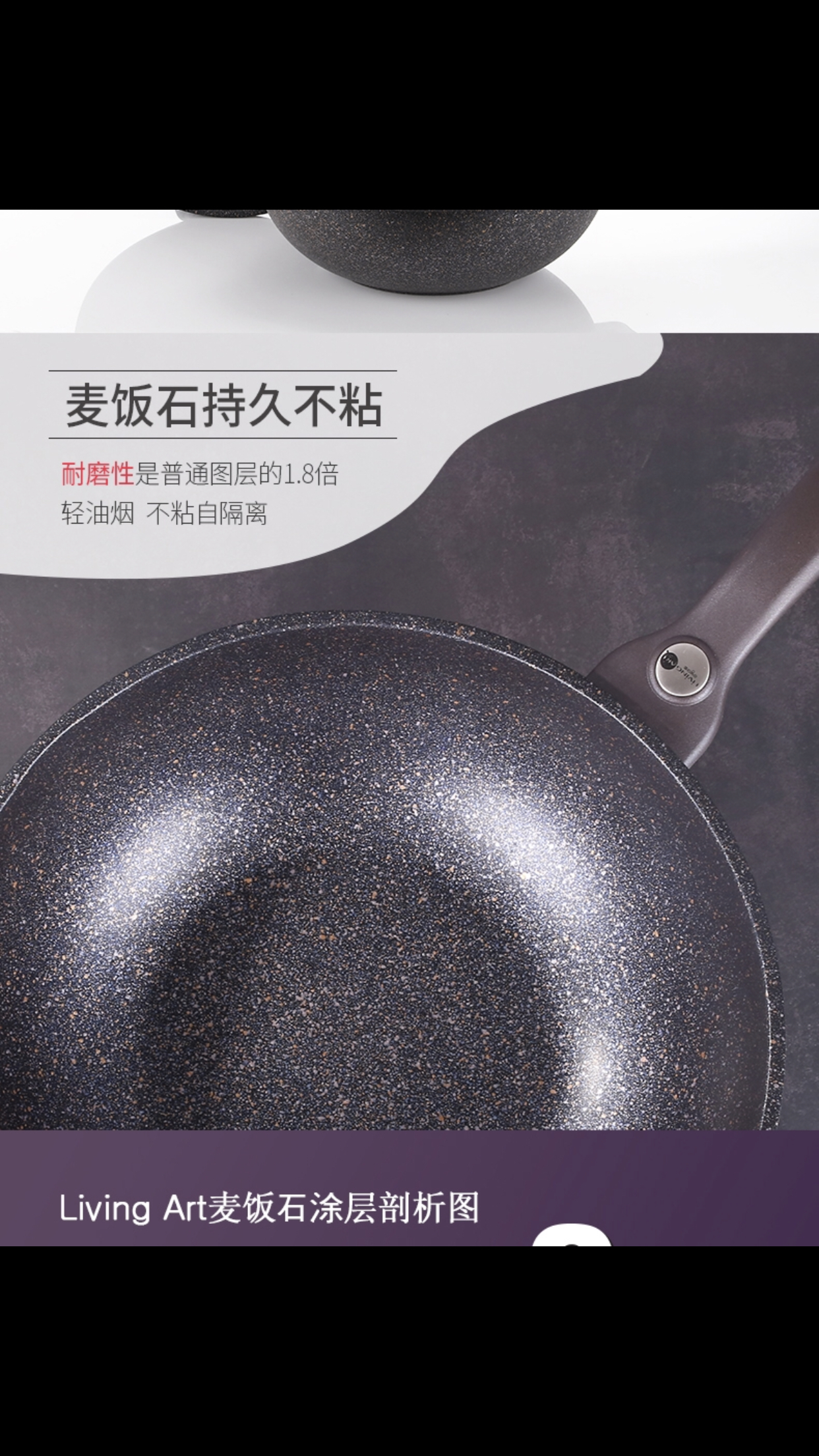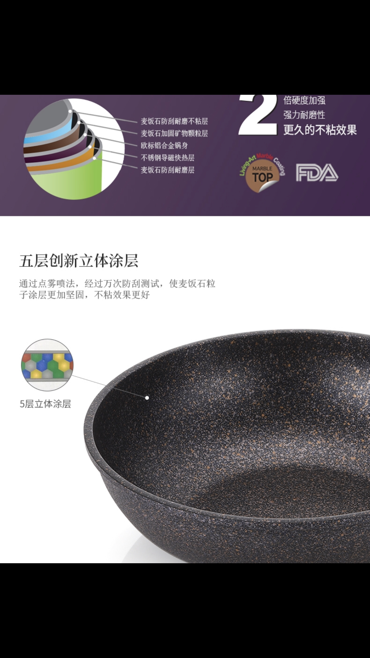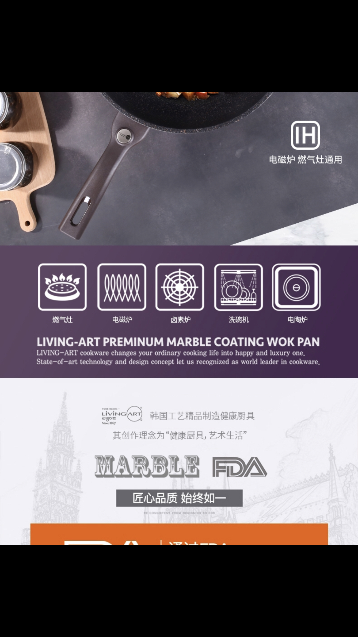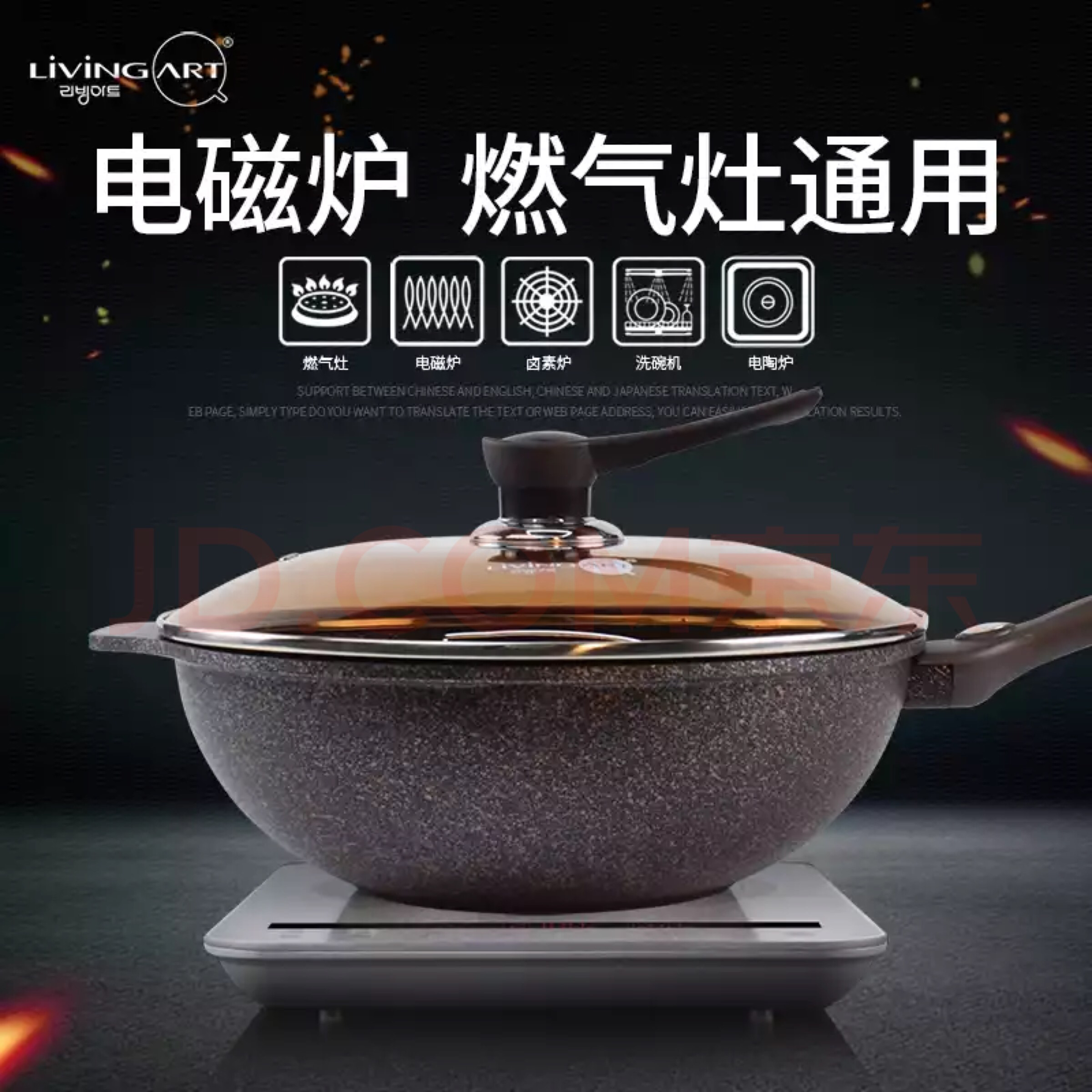 韩国进口-Living Art黄金麦饭石炒锅 彩盒IH1电磁炉可用-会员6折