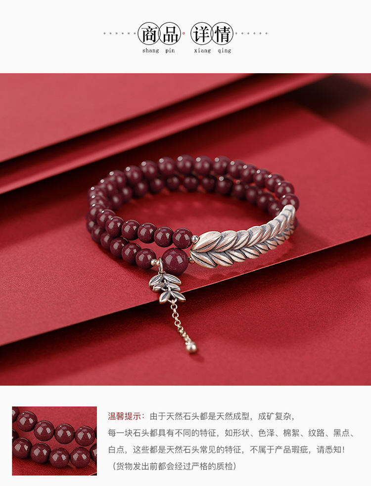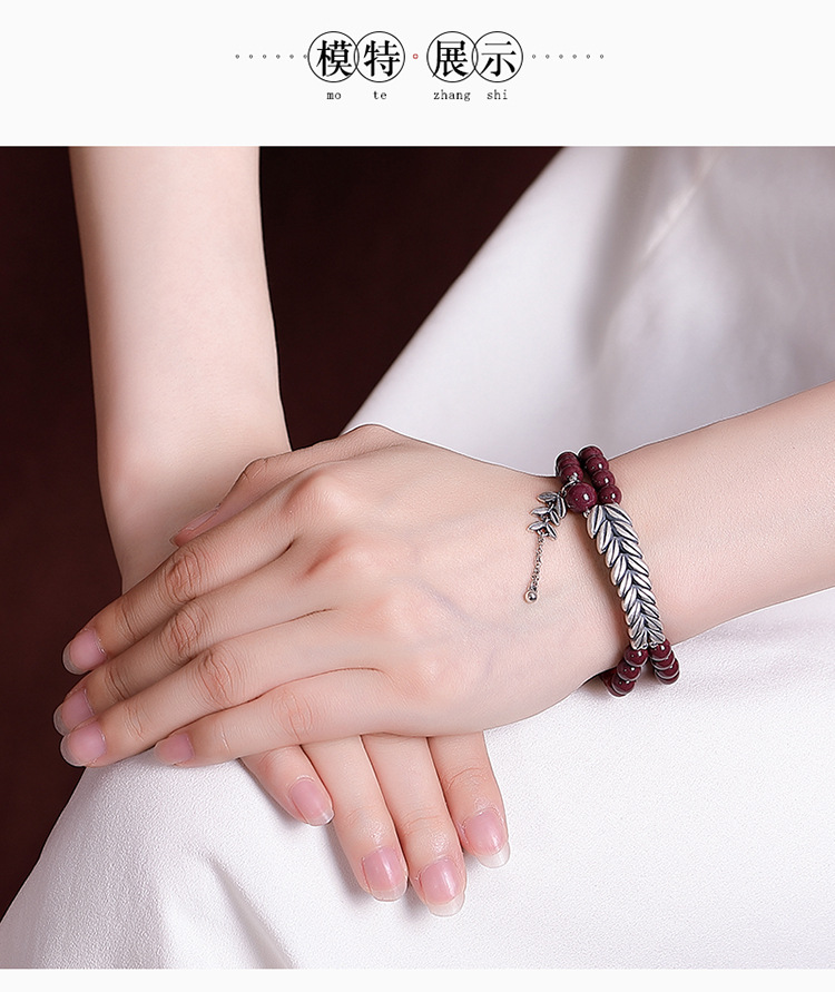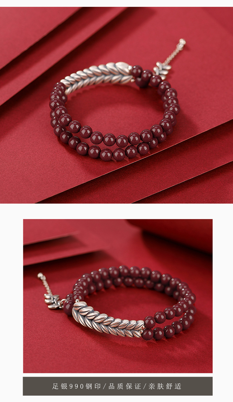 【穗穗平安】S990银足银朱砂复古麦穗圆珠双圈手串【CW-SL11563】手链
