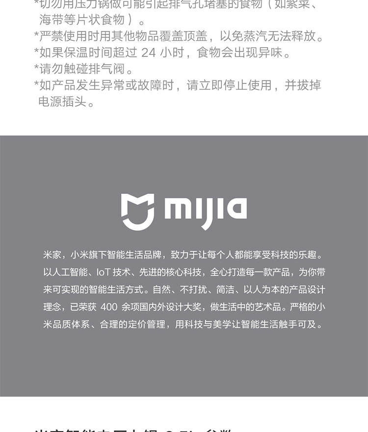 【臻实惠】米家智能电压力锅2.5L 家用迷你多功能电饭煲
