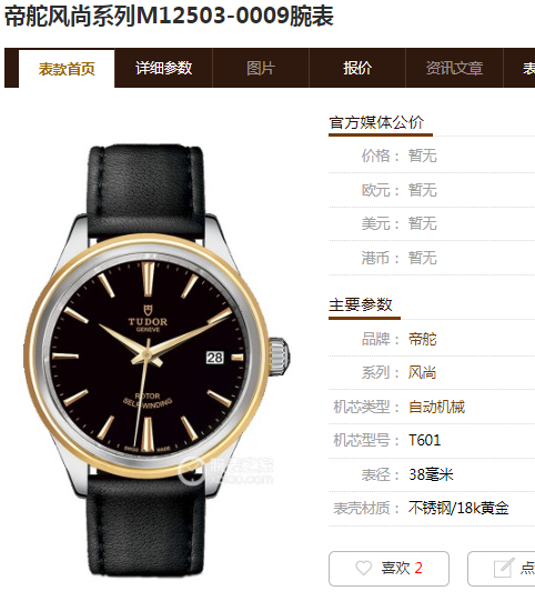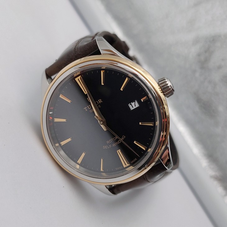 帝舵风尚系列M12503-0009男款机械表,38mm表径,黑色表盘,条形刻度,不锈钢/18k黄金表壳,日期显示,95新单表,专柜价22000,现好价