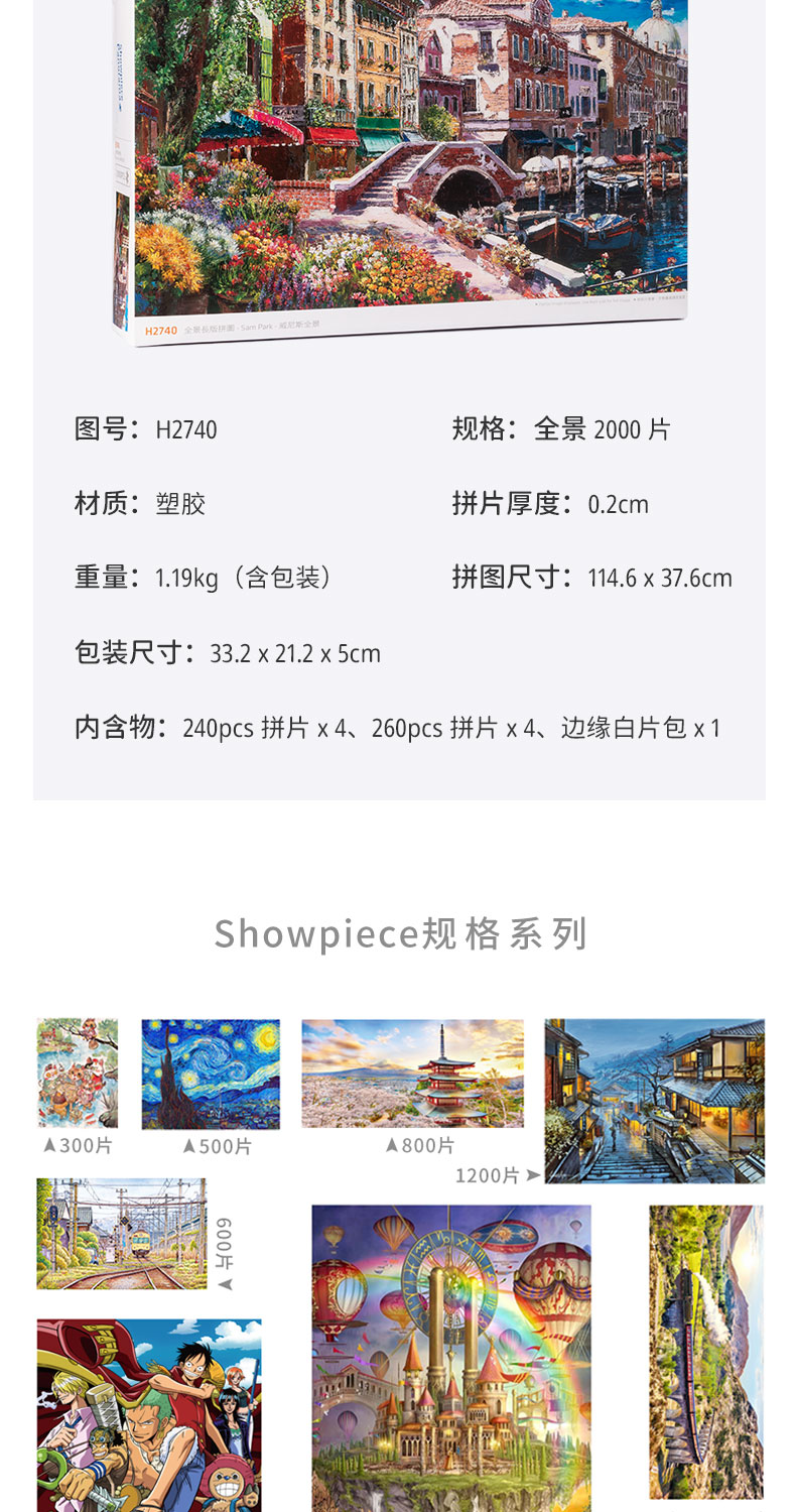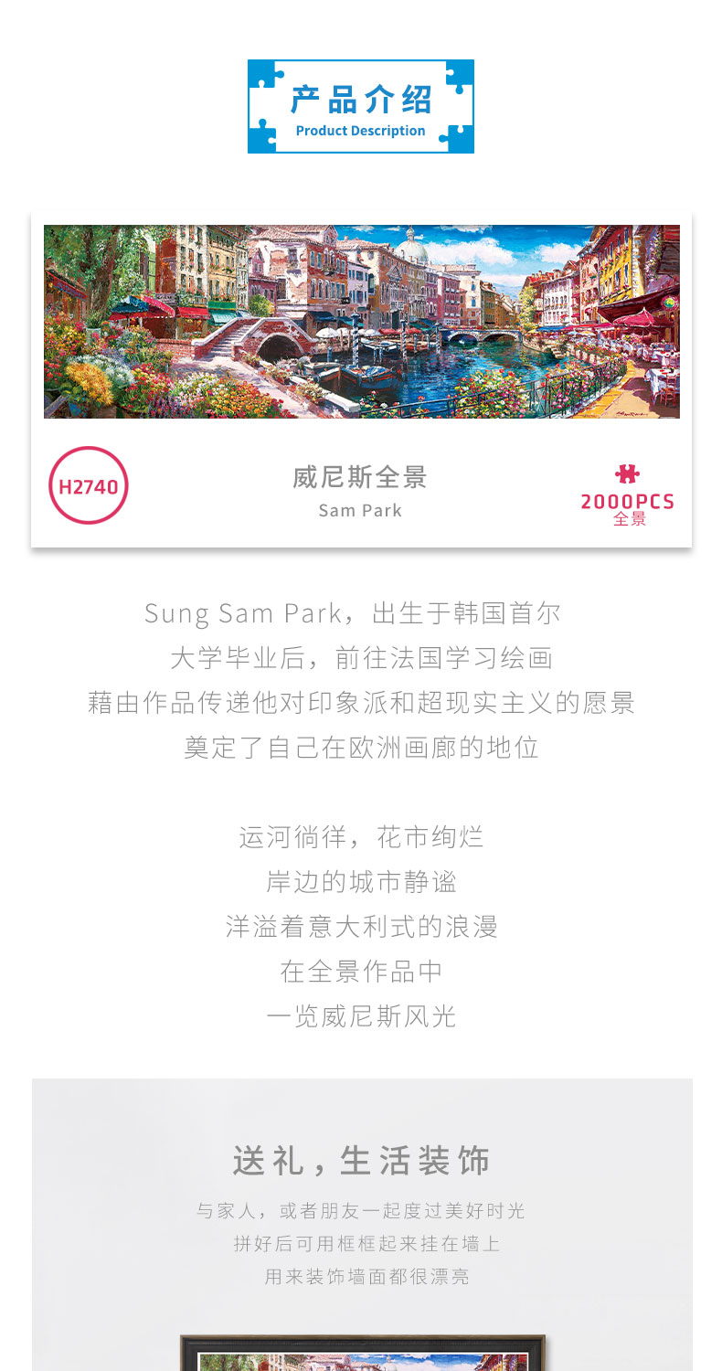 【折扣商品 不退不换】2000片 全景平面拼图 塑料拼图 H2740 全景长版拼图-Sam Park-威尼斯全景