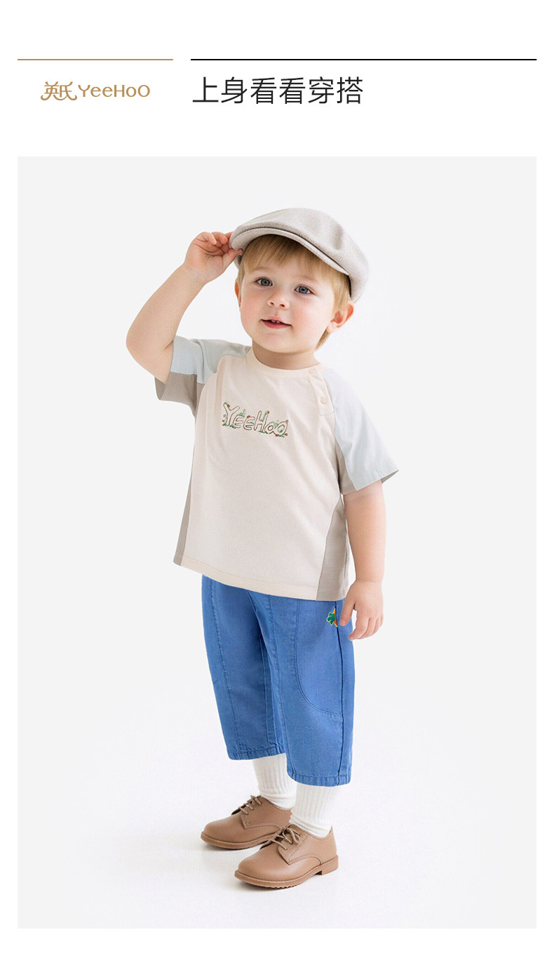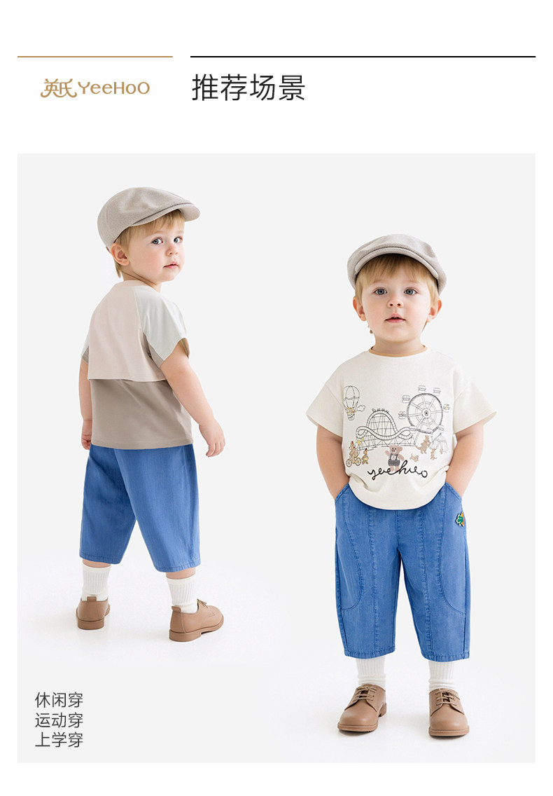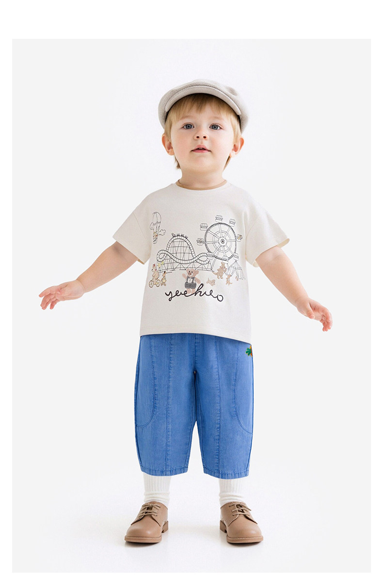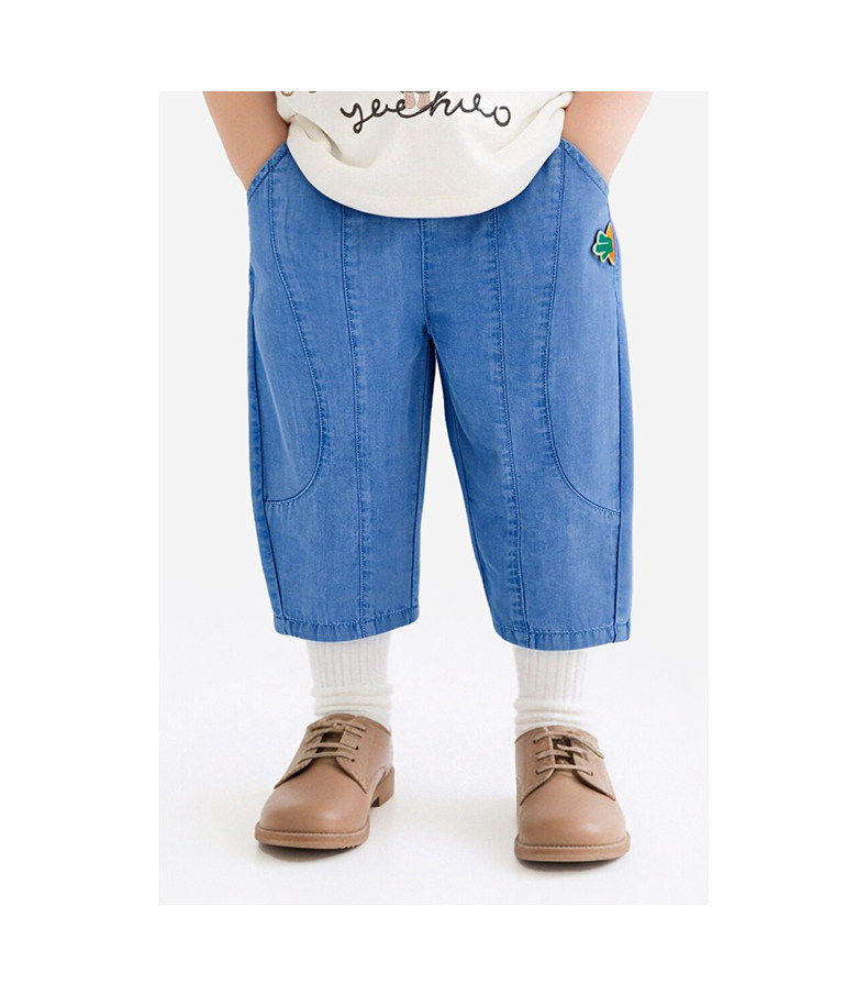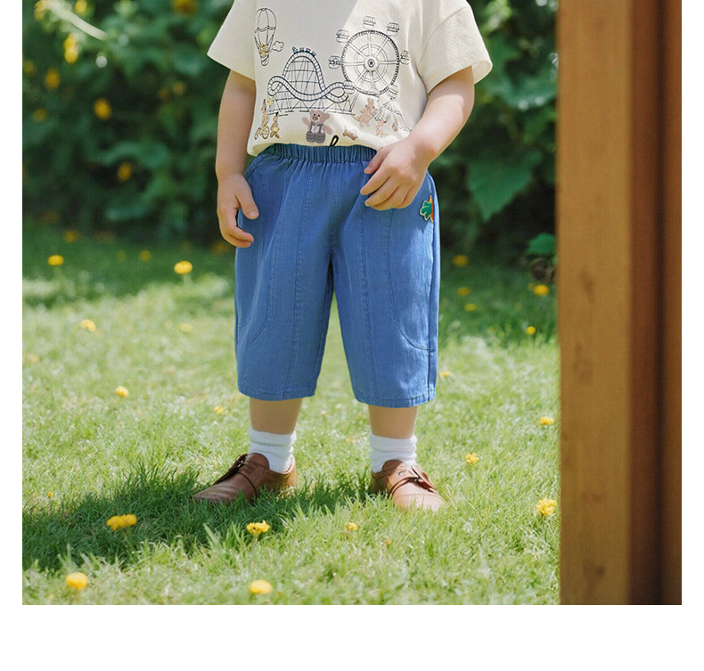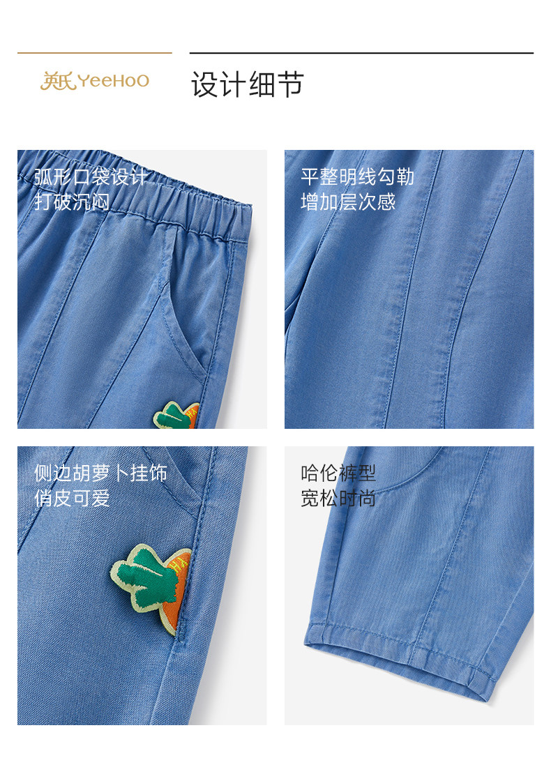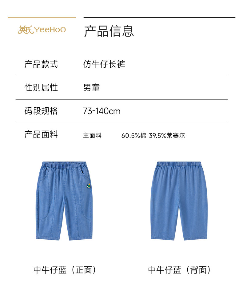 英氏儿童裤子夏季新款男女童休闲长裤百搭蓝色牛仔裤YRKCJ2S019A