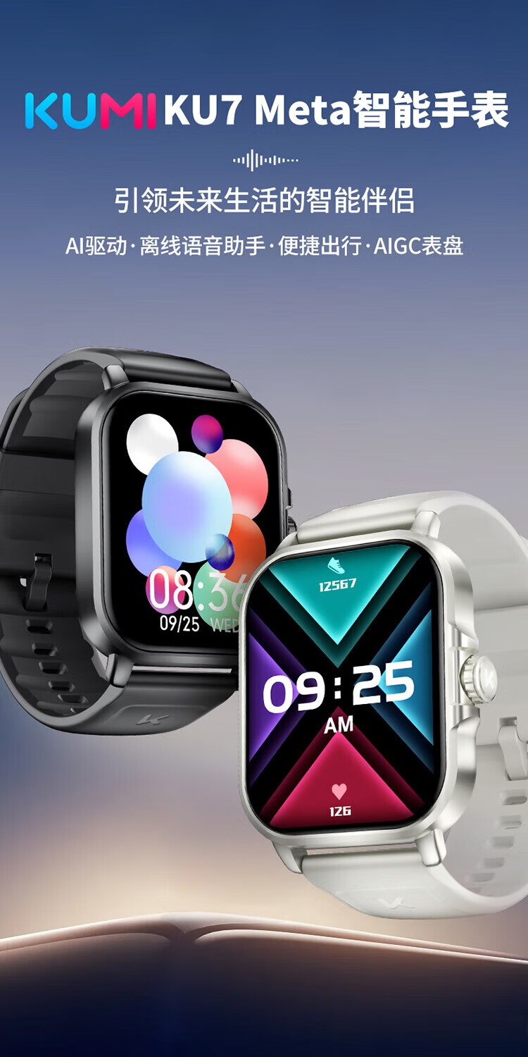 KUMI KU7 Meta 离线语音助手 时尚穿搭好搭档 腕上智能助手 送充电头 锖色