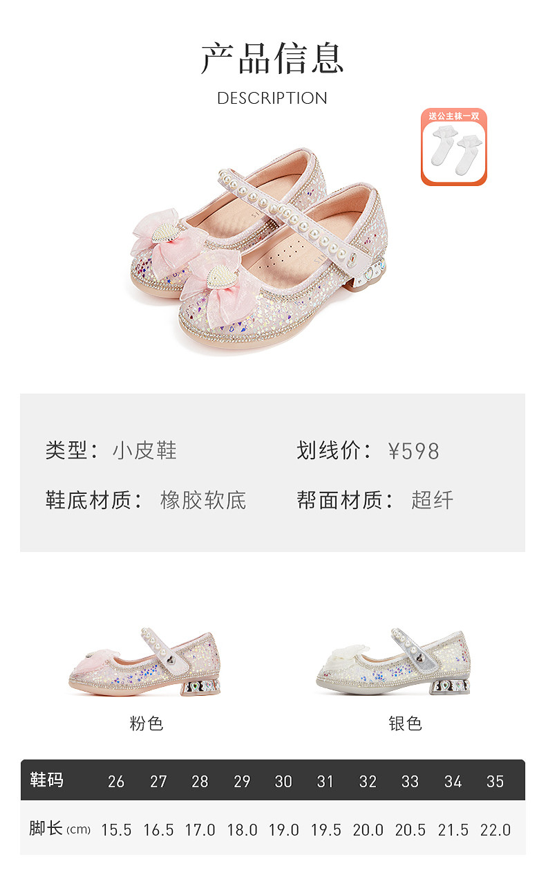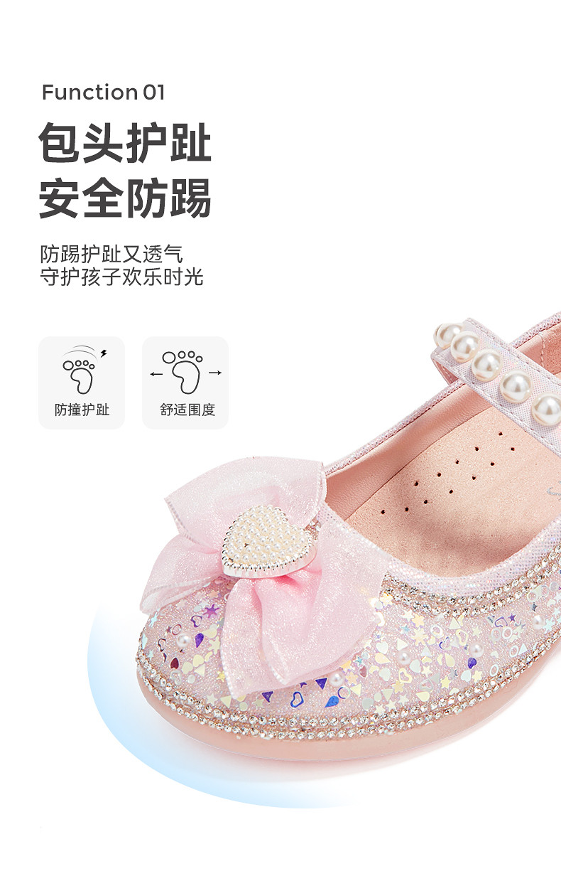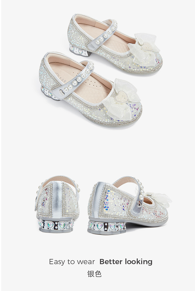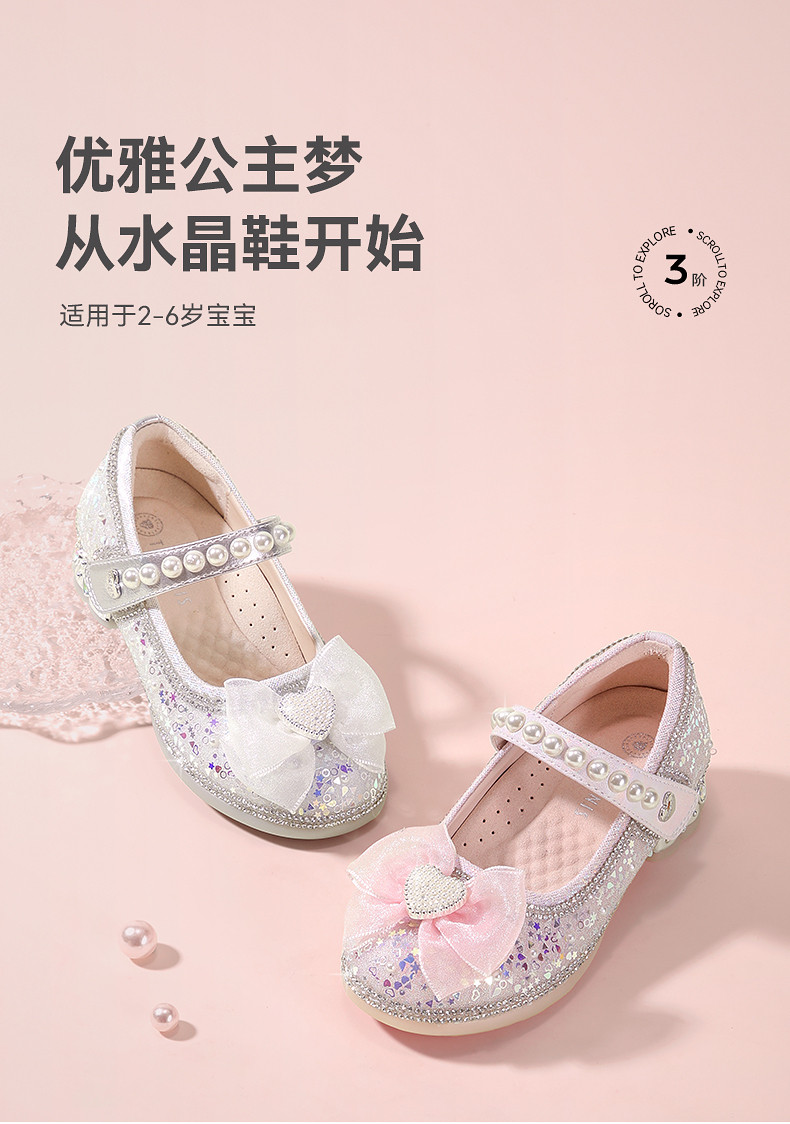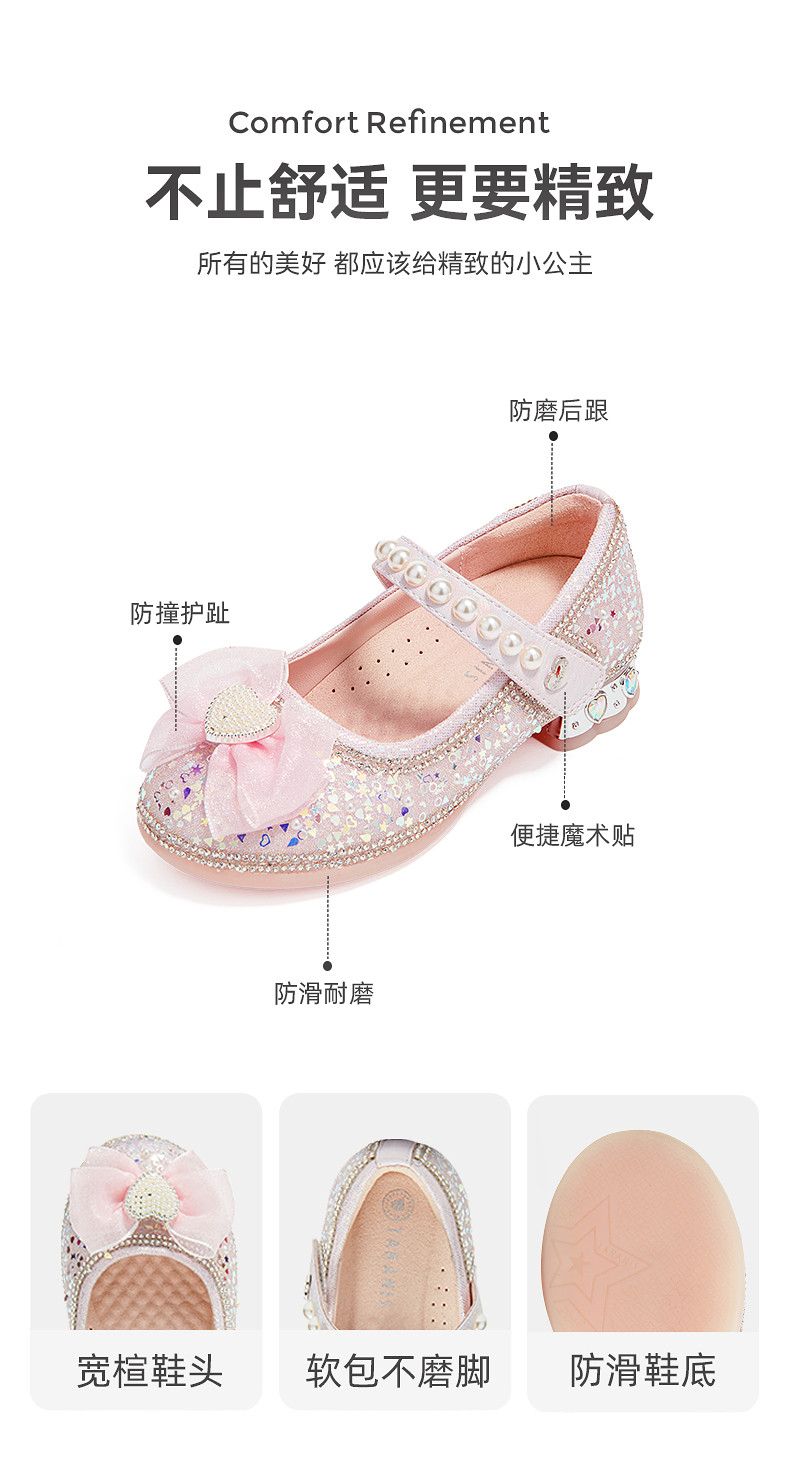 泰兰尼斯童鞋2026春季新款女童皮鞋闪亮水晶鞋软底公主鞋女孩单鞋M03X6A9054
