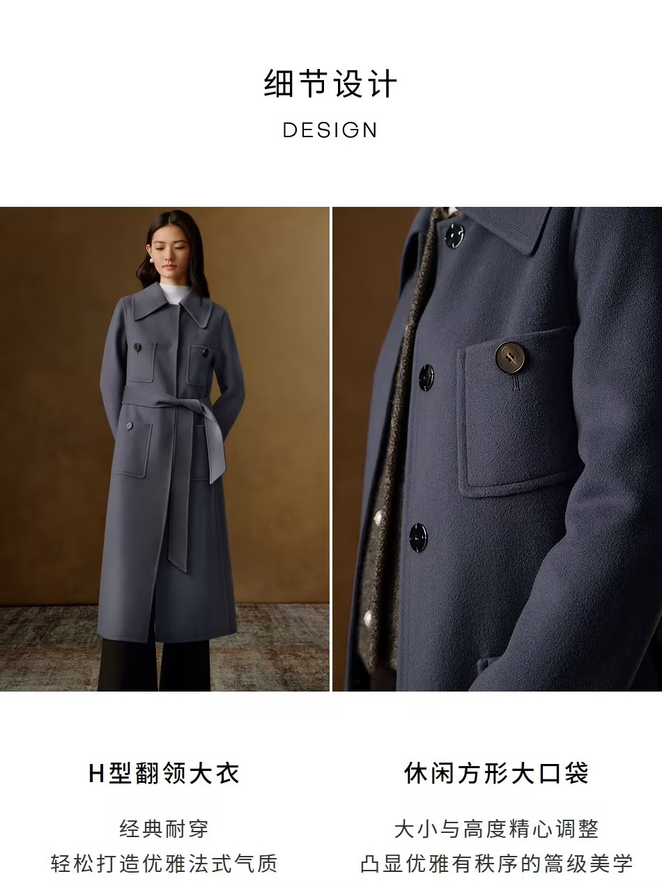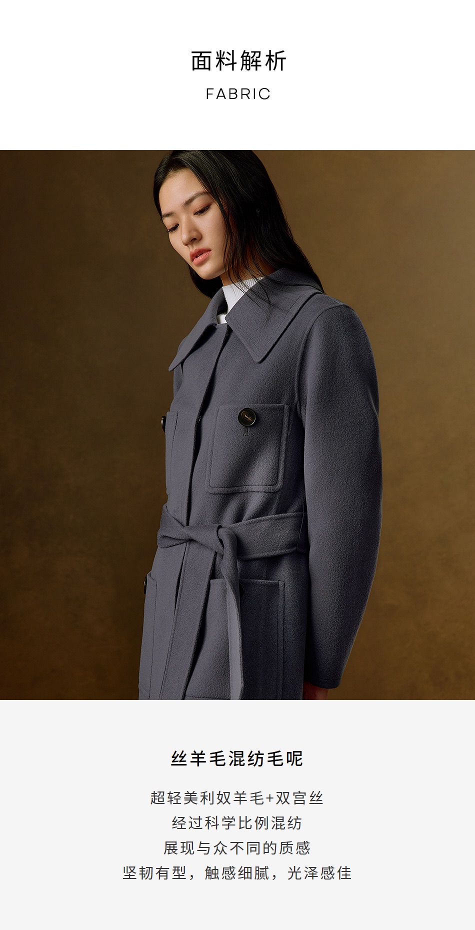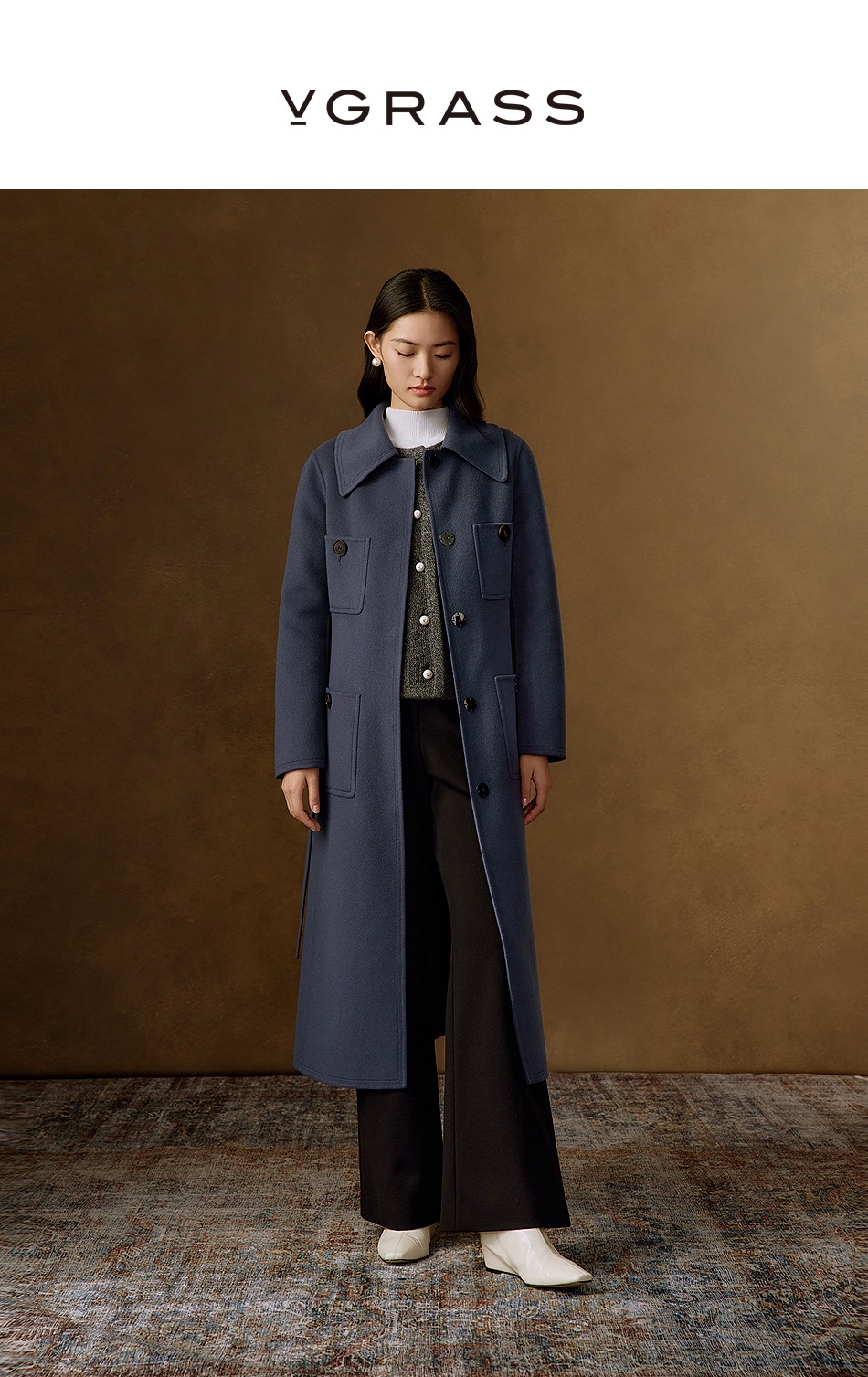 VGRASS维格娜丝24年冬季新款丝羊毛大口袋廓形大衣