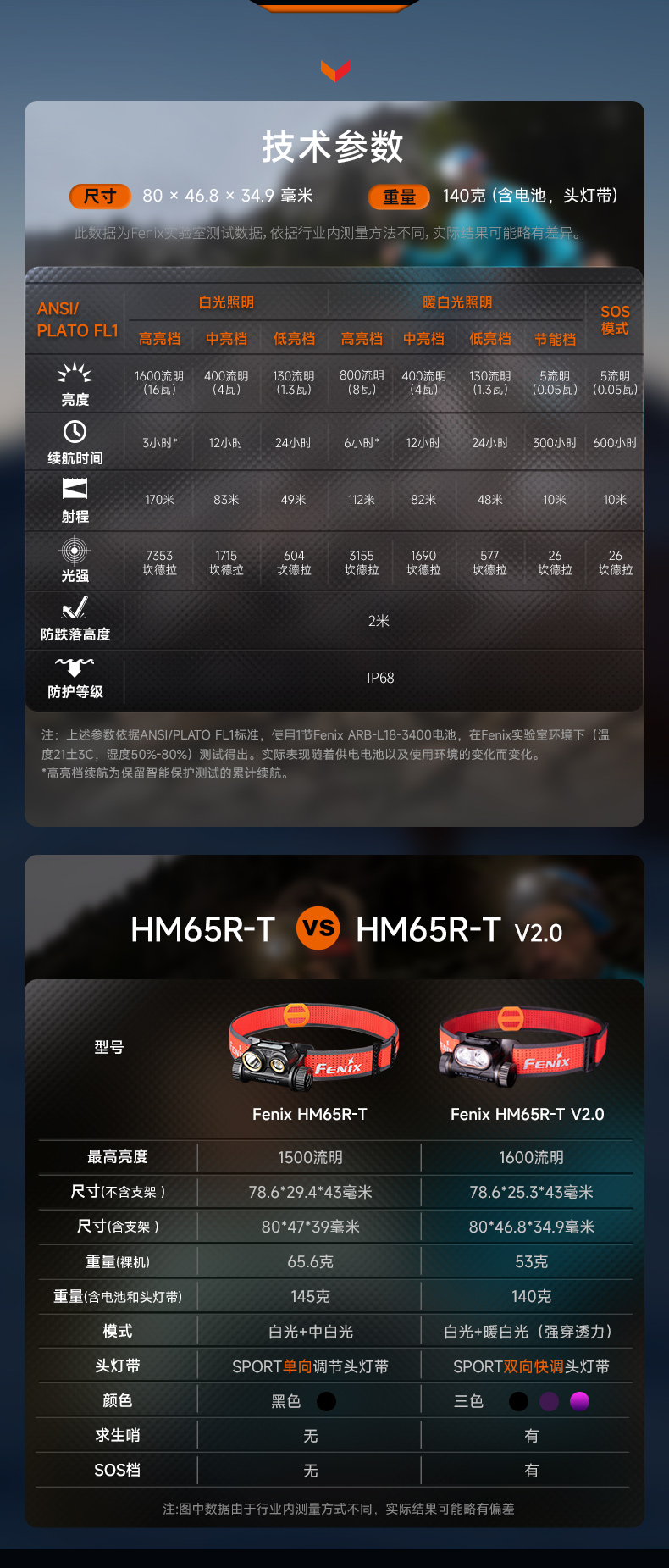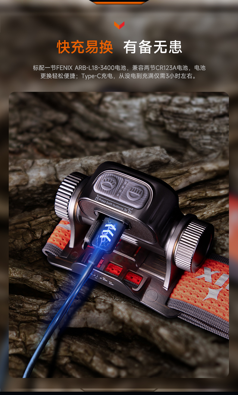 Fenix HM65R-T V2.0户外强光远射Type-C长续航越野跑头灯