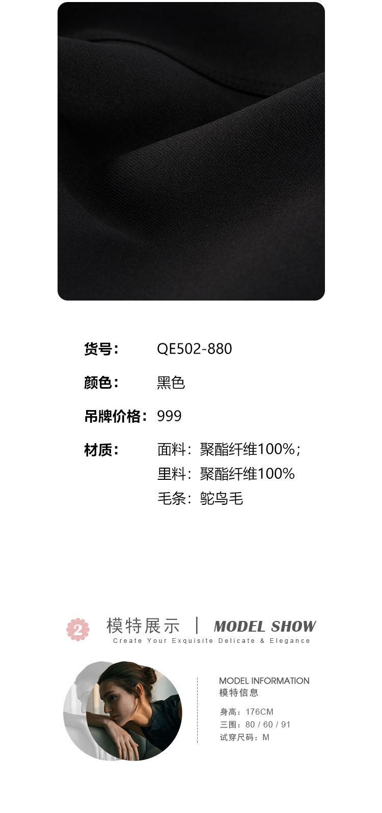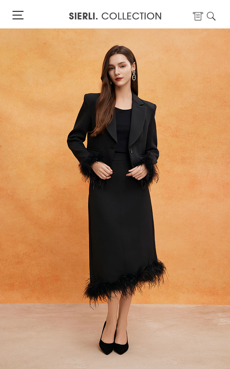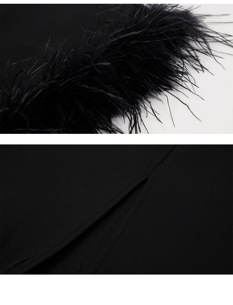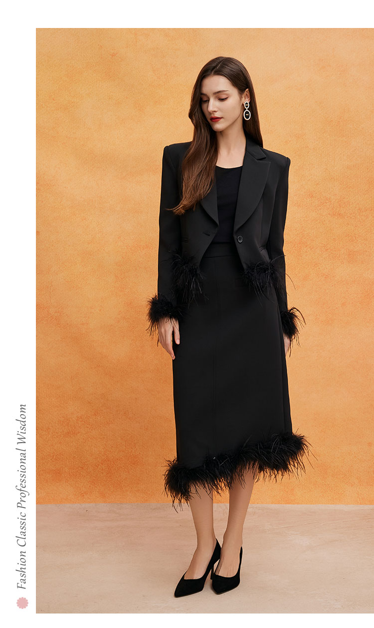 QE502斯尔丽25春季新款修身半裙可脱卸鸵鸟毛摇曳多姿不对称下摆半裙