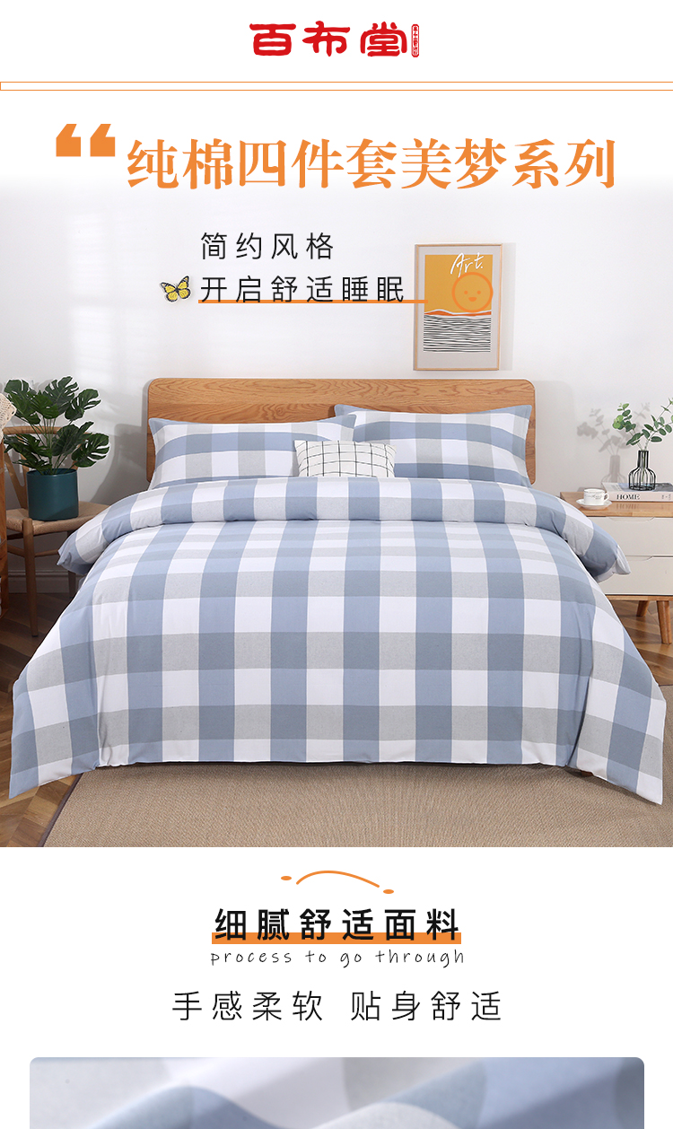 【企业】(乡村振兴商品)百布堂纯棉四件套X3-灰格 商品图2
