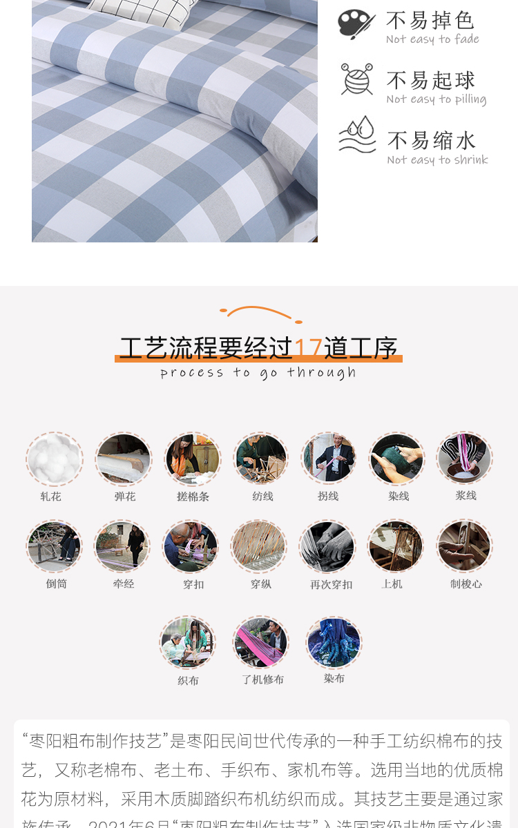 【企业】(乡村振兴商品)百布堂纯棉四件套X3-灰格 商品图4