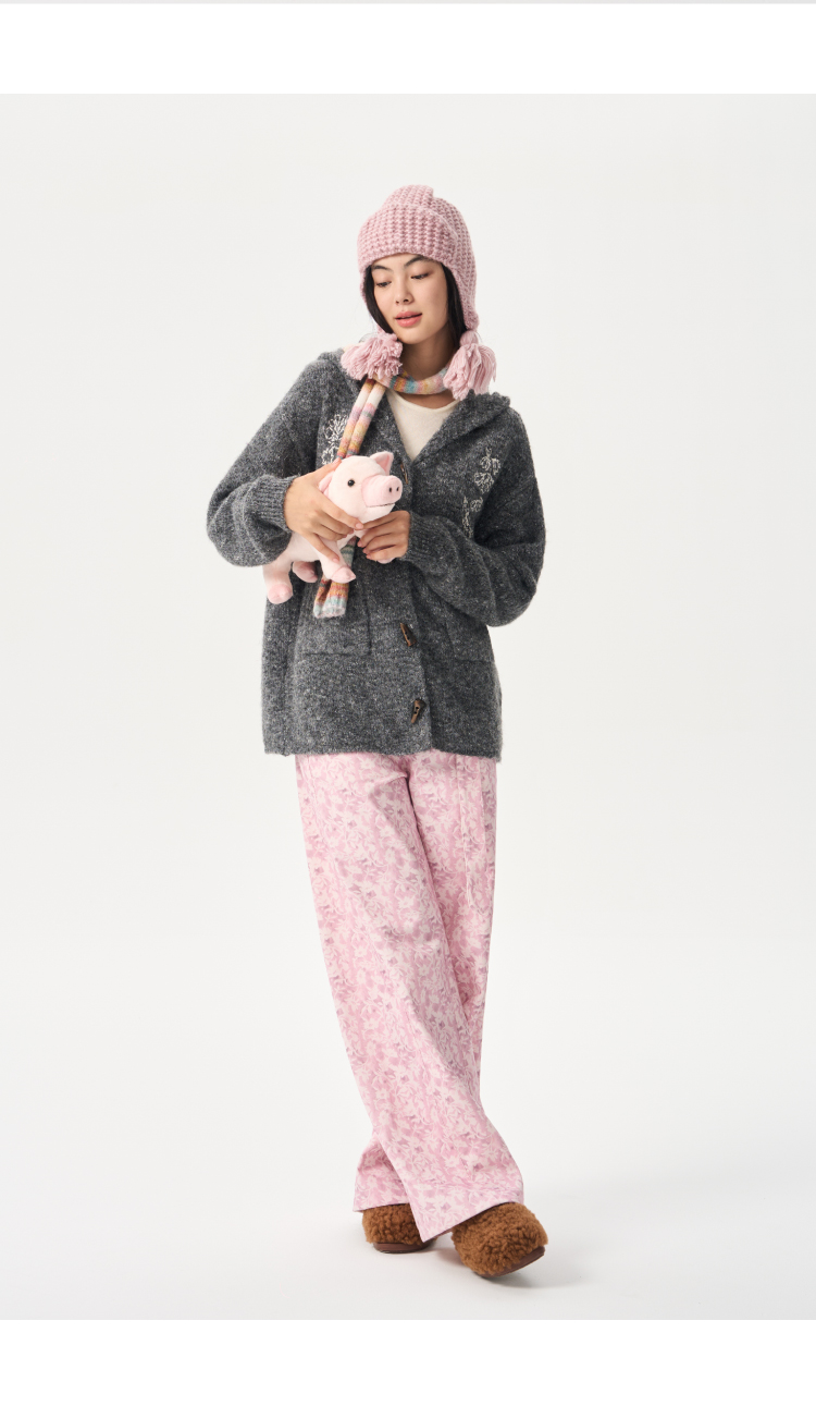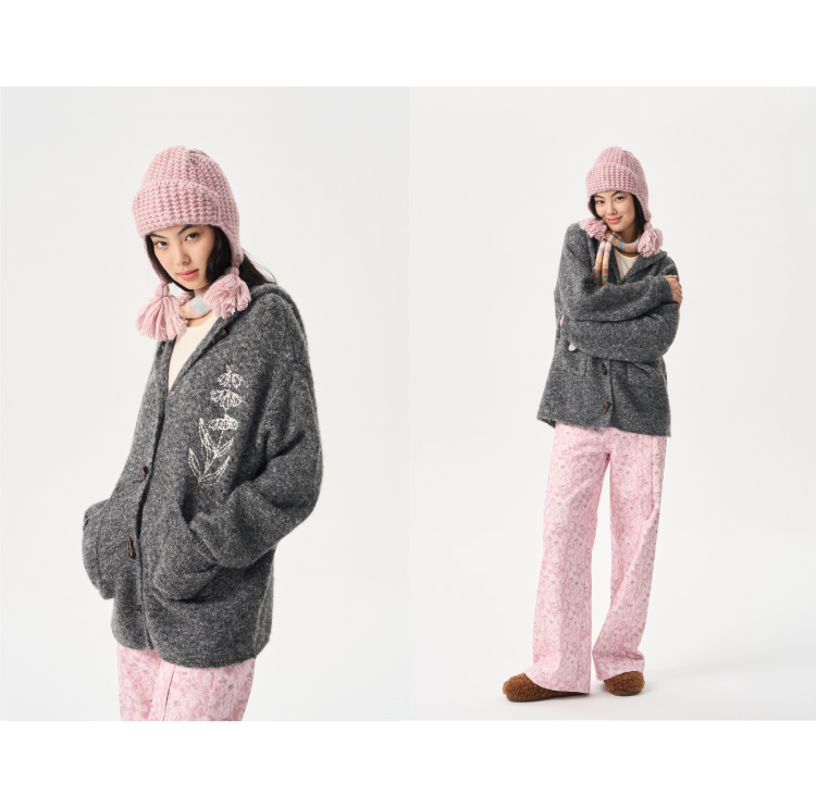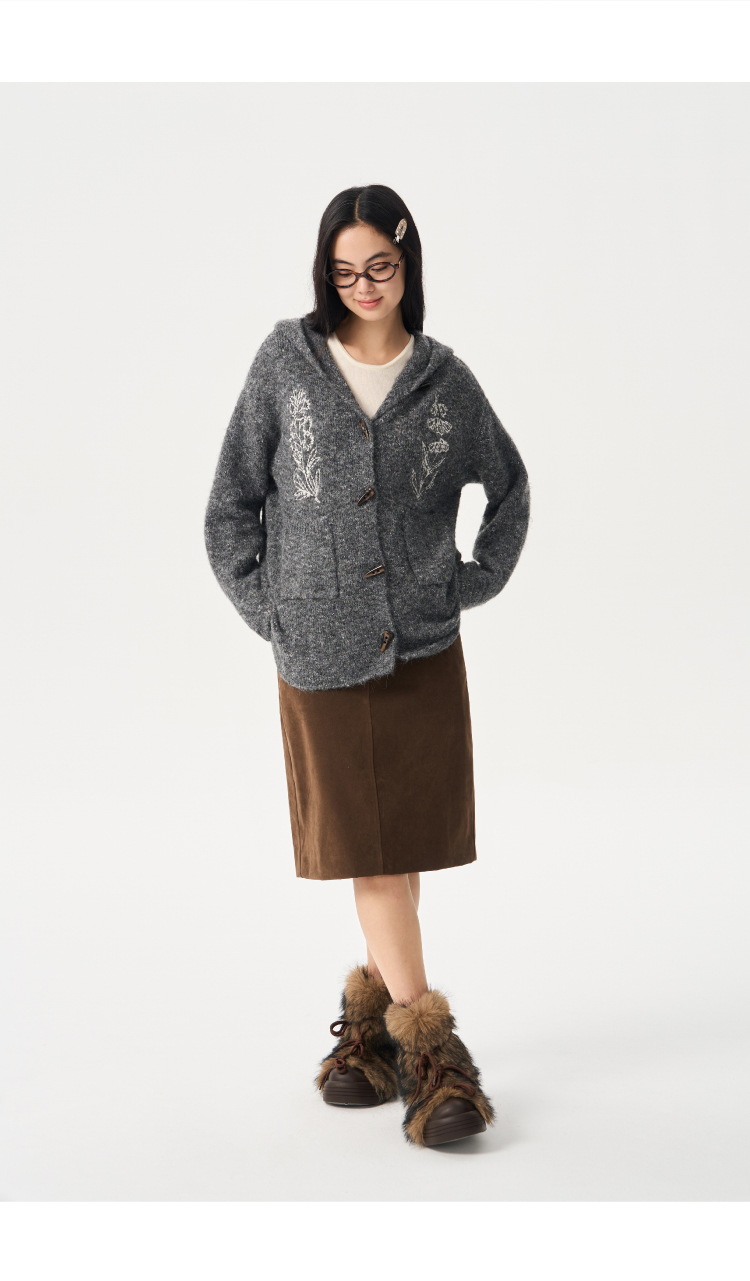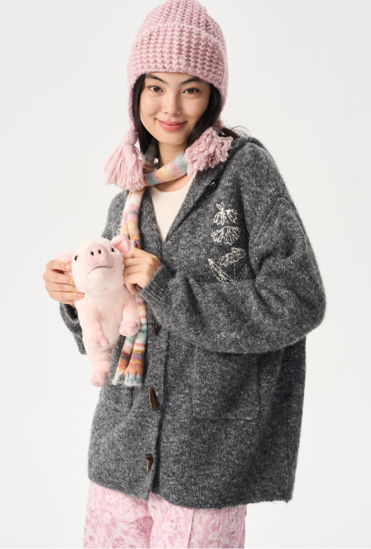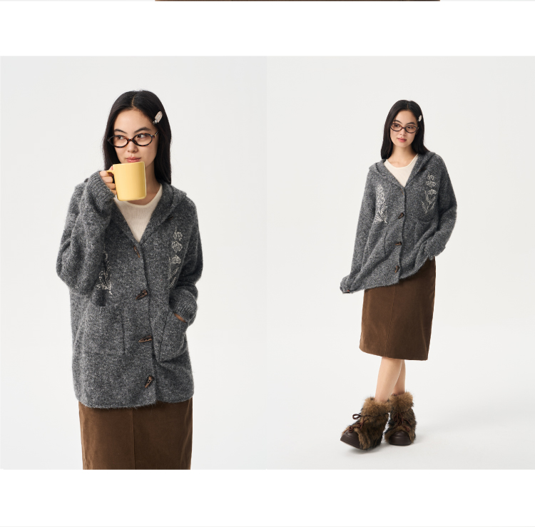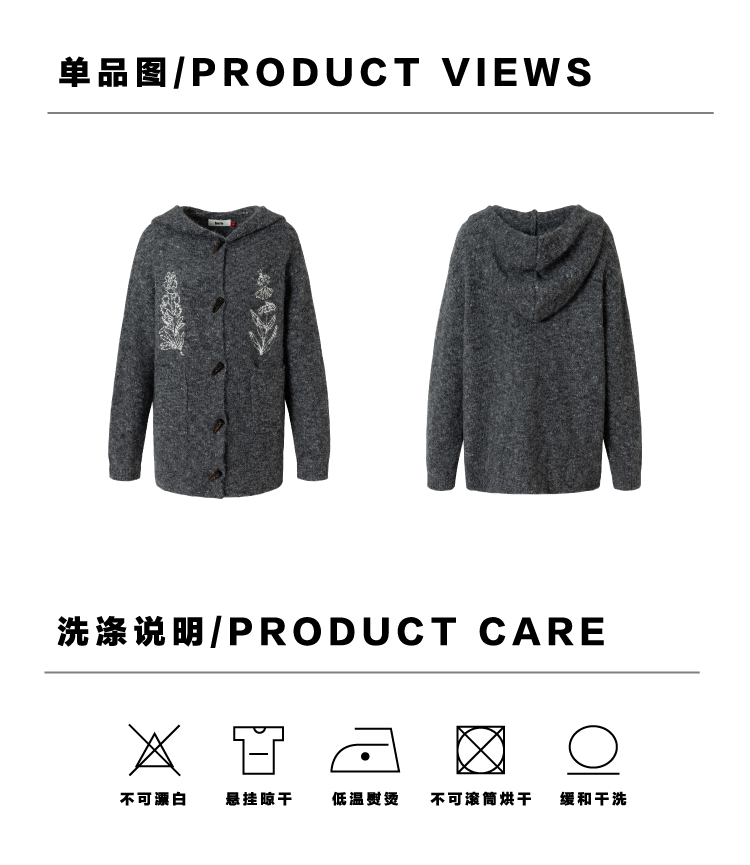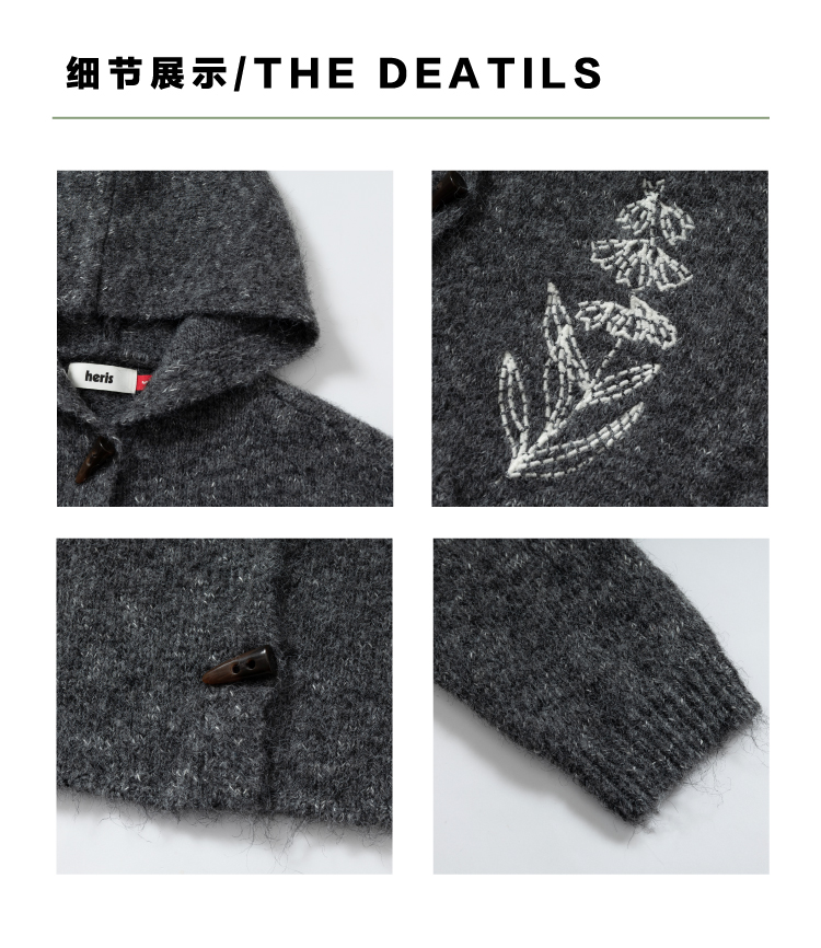 heris/H54101/‘香草花园’刺绣 牛角扣门襟 连帽毛衣开衫