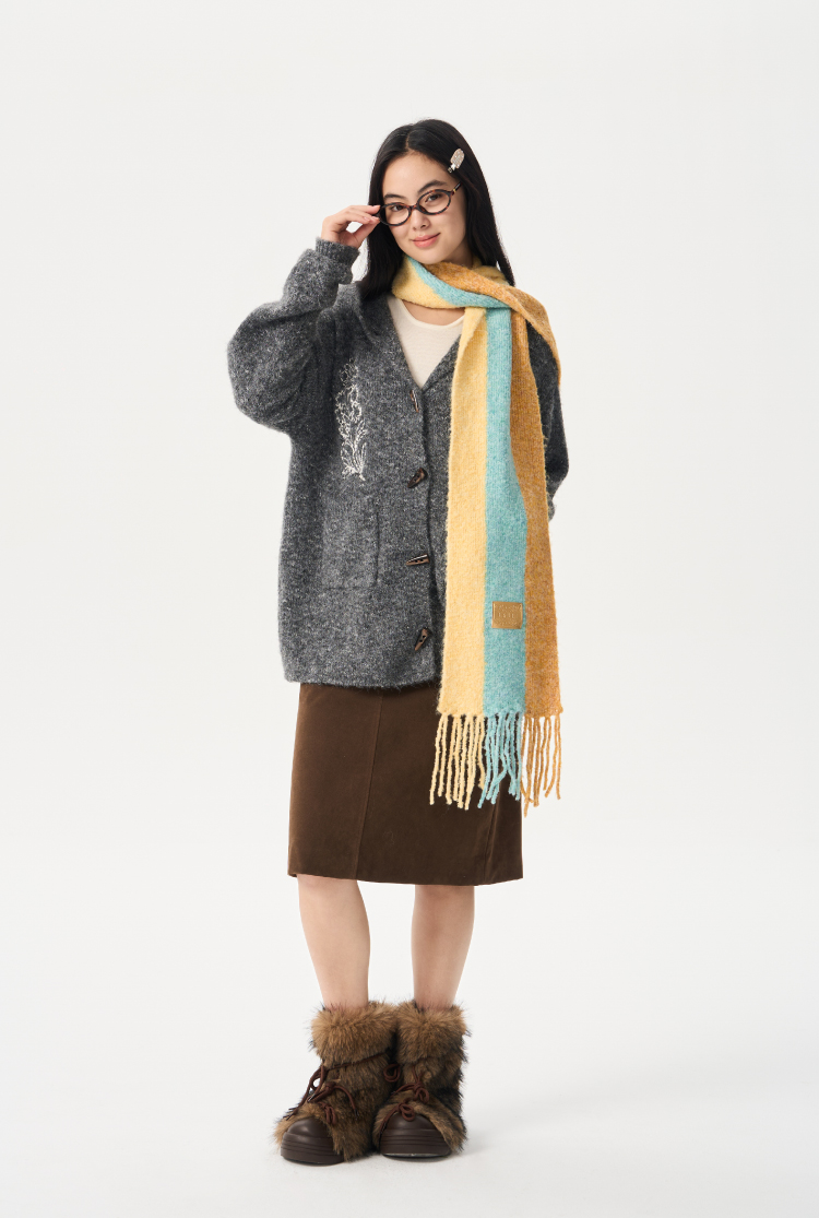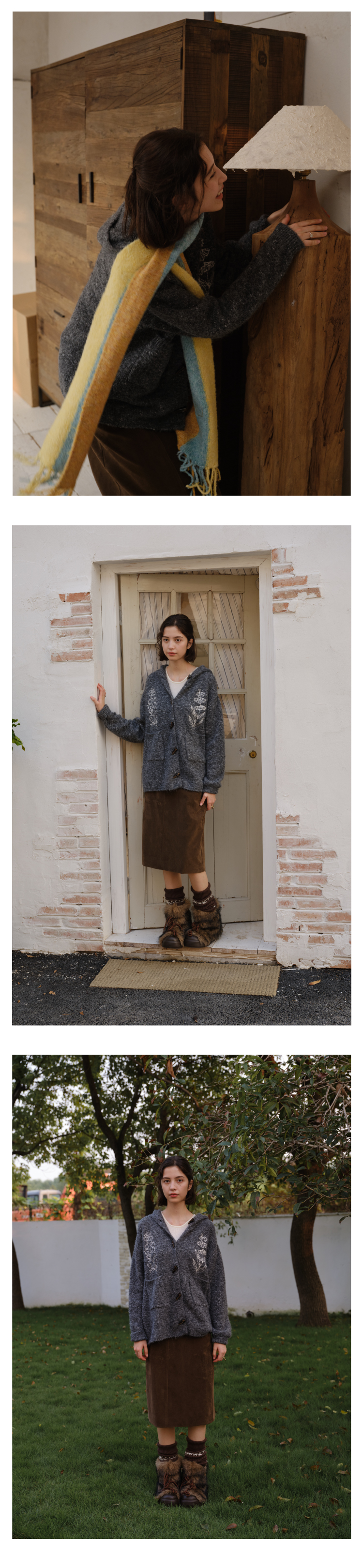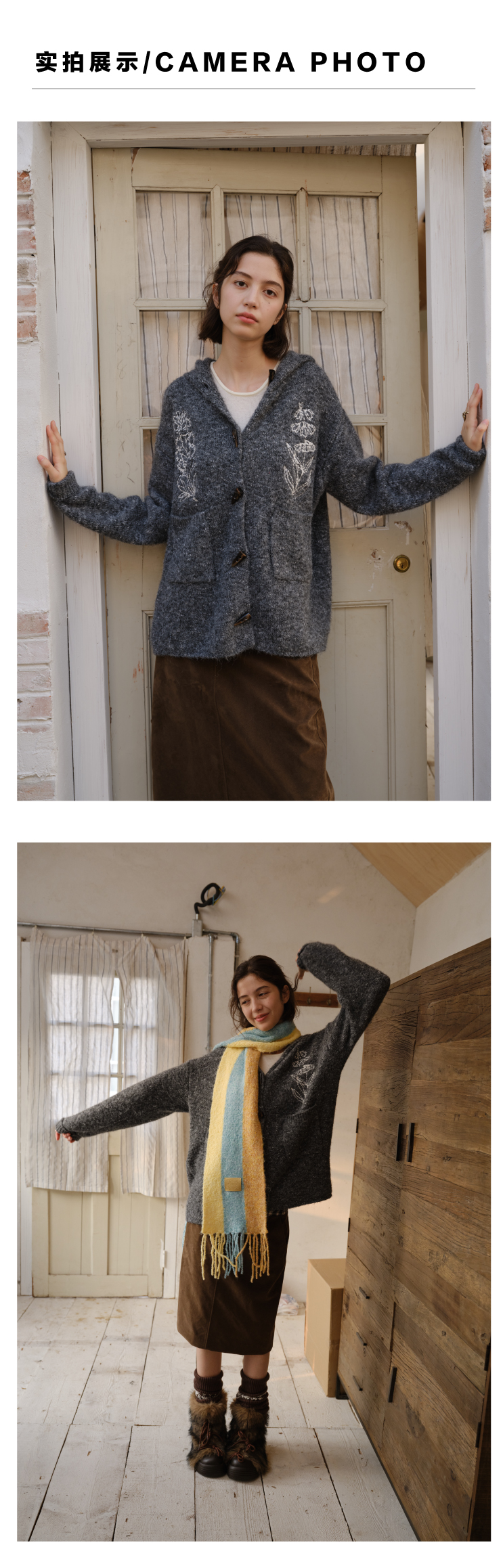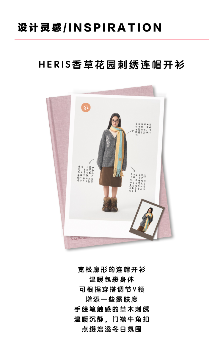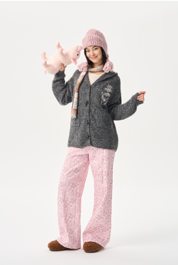 heris/H54101/‘香草花园’刺绣 牛角扣门襟 连帽毛衣开衫