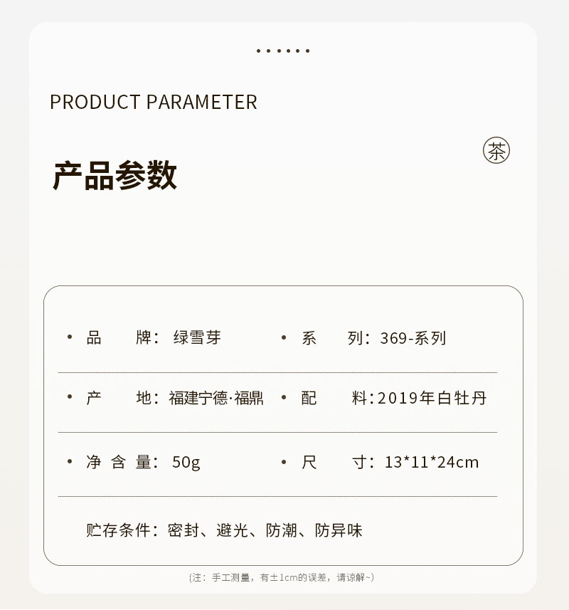 白茶 | 2023年绿雪芽369系列白牡丹50G小罐礼盒装