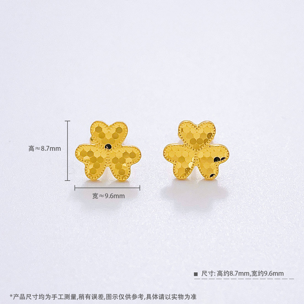 【限时克减150元】足金999.9 【精品】空心小幸运鱼鳞心形三叶草耳饰耳钉(UWES00044)预售产品下单后不退款不退货不换货不补差价