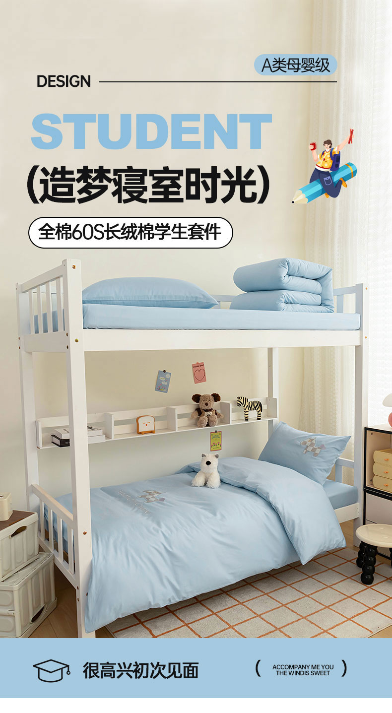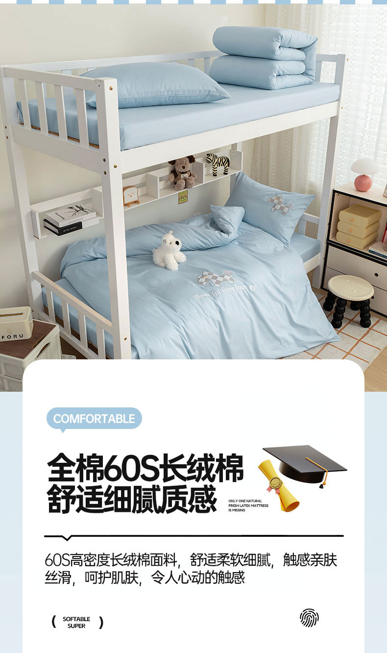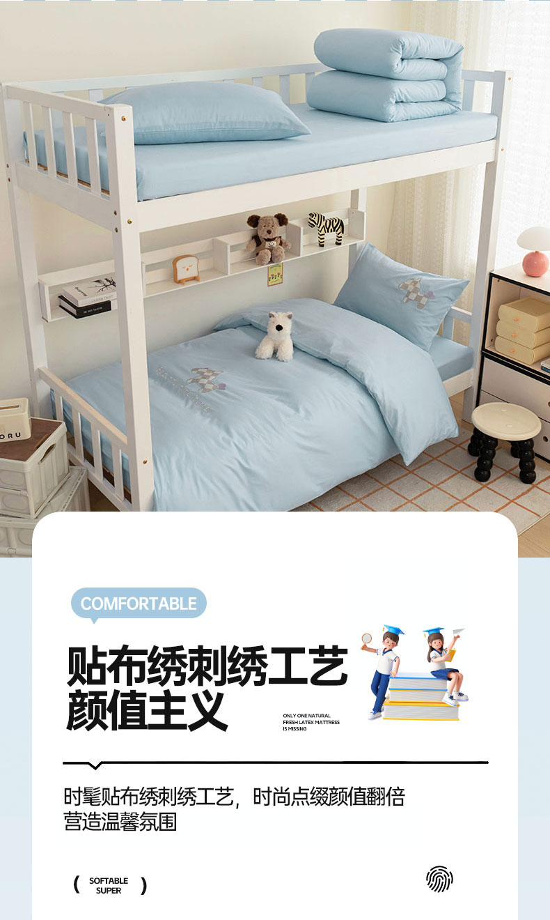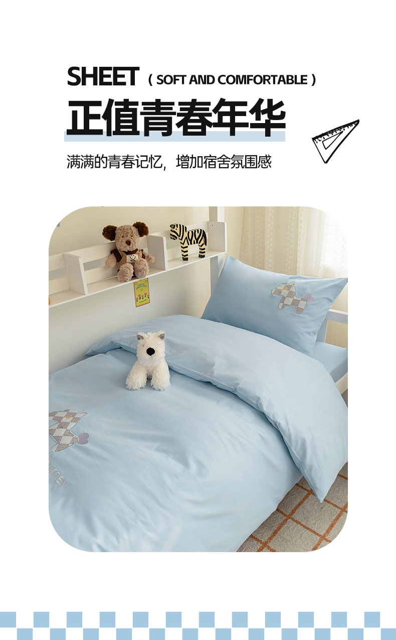 【品牌直发】加倍生活 A类60S全棉学生宿舍三件套 专为学生设计 高密长绒棉 贴布绣刺绣工艺 可水洗机洗