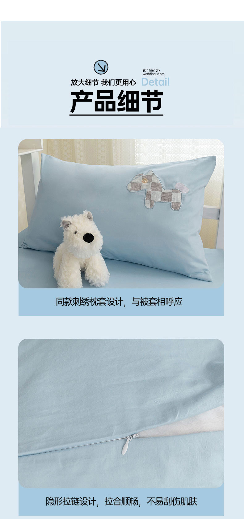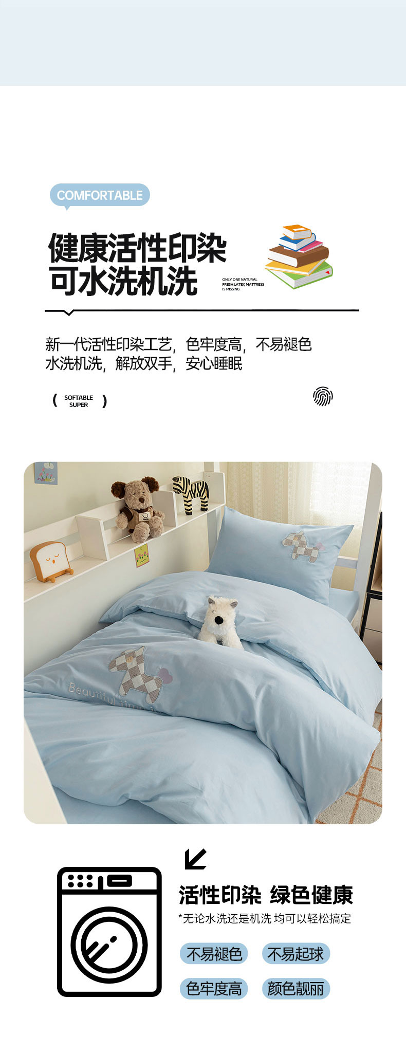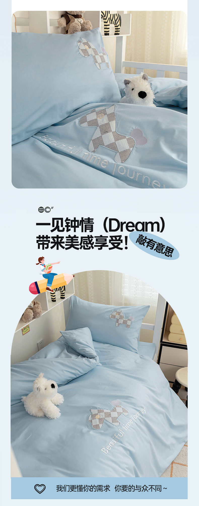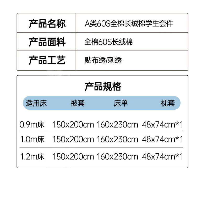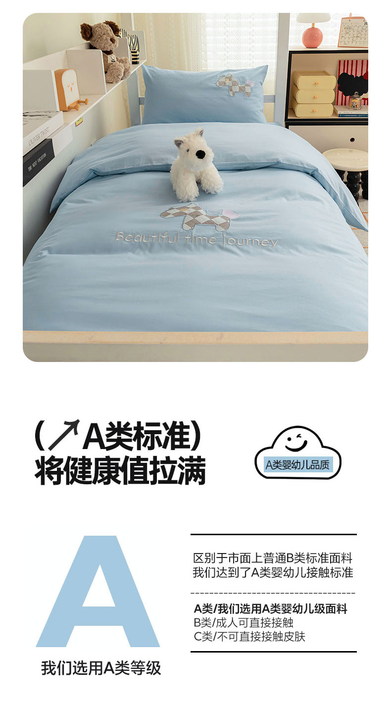 【品牌直发】加倍生活 A类60S全棉学生宿舍三件套 专为学生设计 高密长绒棉 贴布绣刺绣工艺 可水洗机洗