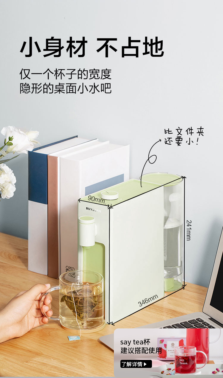 【北鼎】北鼎(Buydeem)办公室桌面即热式饮水S801浅衫绿
