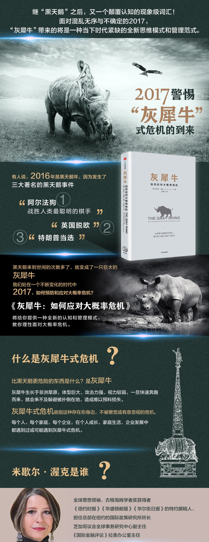 继“黑天鹅”之后,又一个颠覆认知的现象级词汇!面对混乱无序和不确定的2017,“灰犀牛”带来的将是一种当下时代紧缺的全新思维模式与管理范式。