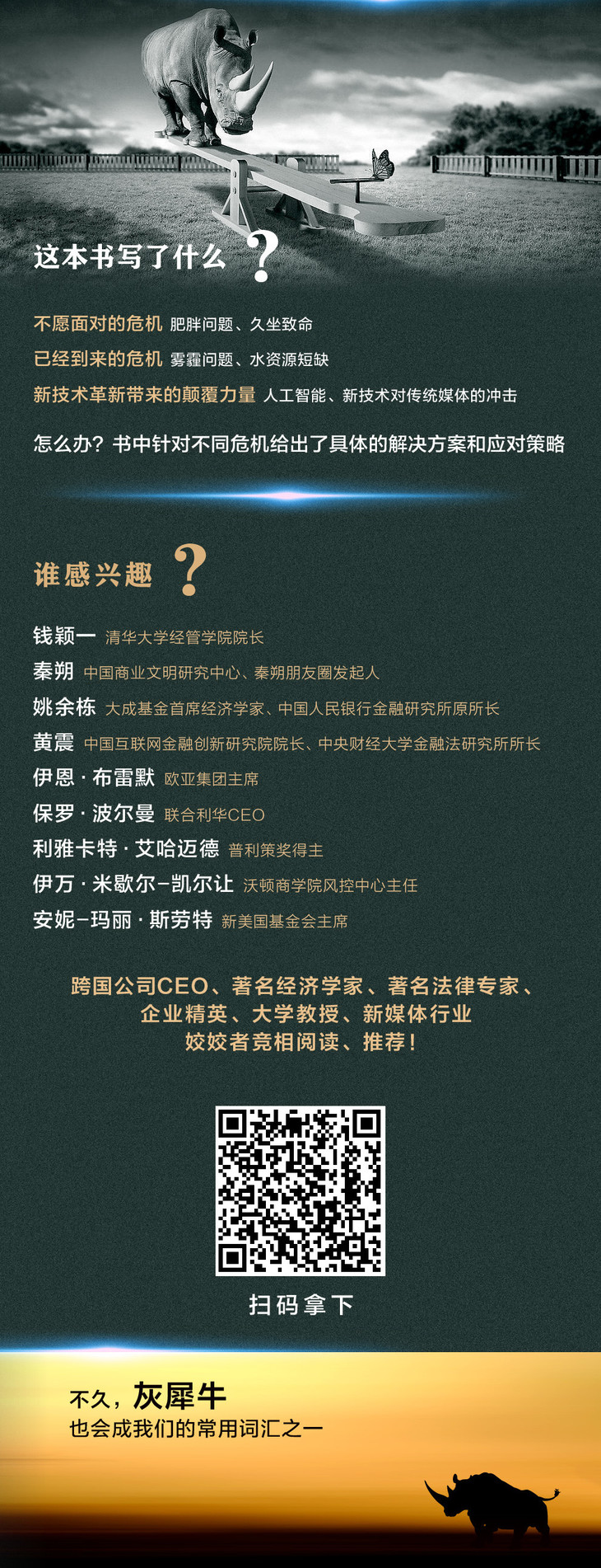 推荐经理人、投资者、决策者、政府领导以及希望躲避灰犀牛式危机事件的人士阅读。