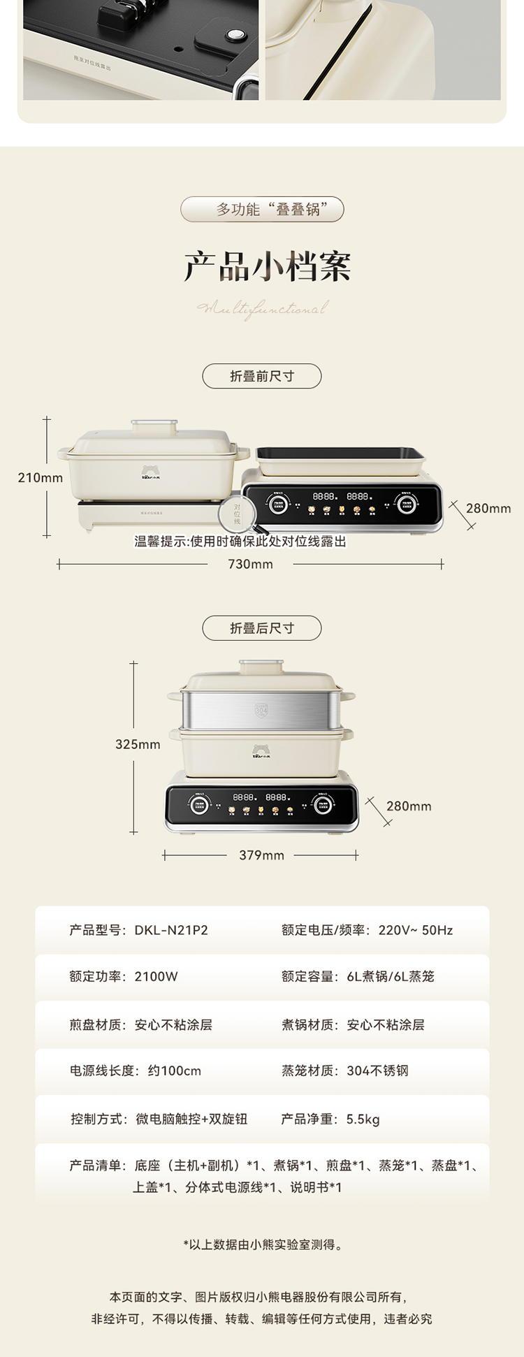【小程序】小熊/Bear 电烤炉 DKL-N21P2-P01 米黄色