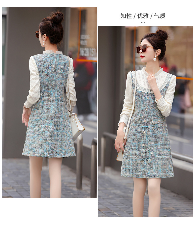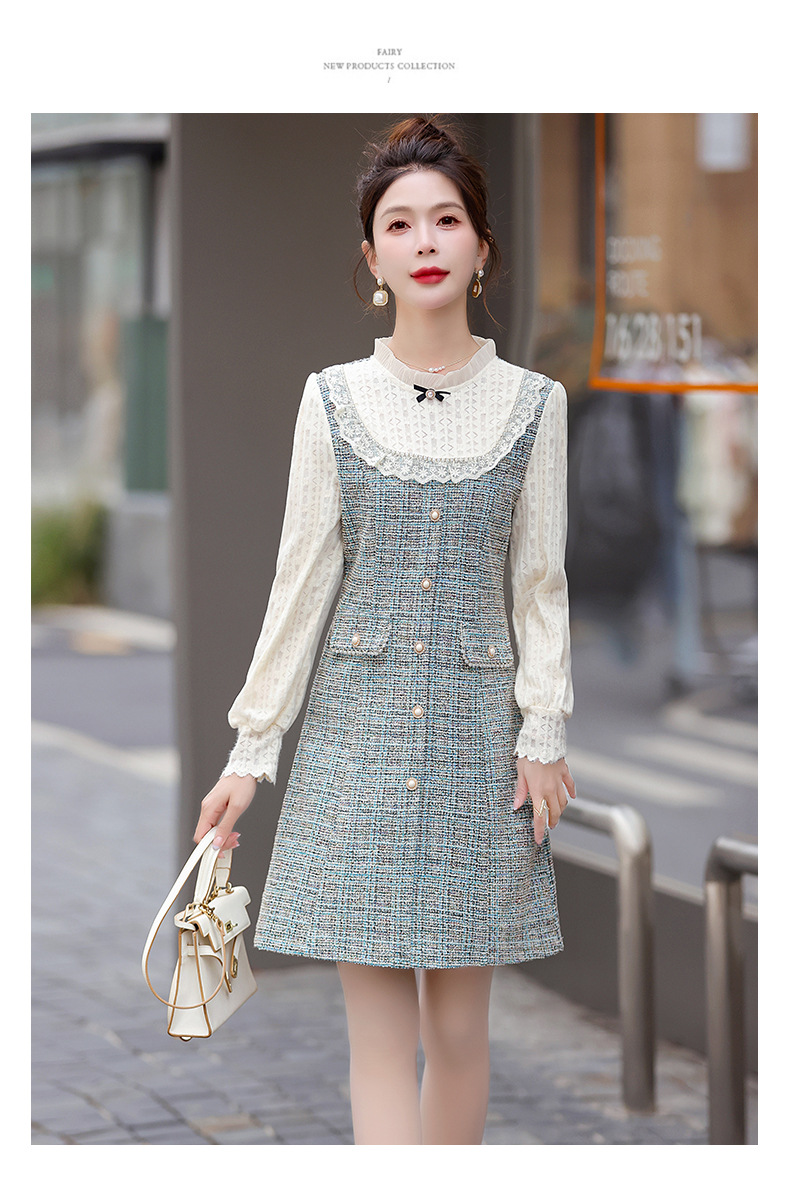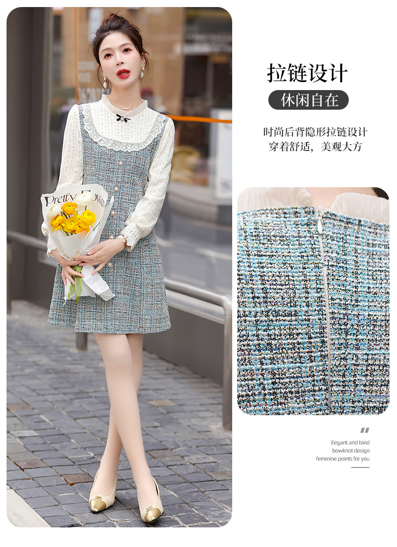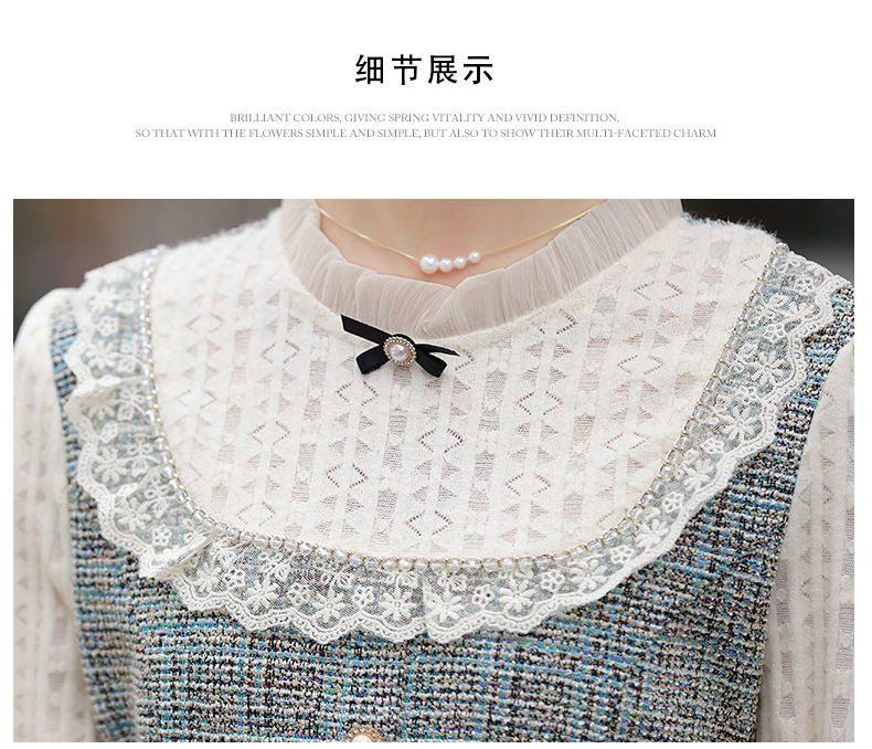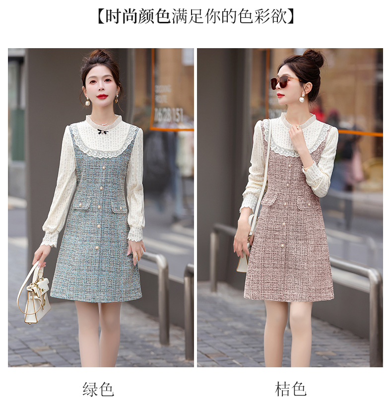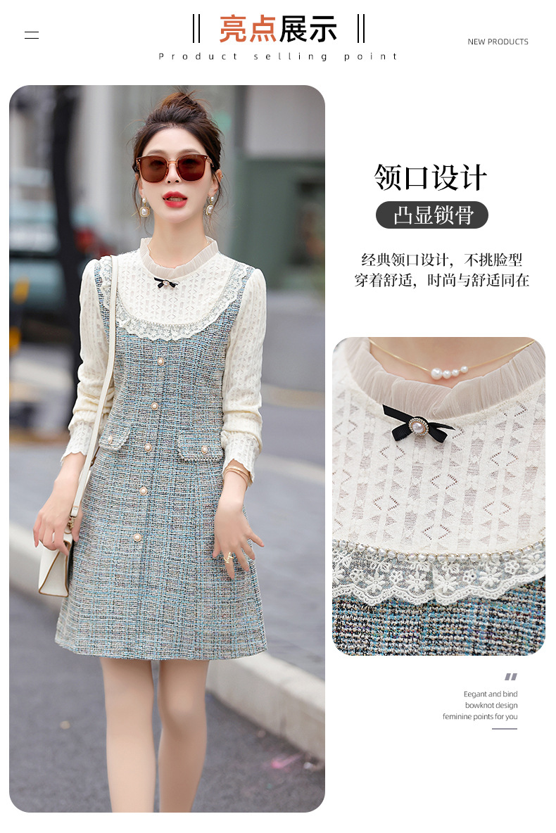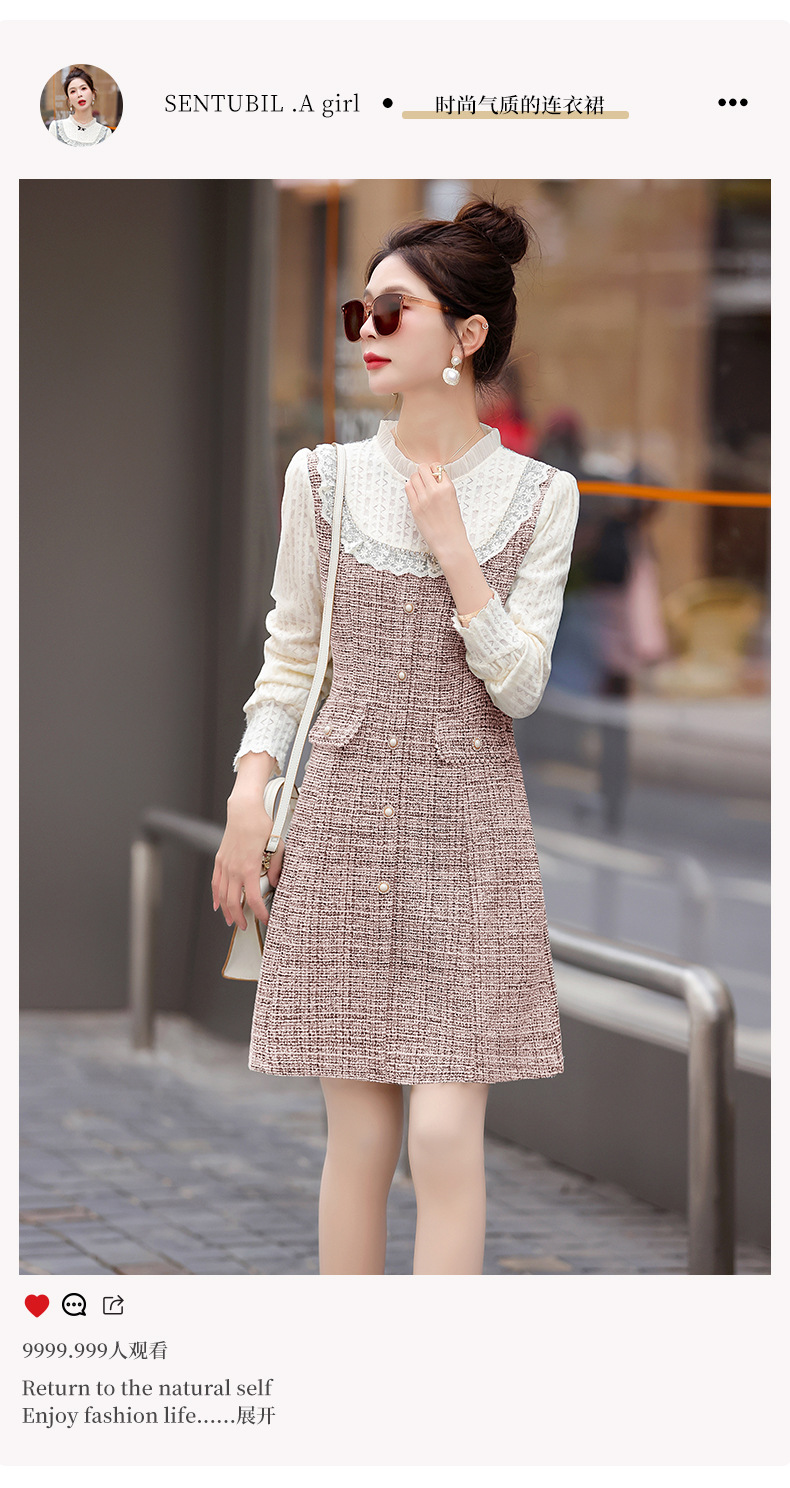 小香风连衣裙,洋气时尚花边撞色拼接修身显瘦裙子HR-MUZI1334
