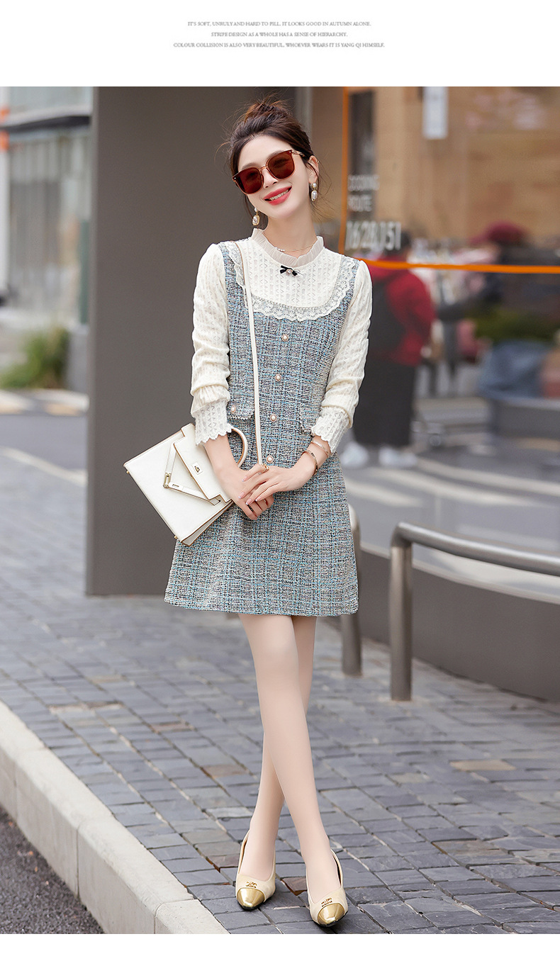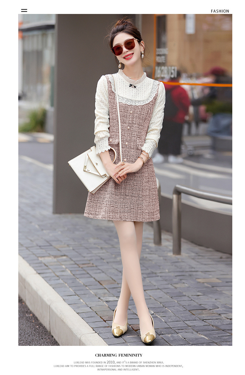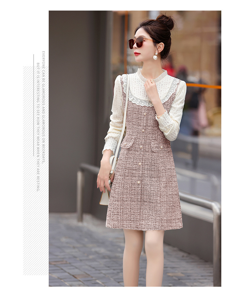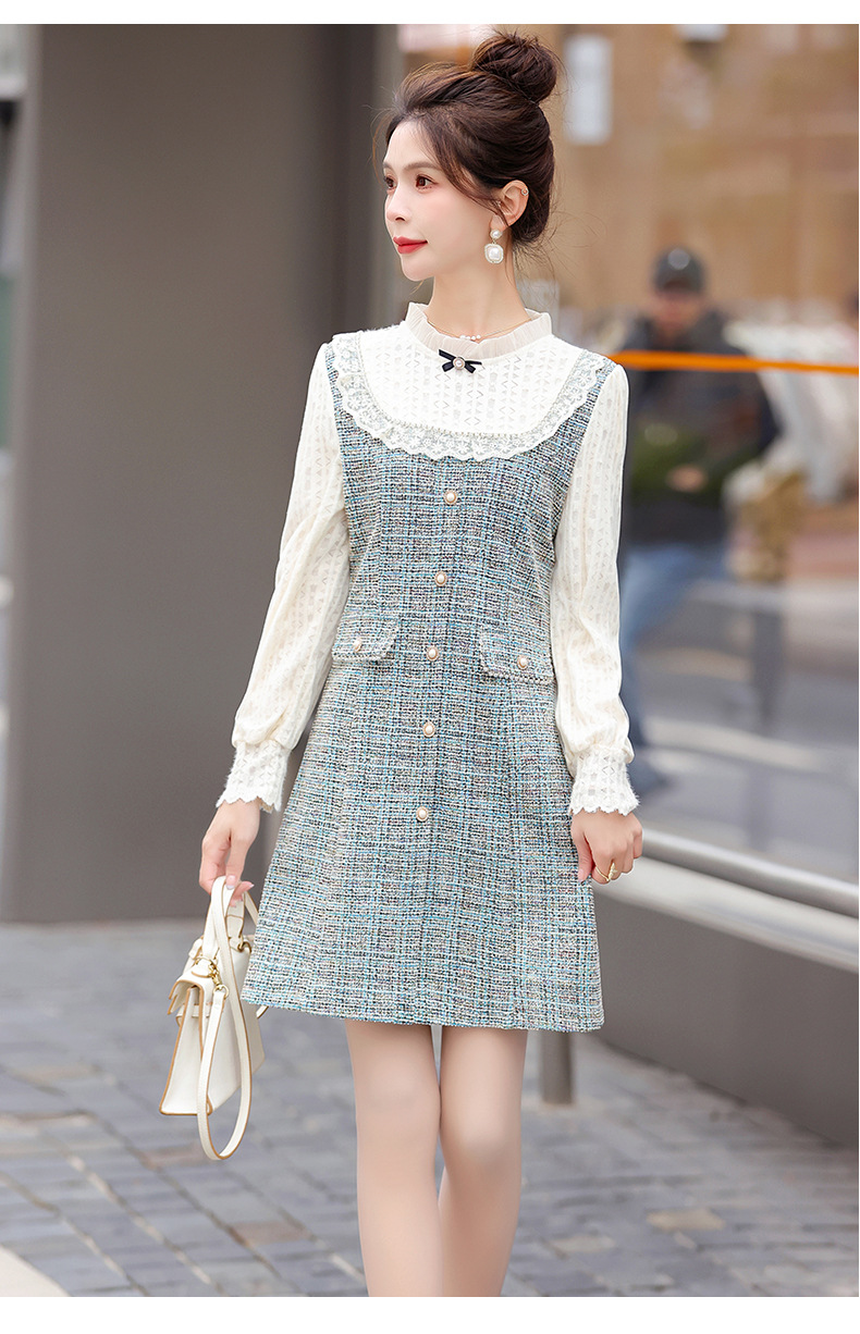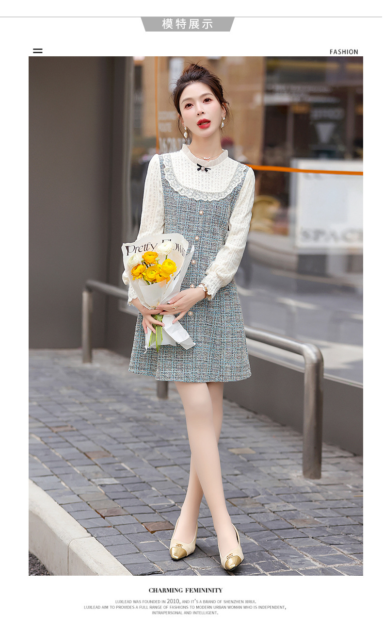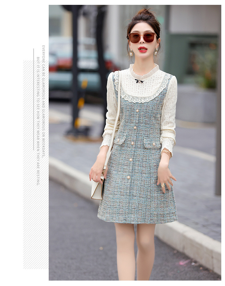 小香风连衣裙,洋气时尚花边撞色拼接修身显瘦裙子HR-MUZI1334