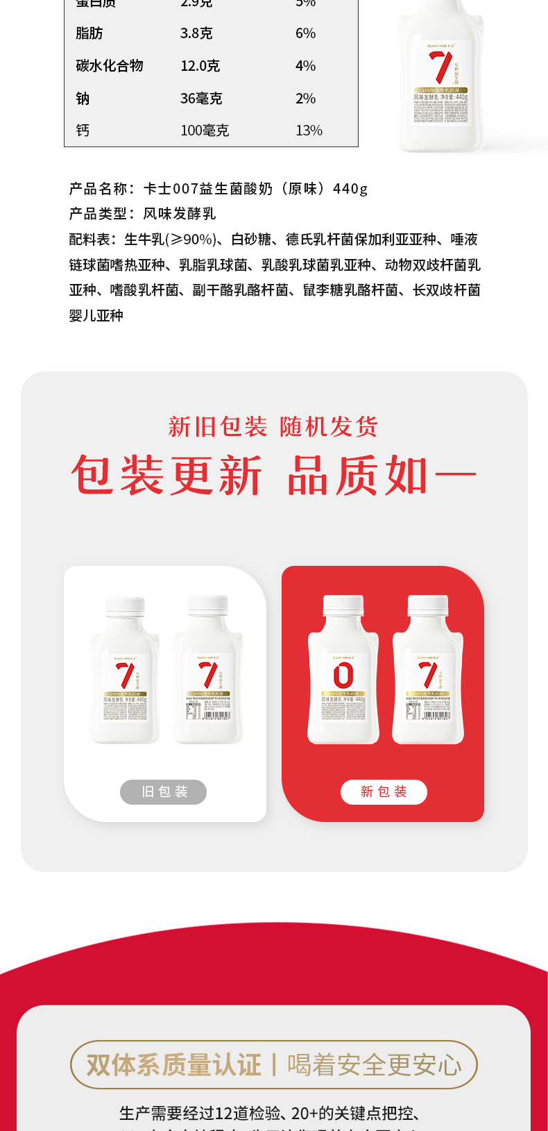 【7天内发出,发出后不支持拦截退货】卡士 007益生菌酸奶原味 440g 9瓶装/12瓶