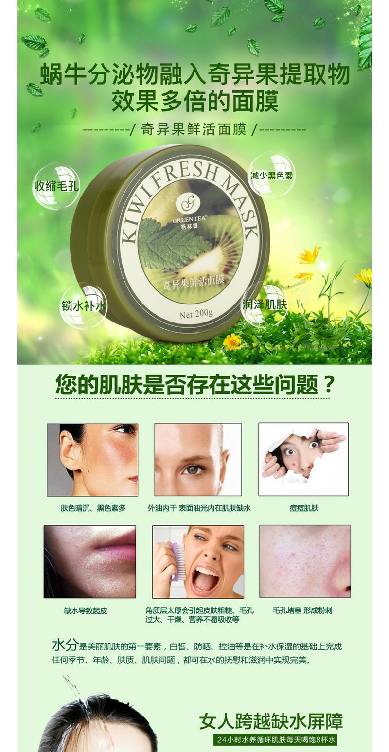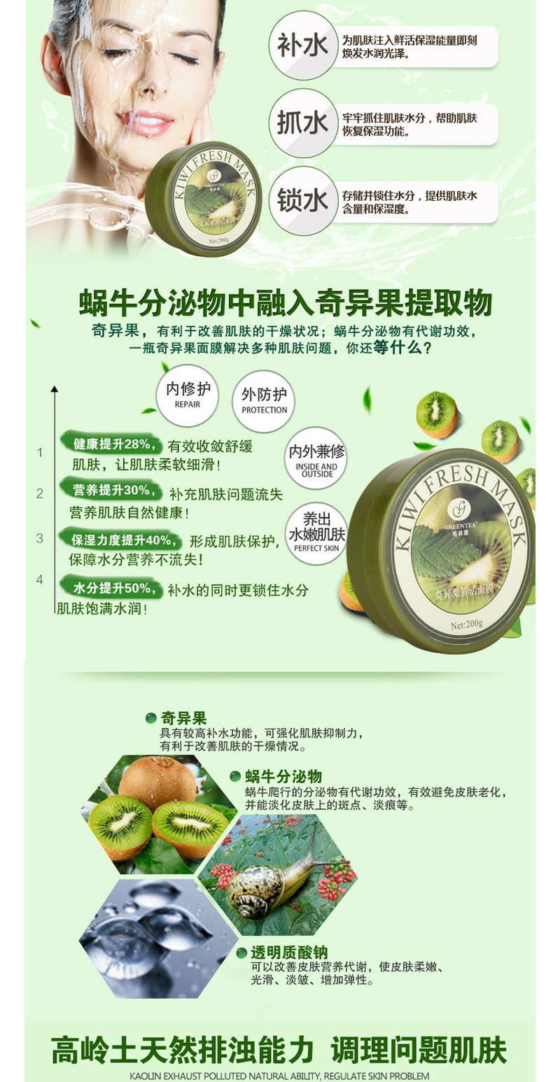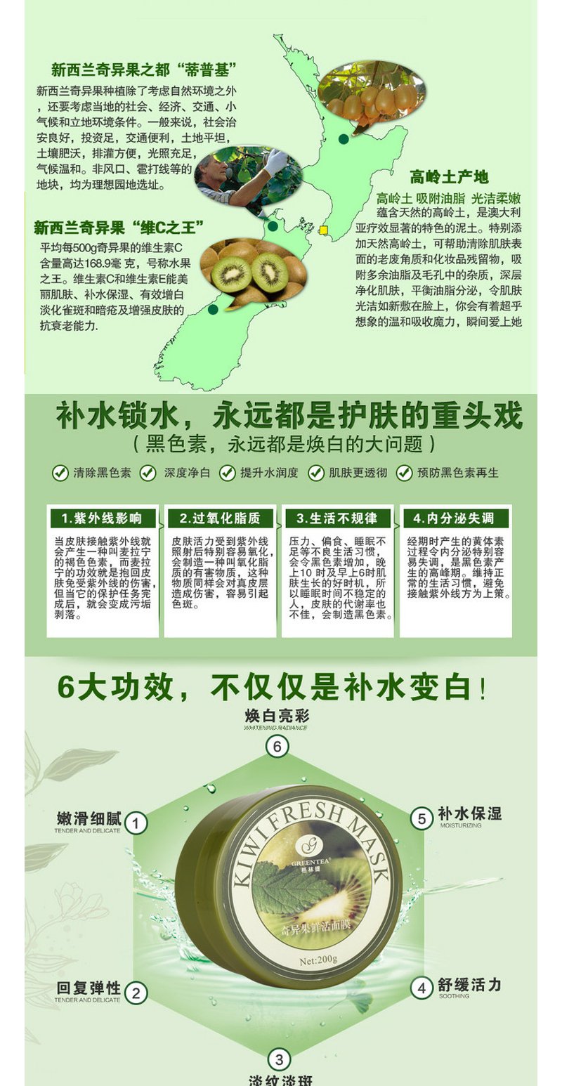 【格林缇】奇异果鲜活面膜(美白水洗面膜、面膜膏)200g新包装