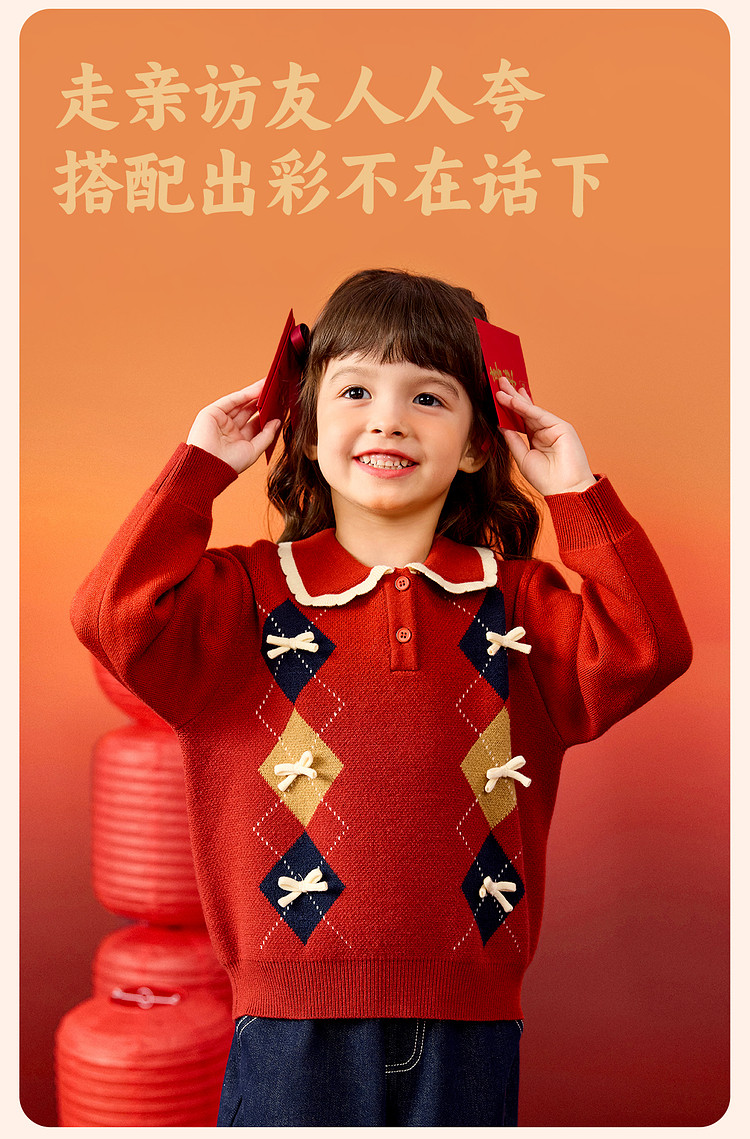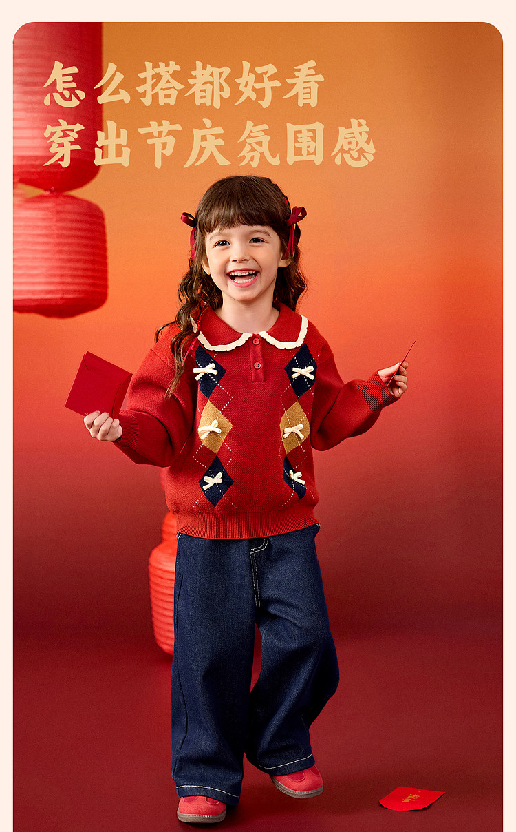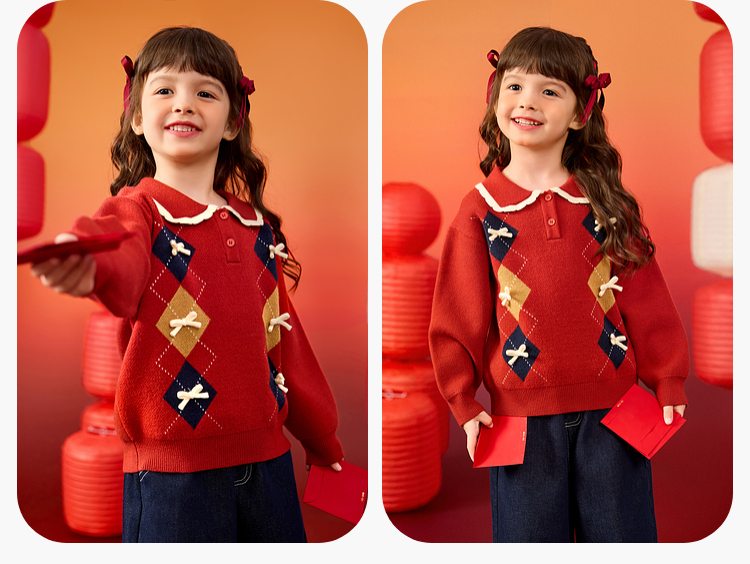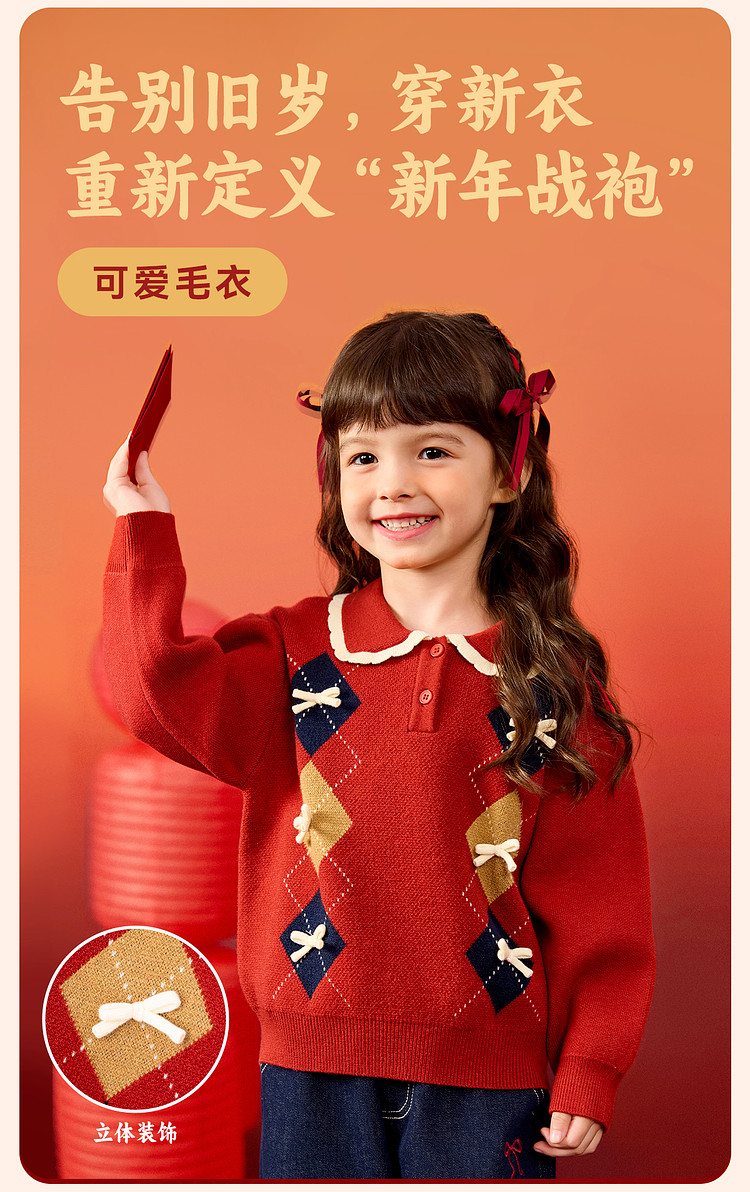 嘟嘟家儿童拜年服女童毛衣喜庆宝宝新年童装衣服女宝年服国风冬季