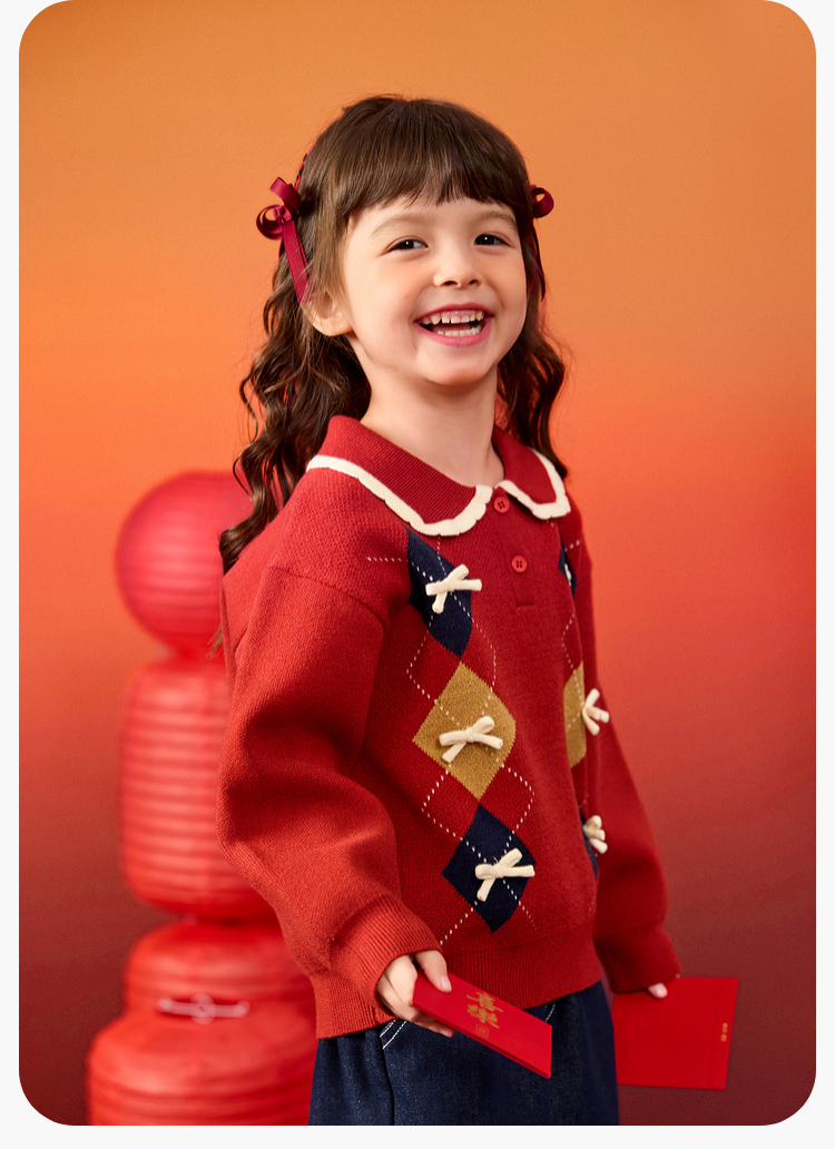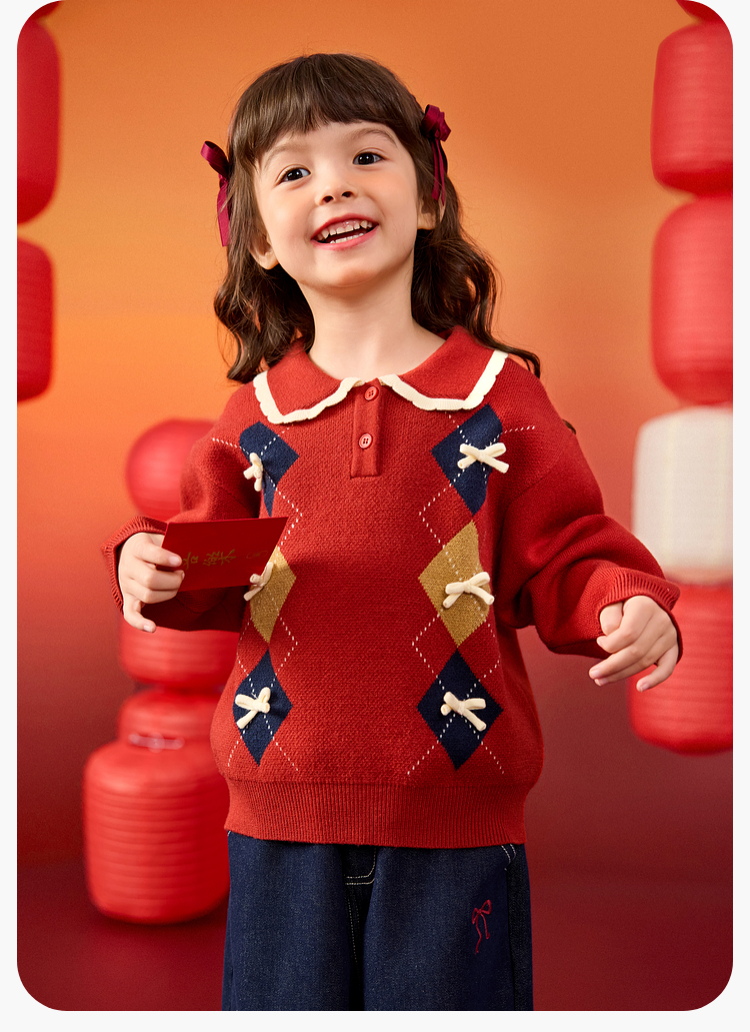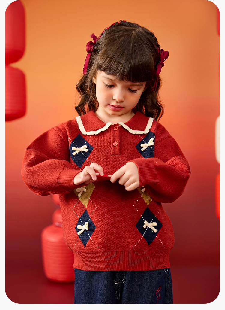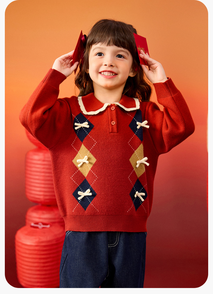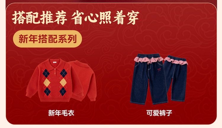 嘟嘟家儿童拜年服女童毛衣喜庆宝宝新年童装衣服女宝年服国风冬季