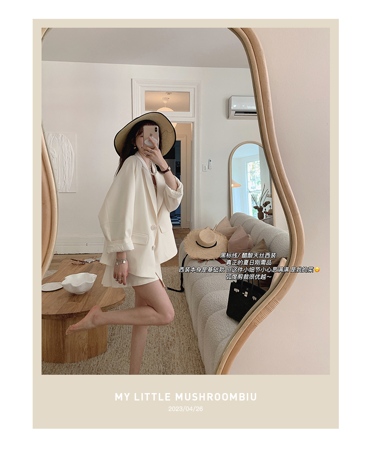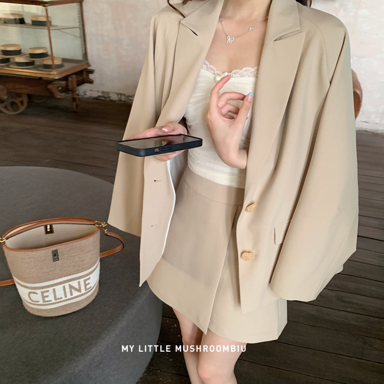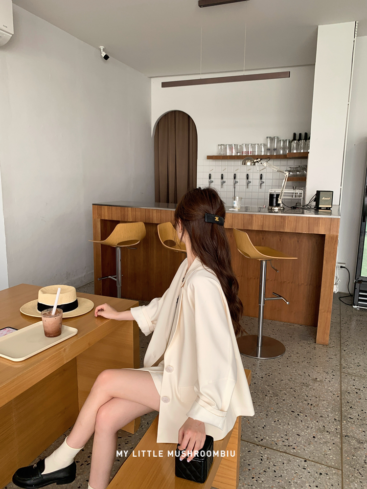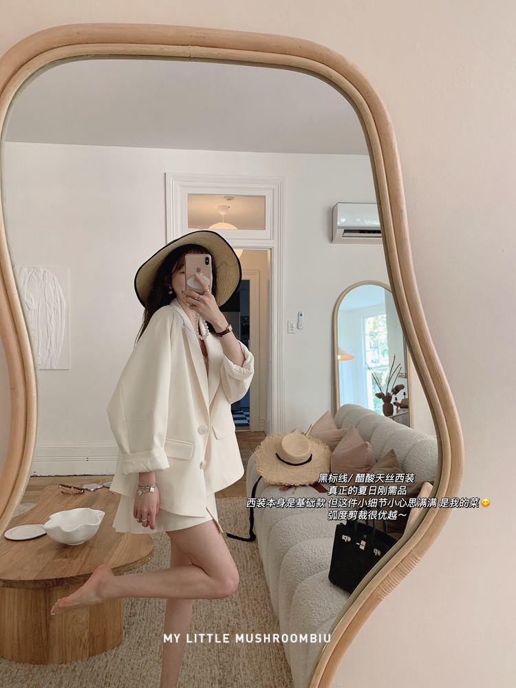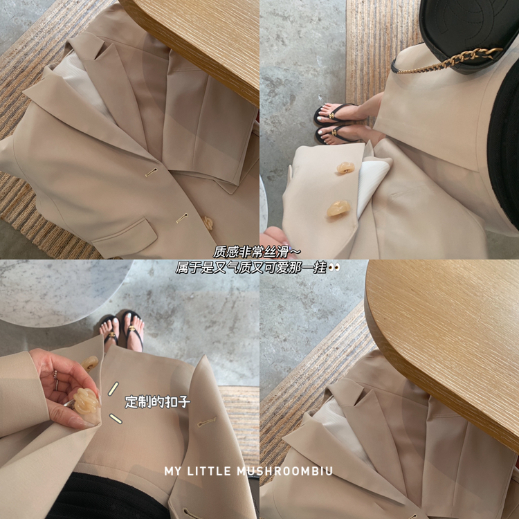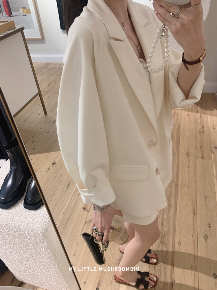 金蘑菇菇 黑标线 醋酸天丝西装/休闲廓形西装外套女韩版宽松西服