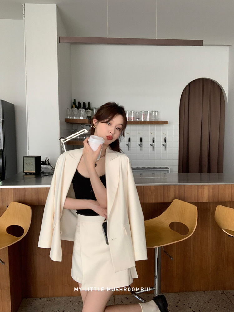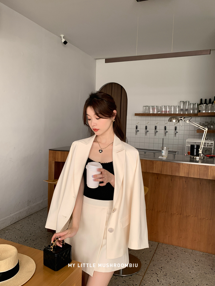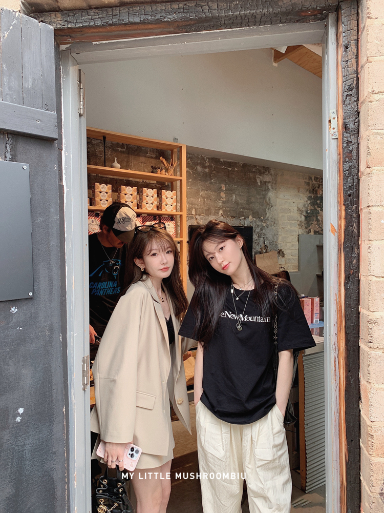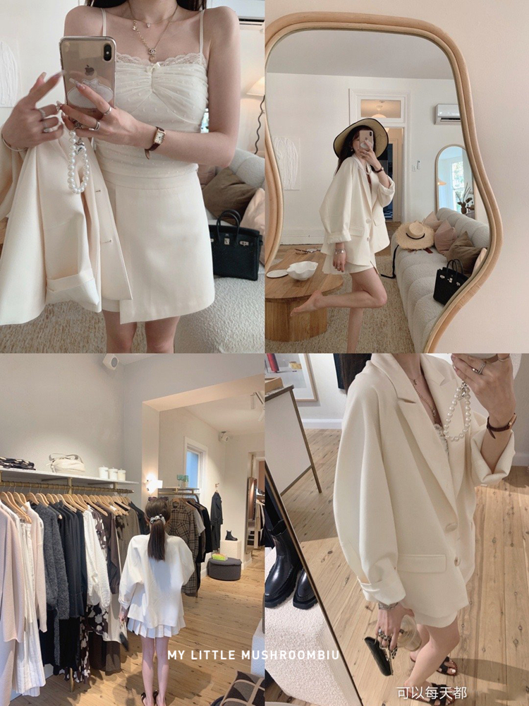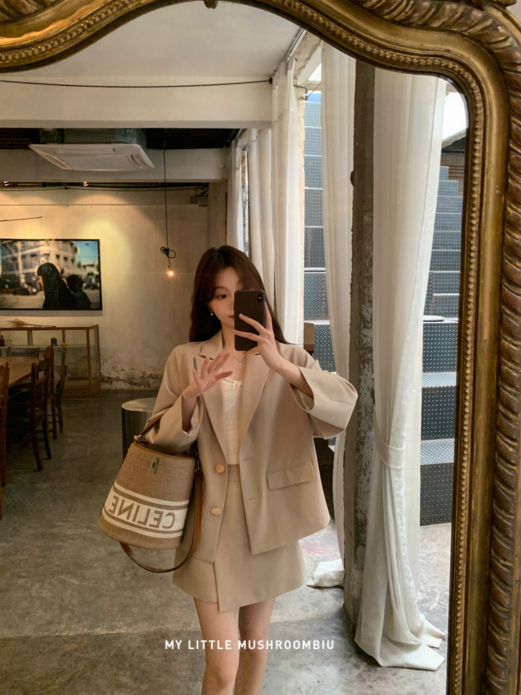 金蘑菇菇 黑标线 醋酸天丝西装/休闲廓形西装外套女韩版宽松西服