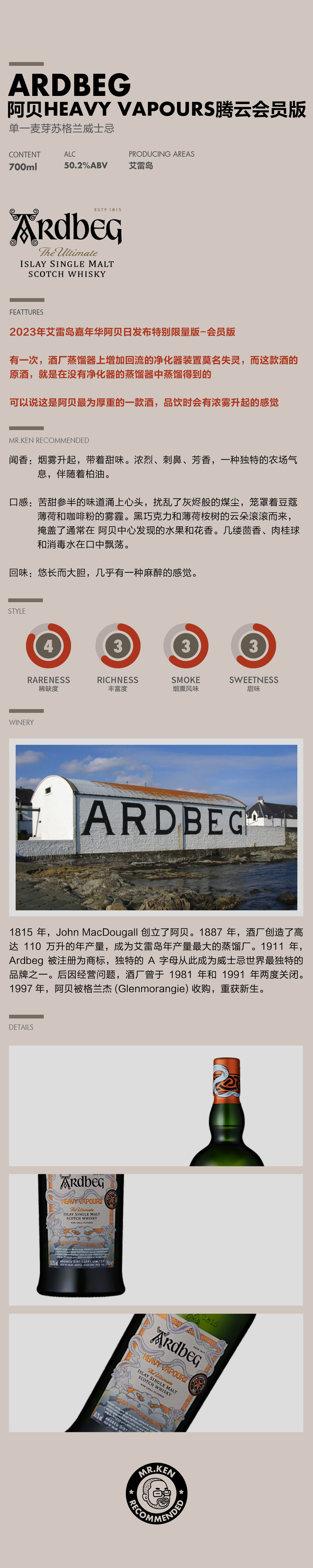 【250000积分】阿贝(Ardbeg)Heavy Vapours腾云会员版单一麦芽苏格兰威士忌