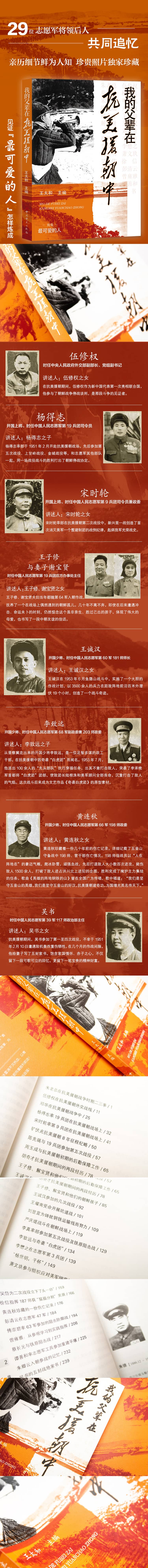 《我的父辈在抗美援朝中》是继《我的父辈在长征中》《我的父辈在抗战中》《我的父辈在解放战争中》后,“我的父辈”系列丛书的近期新力作。作者均为亲历抗美援朝将士的后人。他们追述父辈曾经历和讲述抗美援朝战争中的难忘片段,记述父辈们不畏强敌、顽强战斗、克敌制胜的英雄壮举,在浴血奋战中锻造了伟大精神,更生动记录了70年前那场艰苦卓绝的保家卫国战争。
