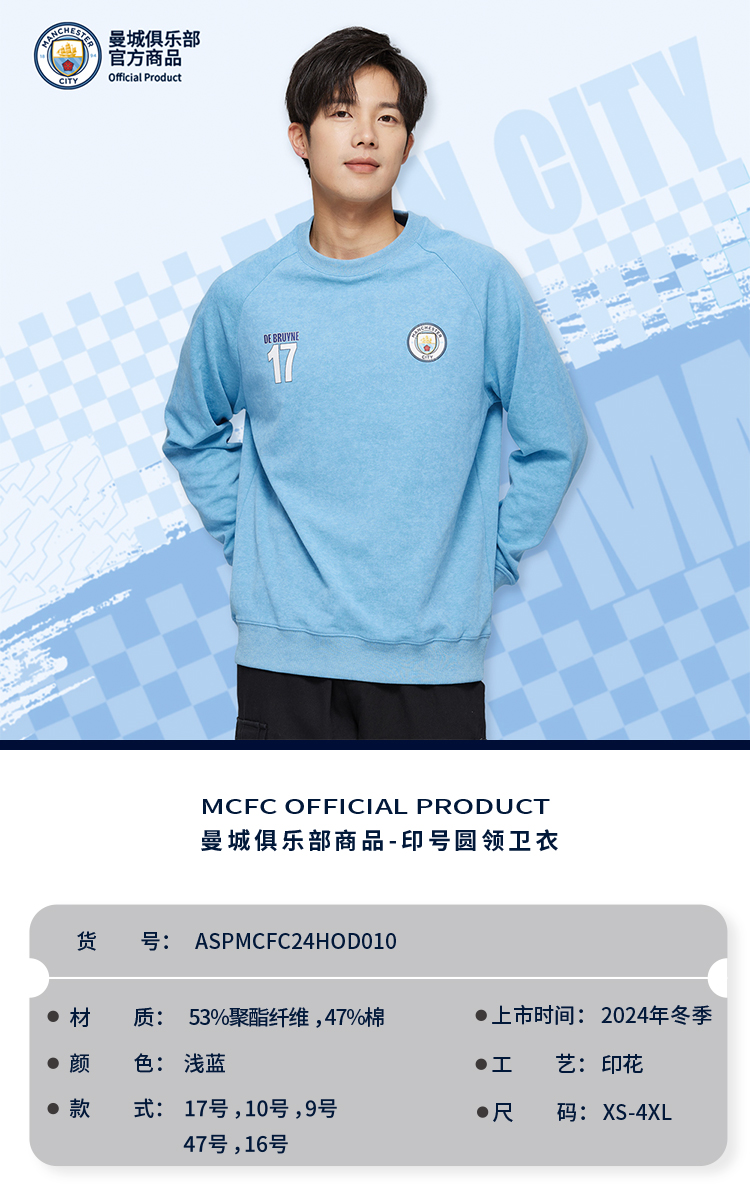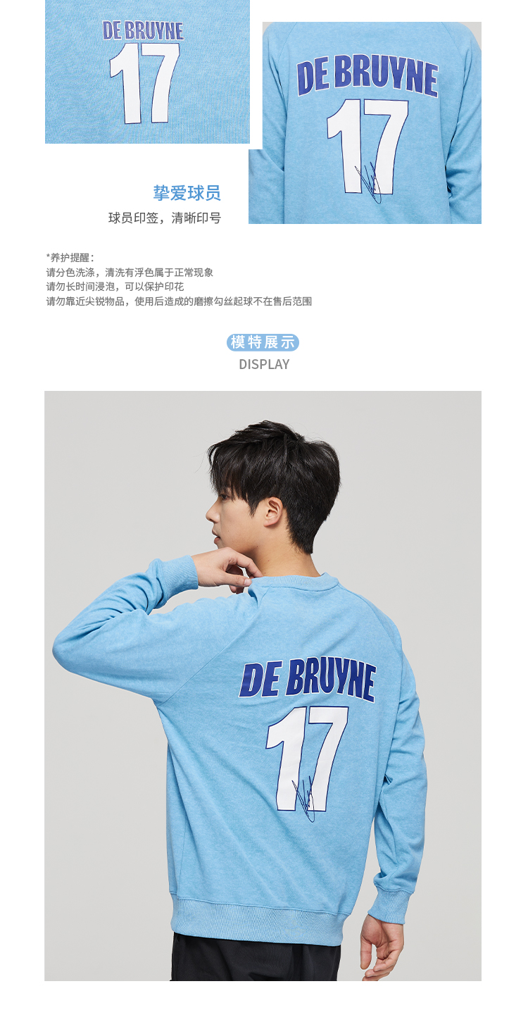 【官方正版】曼城俱乐部 | 球员印号圆领卫衣印签百搭穿搭德布劳内