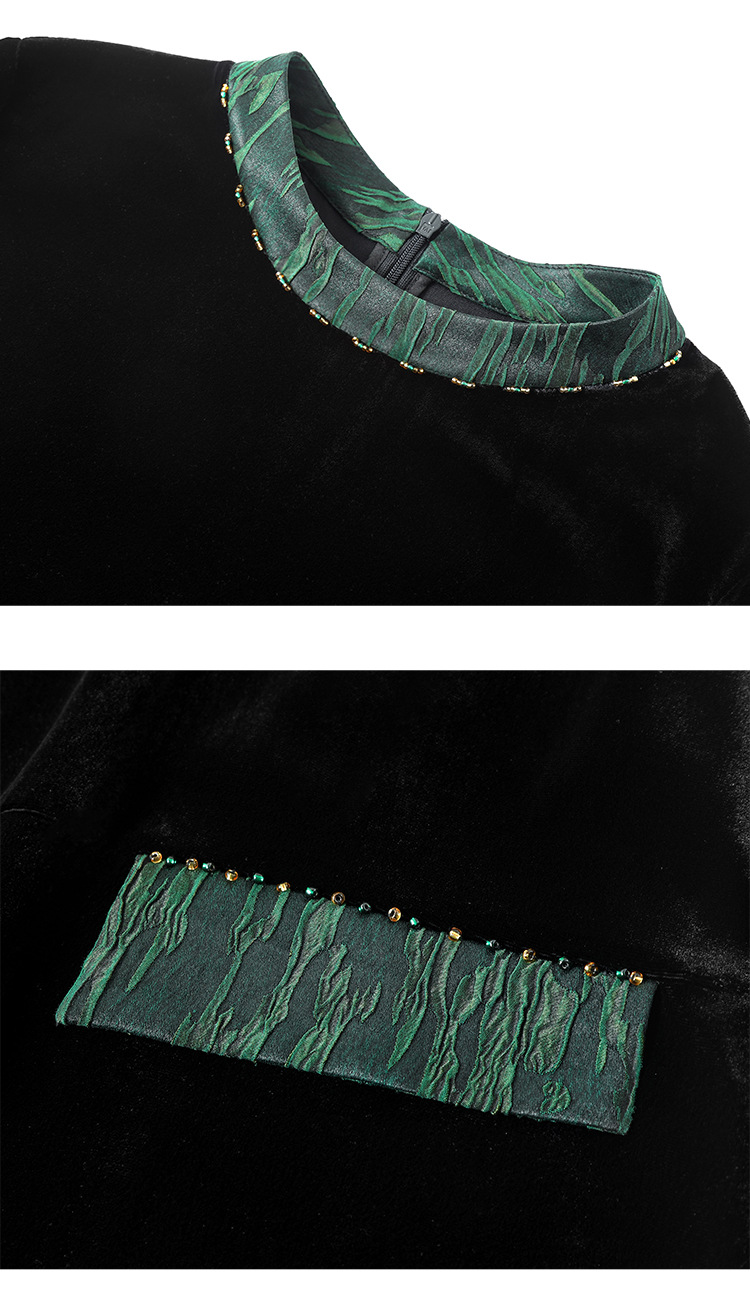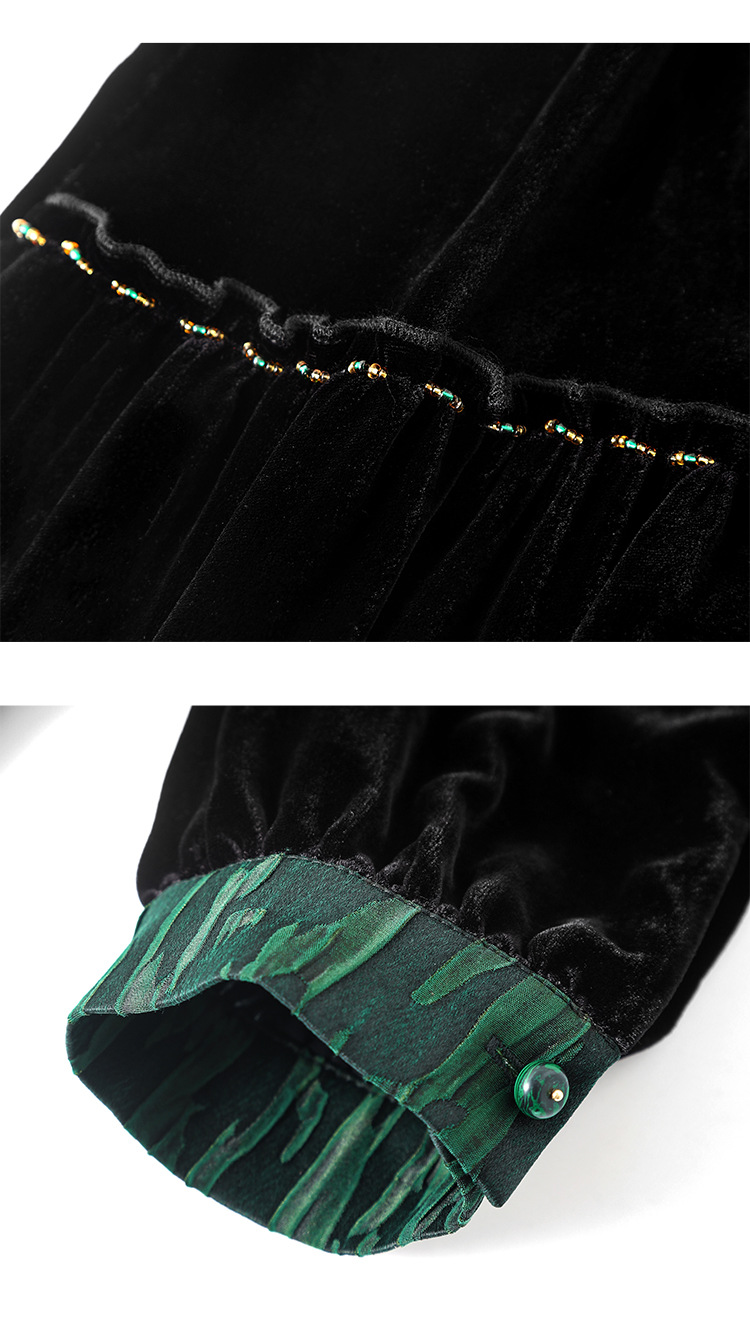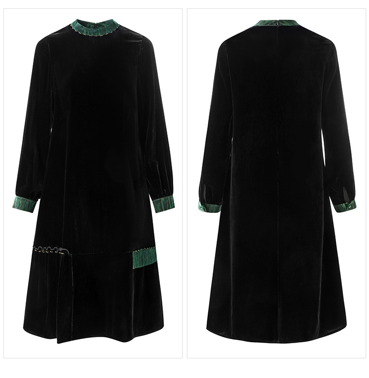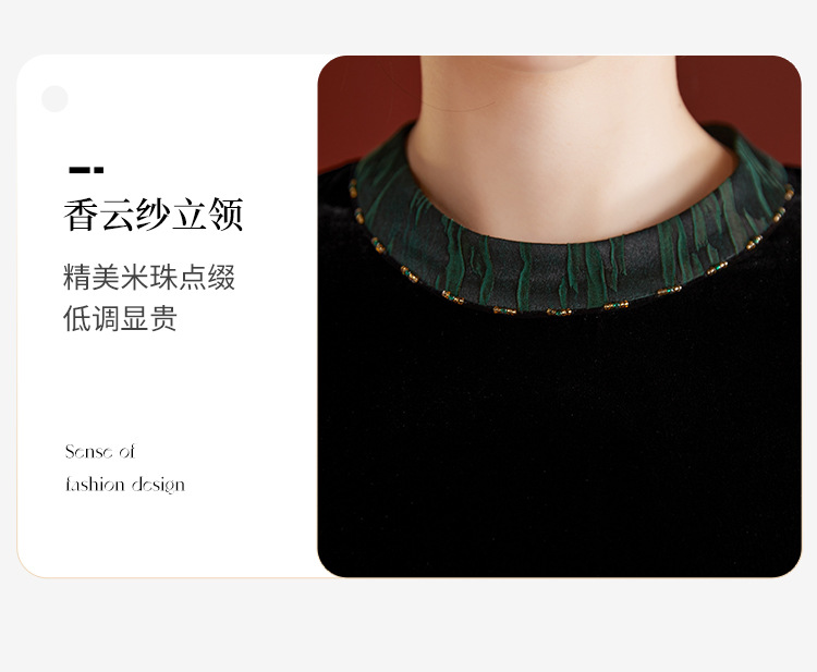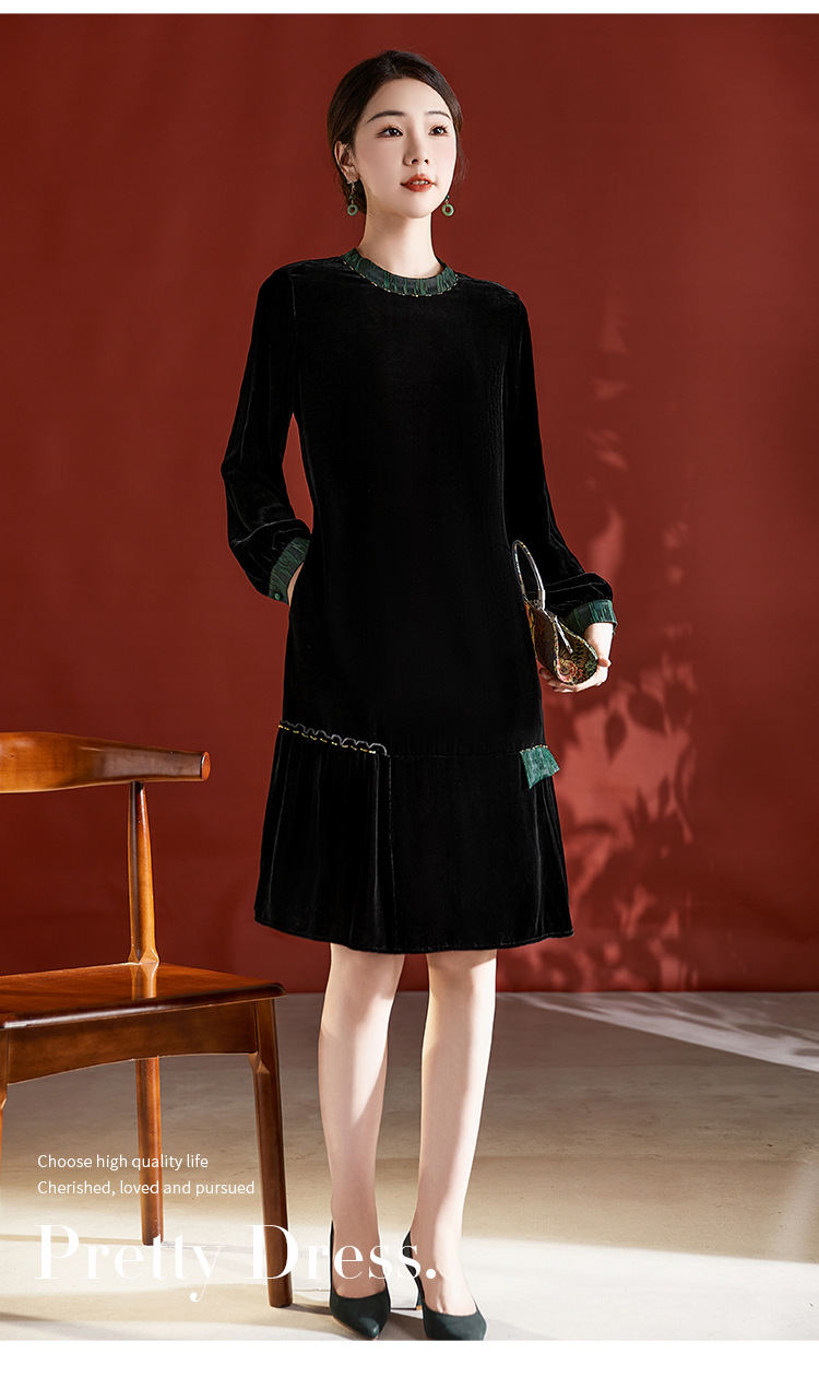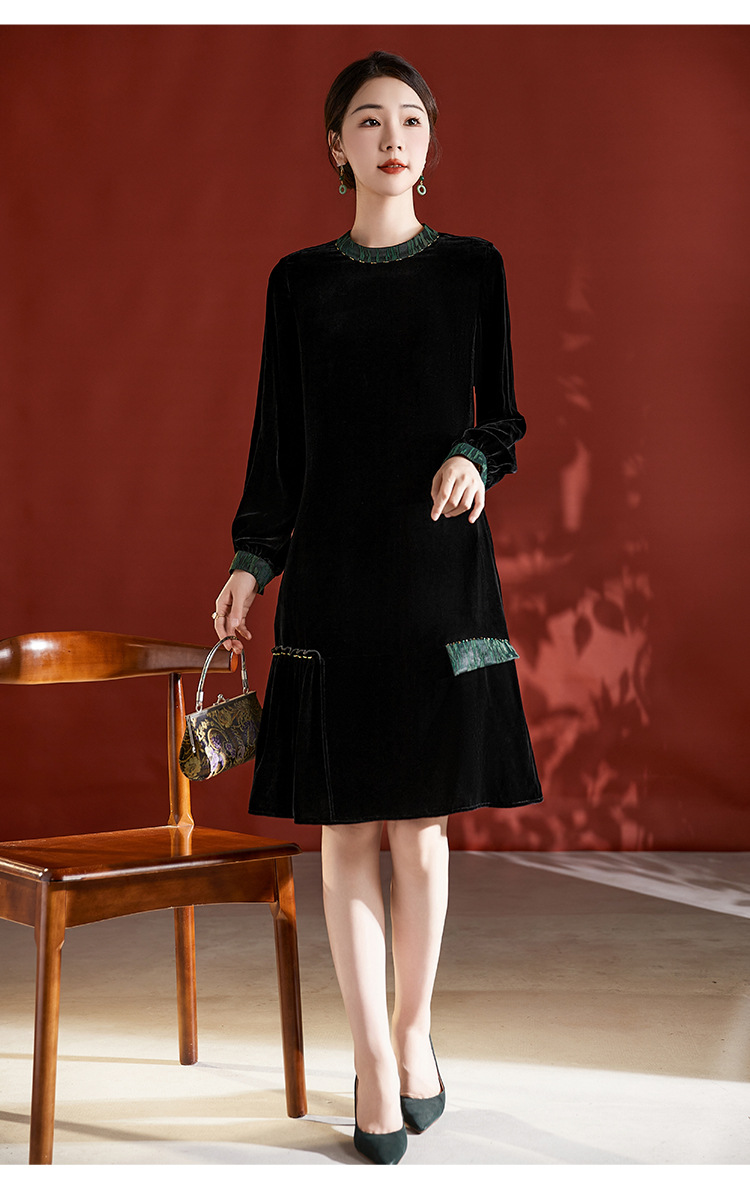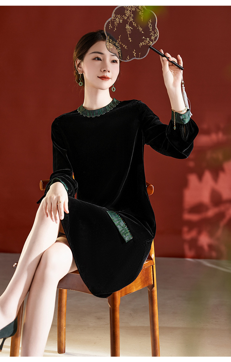 丝绒真丝连衣裙女2023秋季新款中式轻奢香云纱拼接桑蚕丝复古长裙QS-82395600