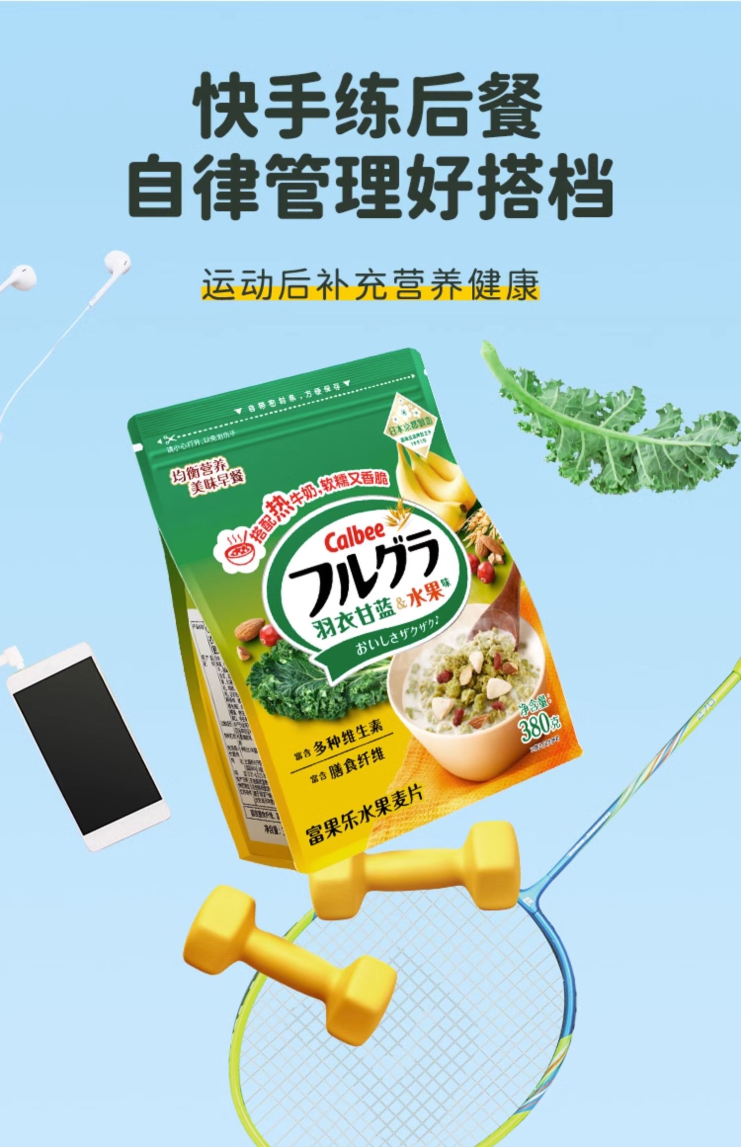 Calbee牌富果乐羽衣甘蓝水果味麦片380g/033635 即食谷物减糖50%以上高纤饱腹感强