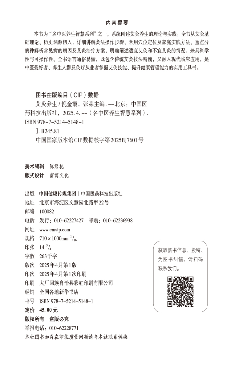 艾灸养生(名中医养生智慧系列)倪金霞 张淼 主编 详细讲解灸法操作步骤 常用穴位定位及家庭实践方法等 中国医药科技出版社