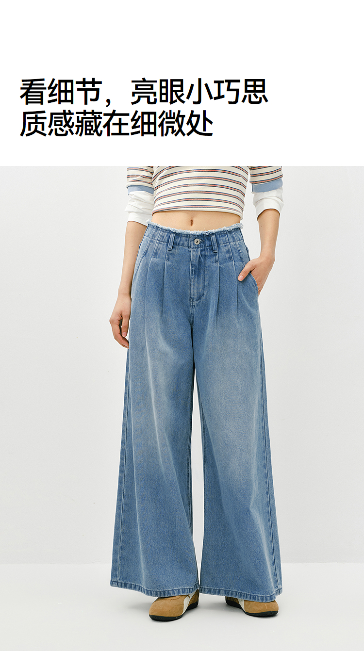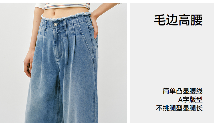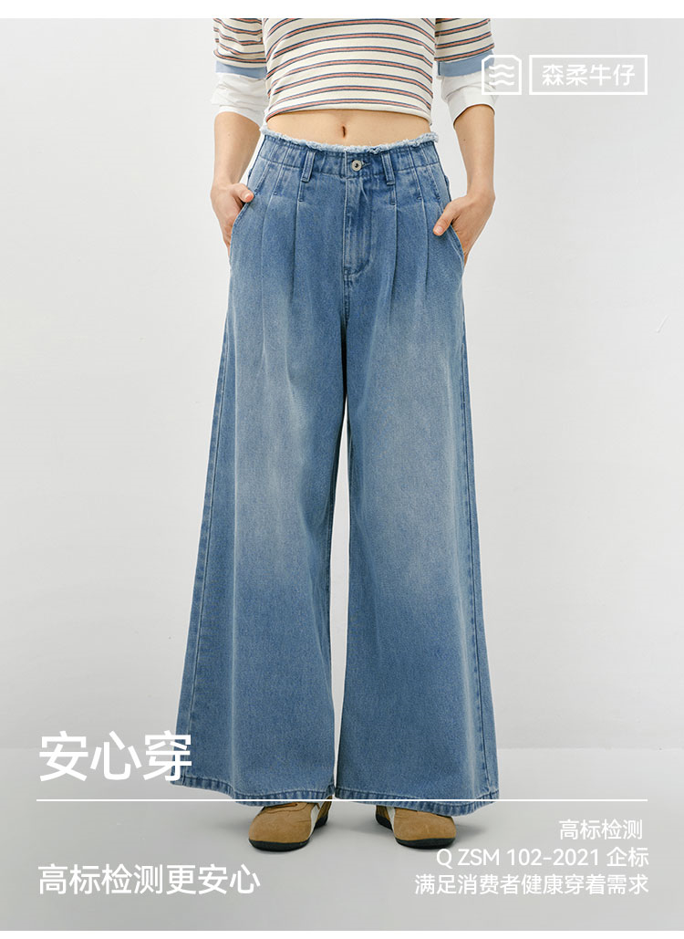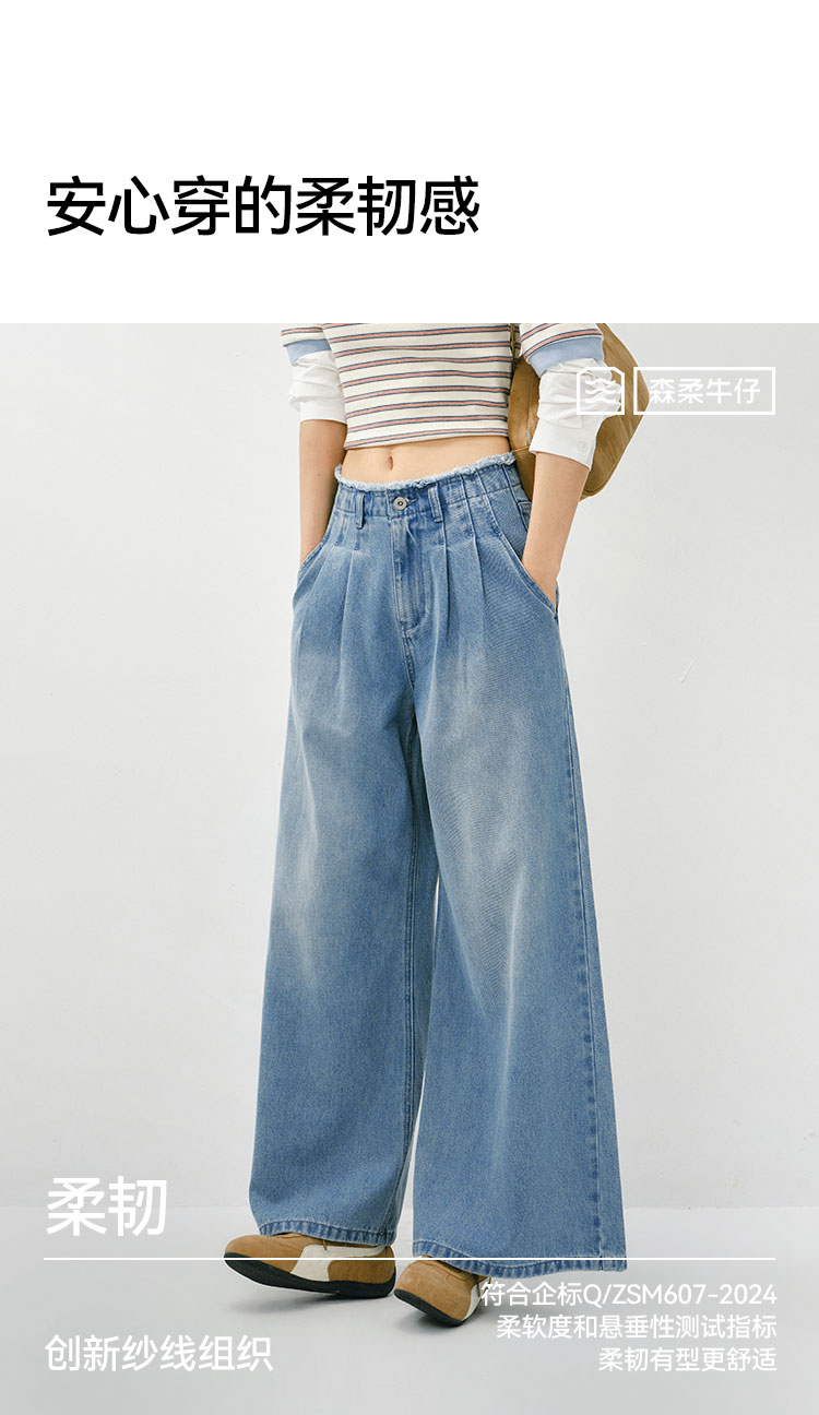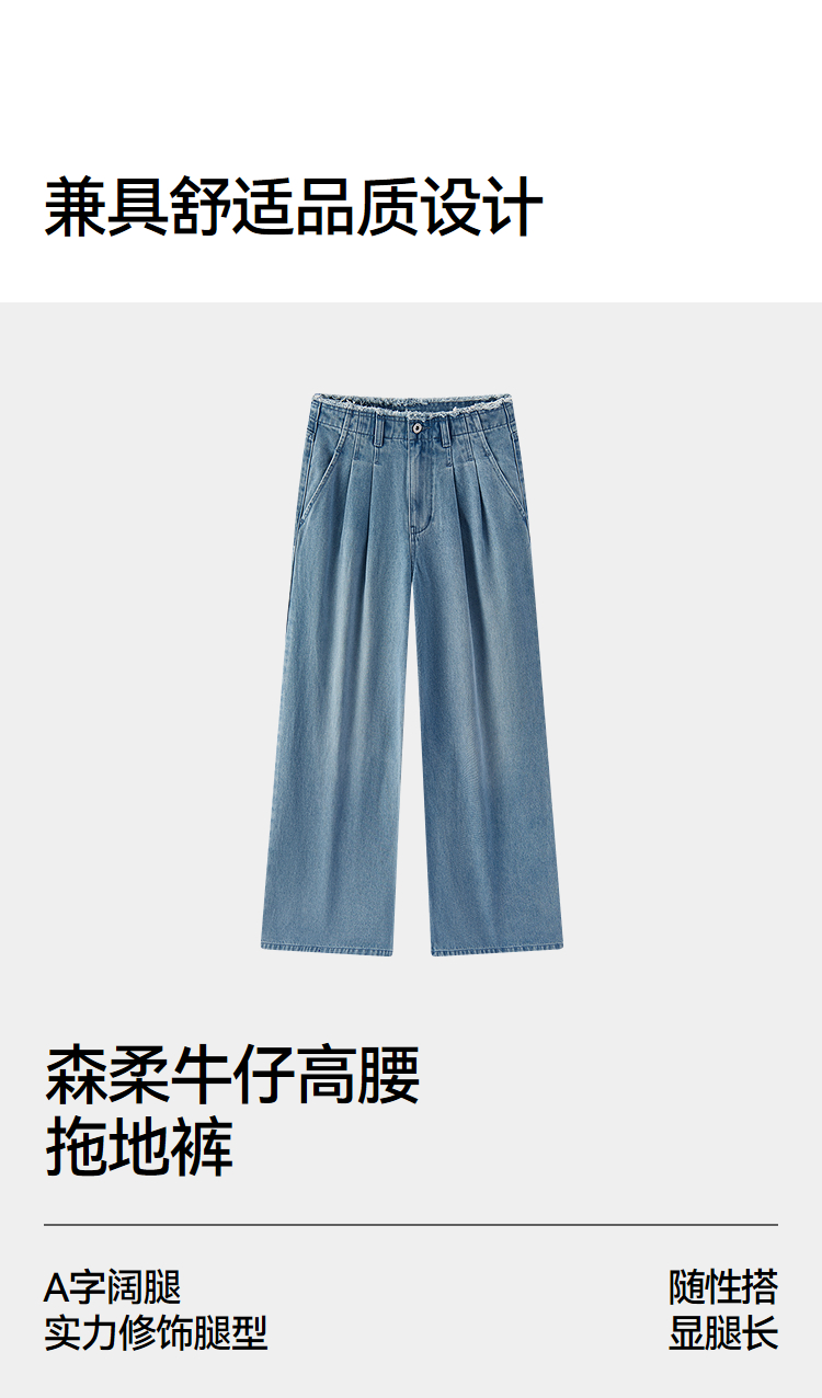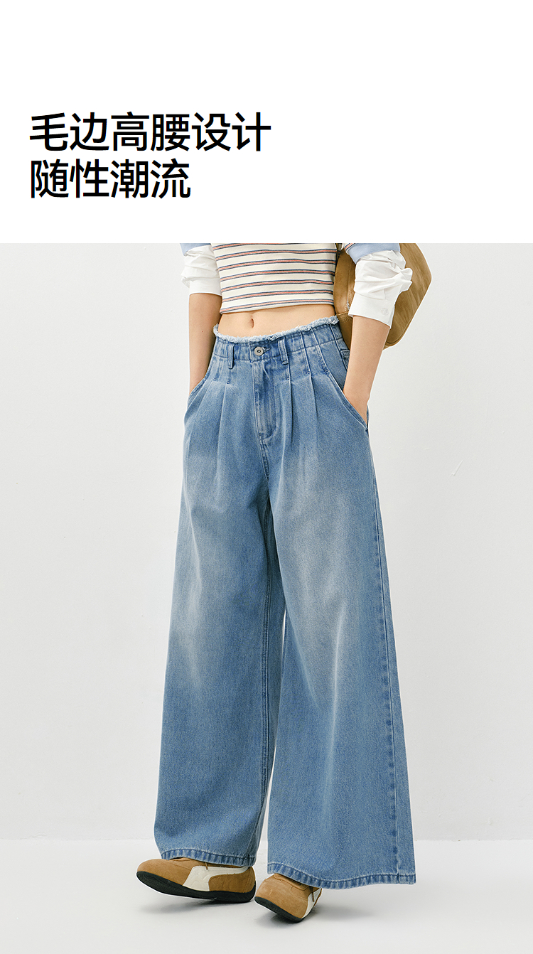 森柔|森马牛仔裤女春季毛边高腰阔腿裤2026新款显腿长潮流拖地裤