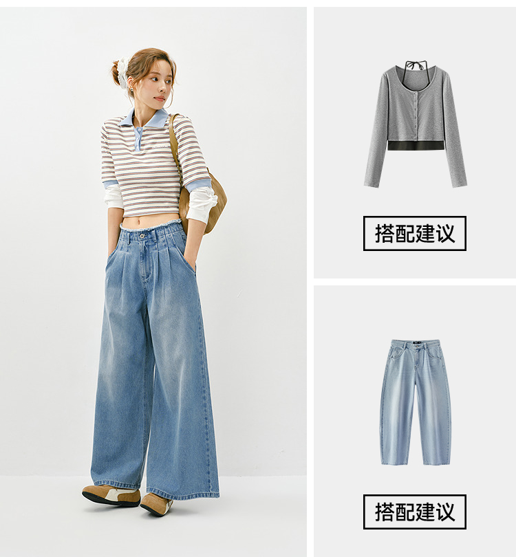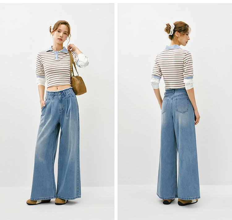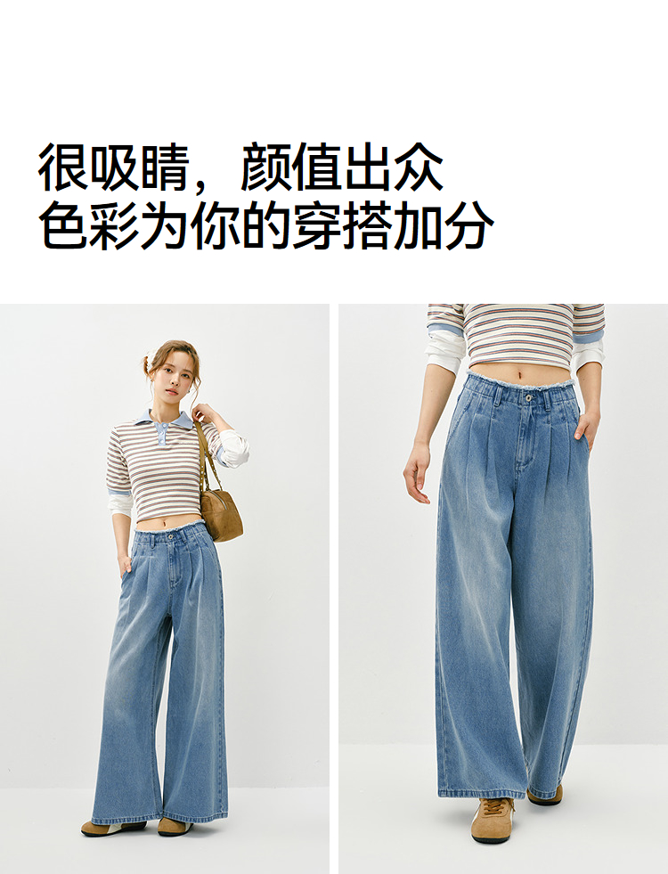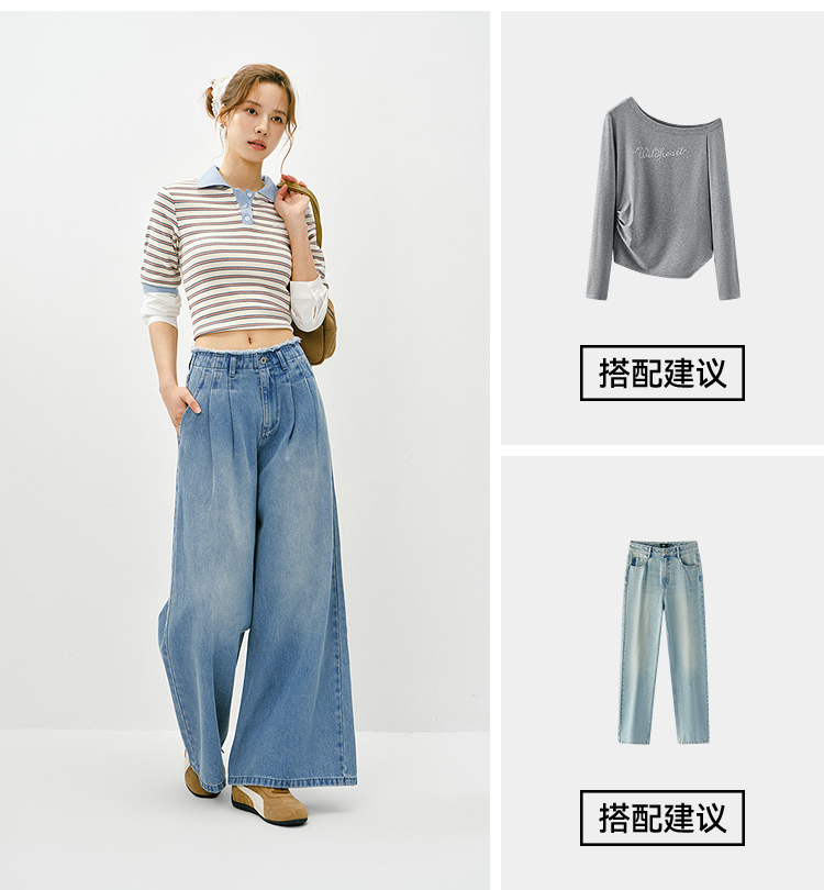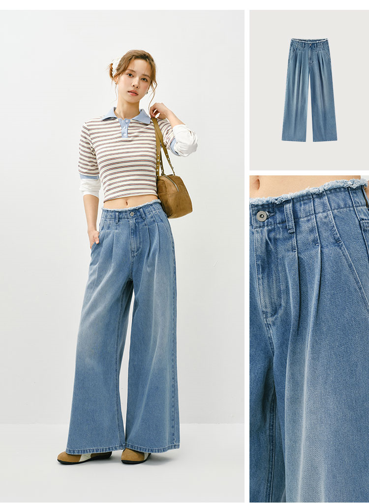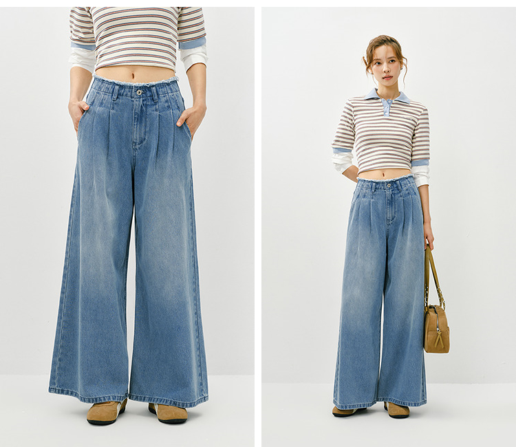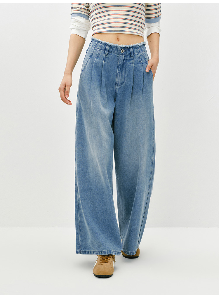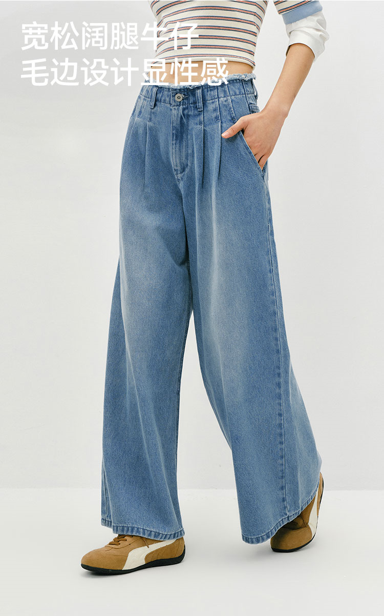 森柔|森马牛仔裤女春季毛边高腰阔腿裤2026新款显腿长潮流拖地裤