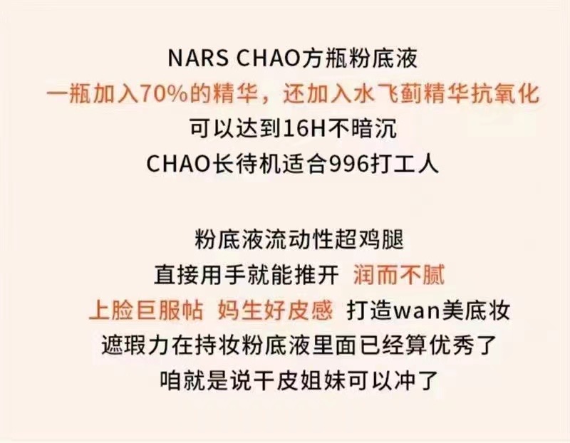 [小滋心选]【活动价¥69.9】NARS 流光美肌粉底液10ml