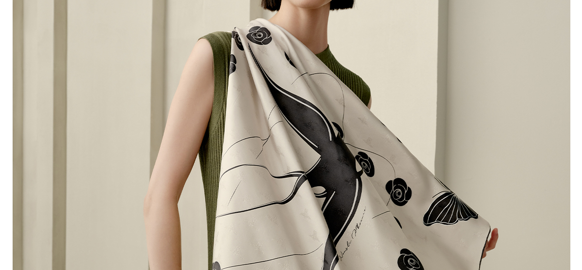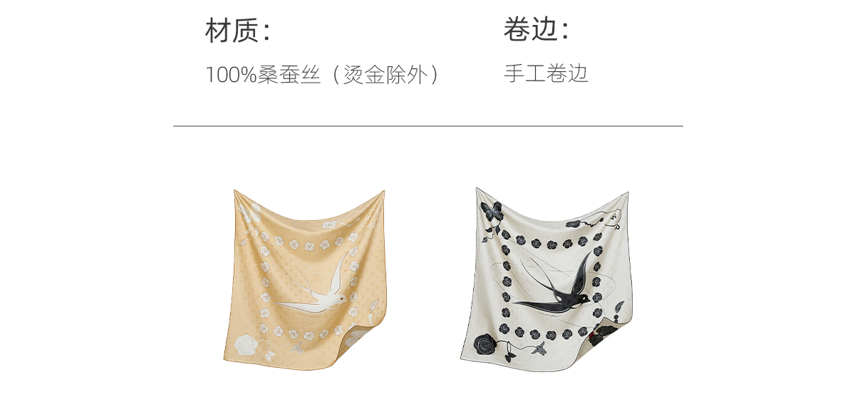 凤凰之家“燕燕于飞”88厘米双面印花大方巾