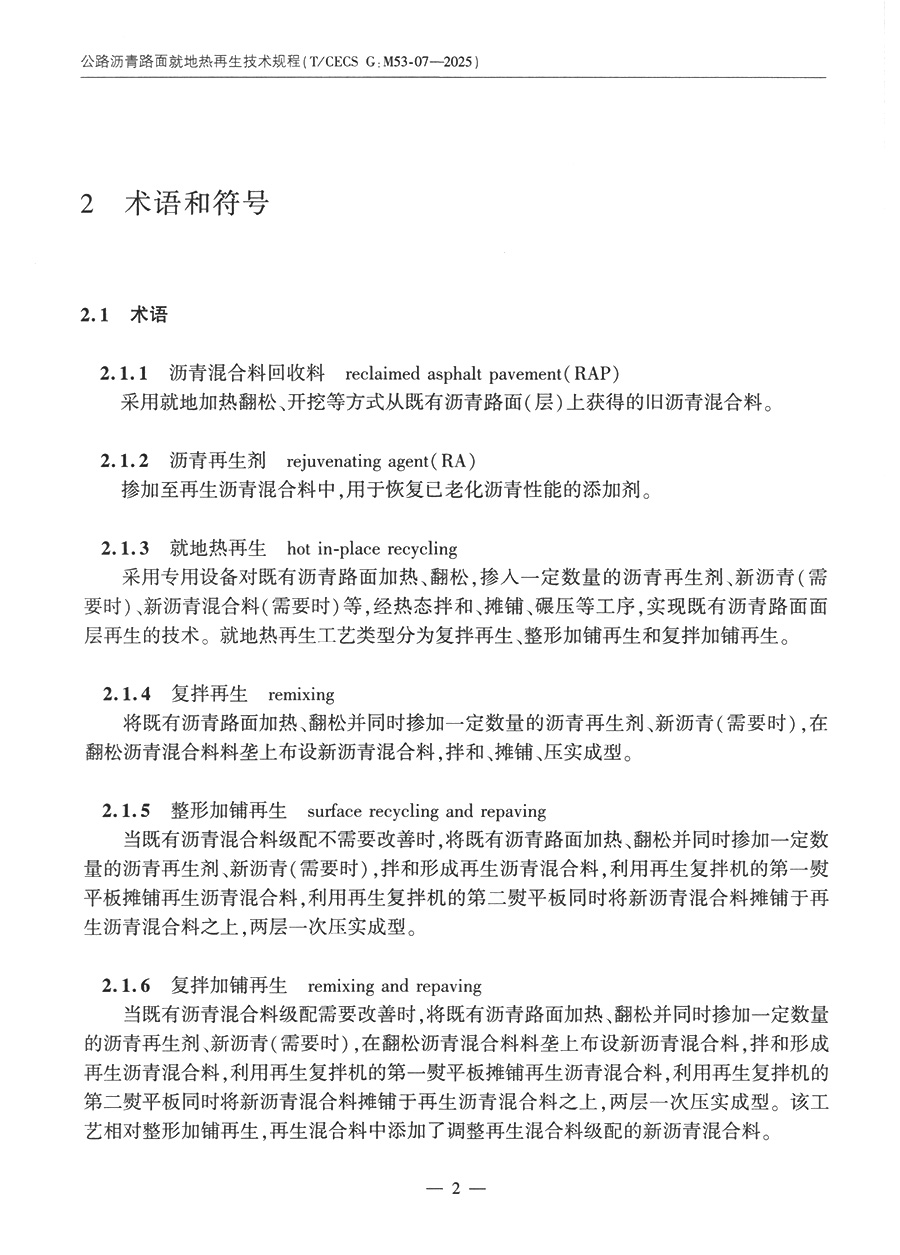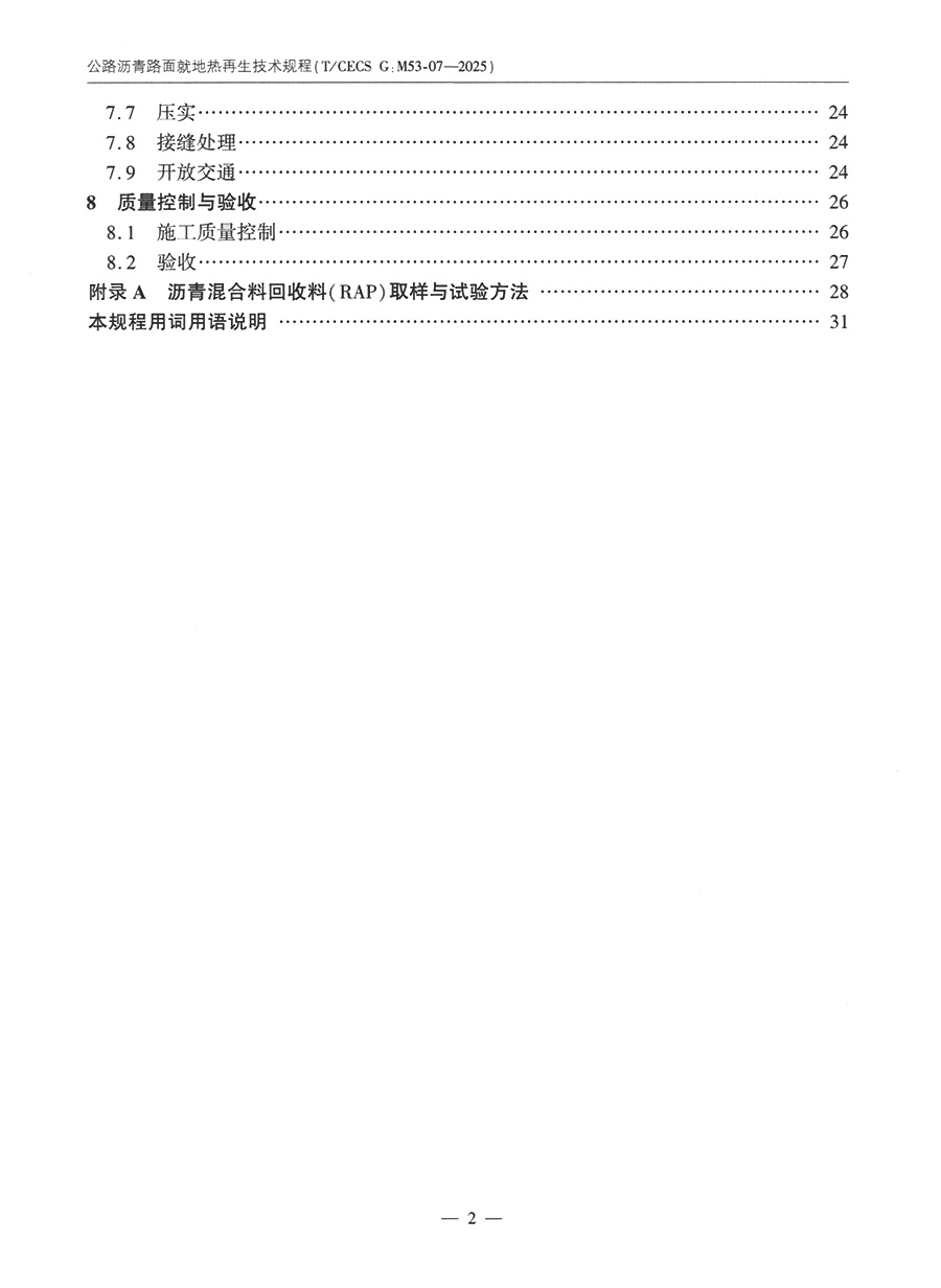 公路沥青路面就地热再生技术规程(T/CECS G:M53-07—2025)