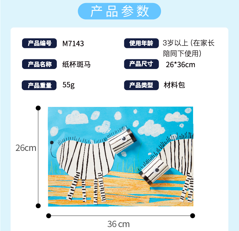 纸杯斑马创意美术手工diy儿童绘画涂色自制作材料包幼儿园机构