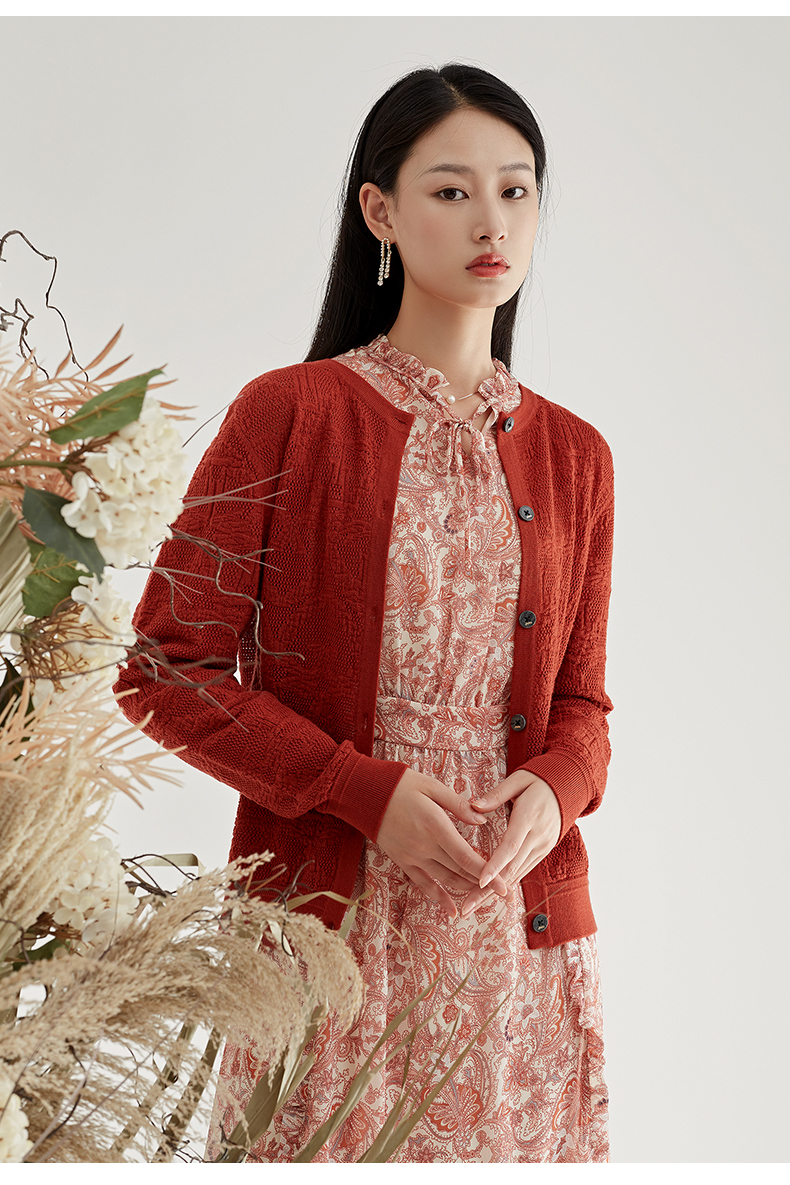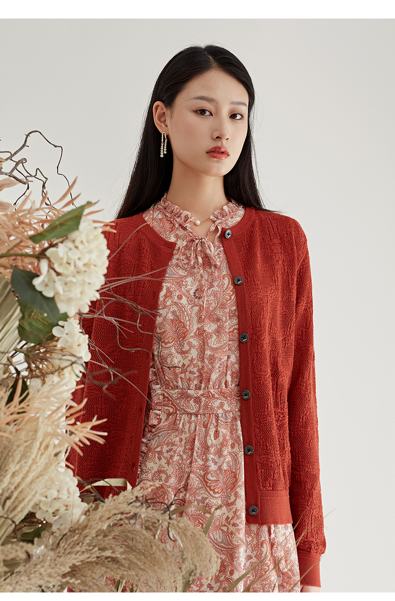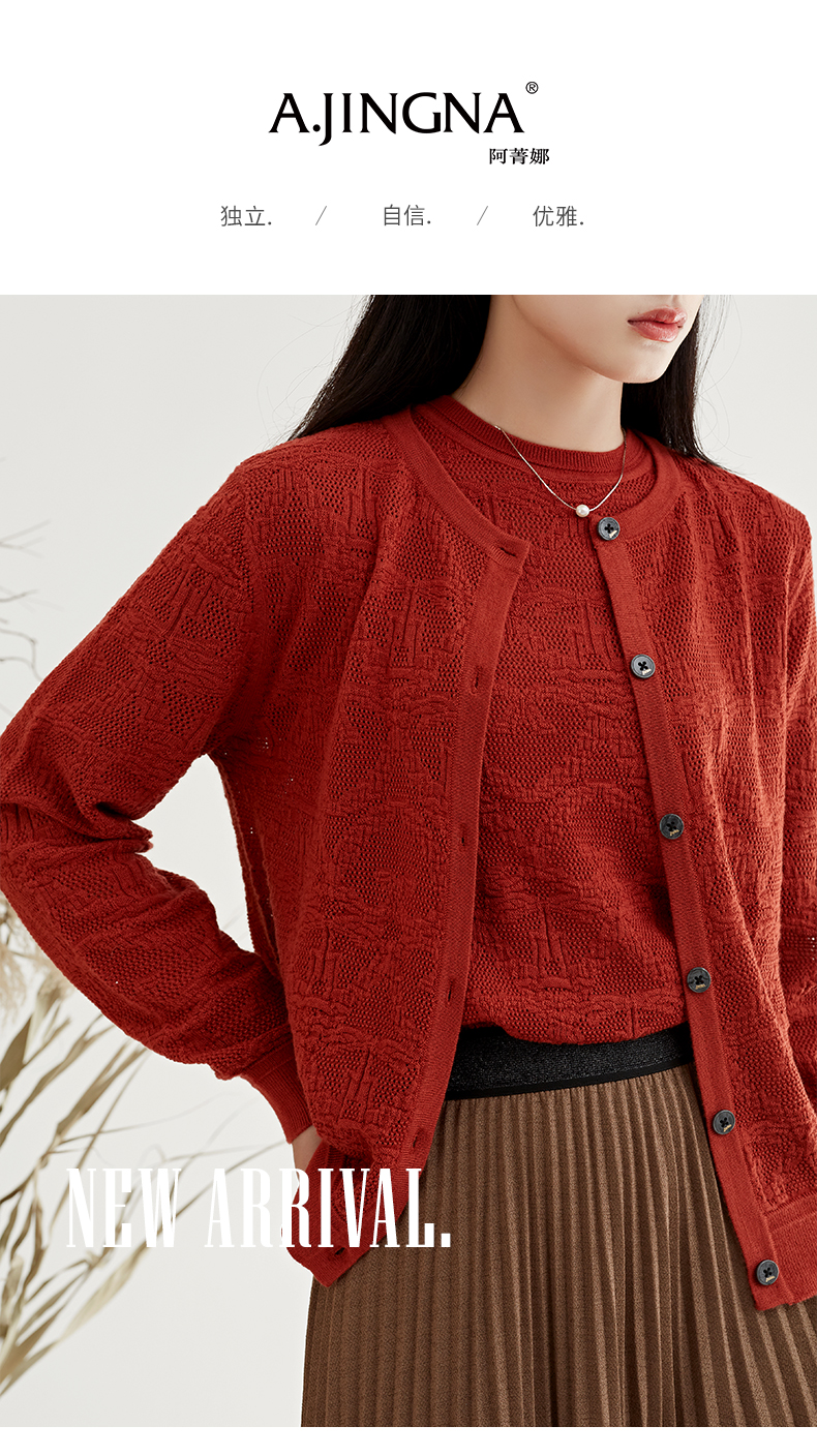 【特价不退换】阿菁娜圆领开衫羊毛百搭针织衫长袖A27Q318009