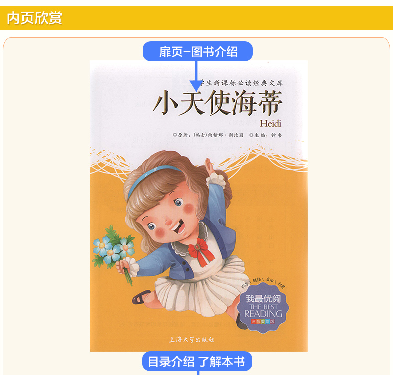 1-3年级适用 注音美绘版-小天使海蒂 钟书正版少儿读物我优阅系列拼音彩图版小天使海蒂 儿童文学课外读物小学生作文阅读写作能力