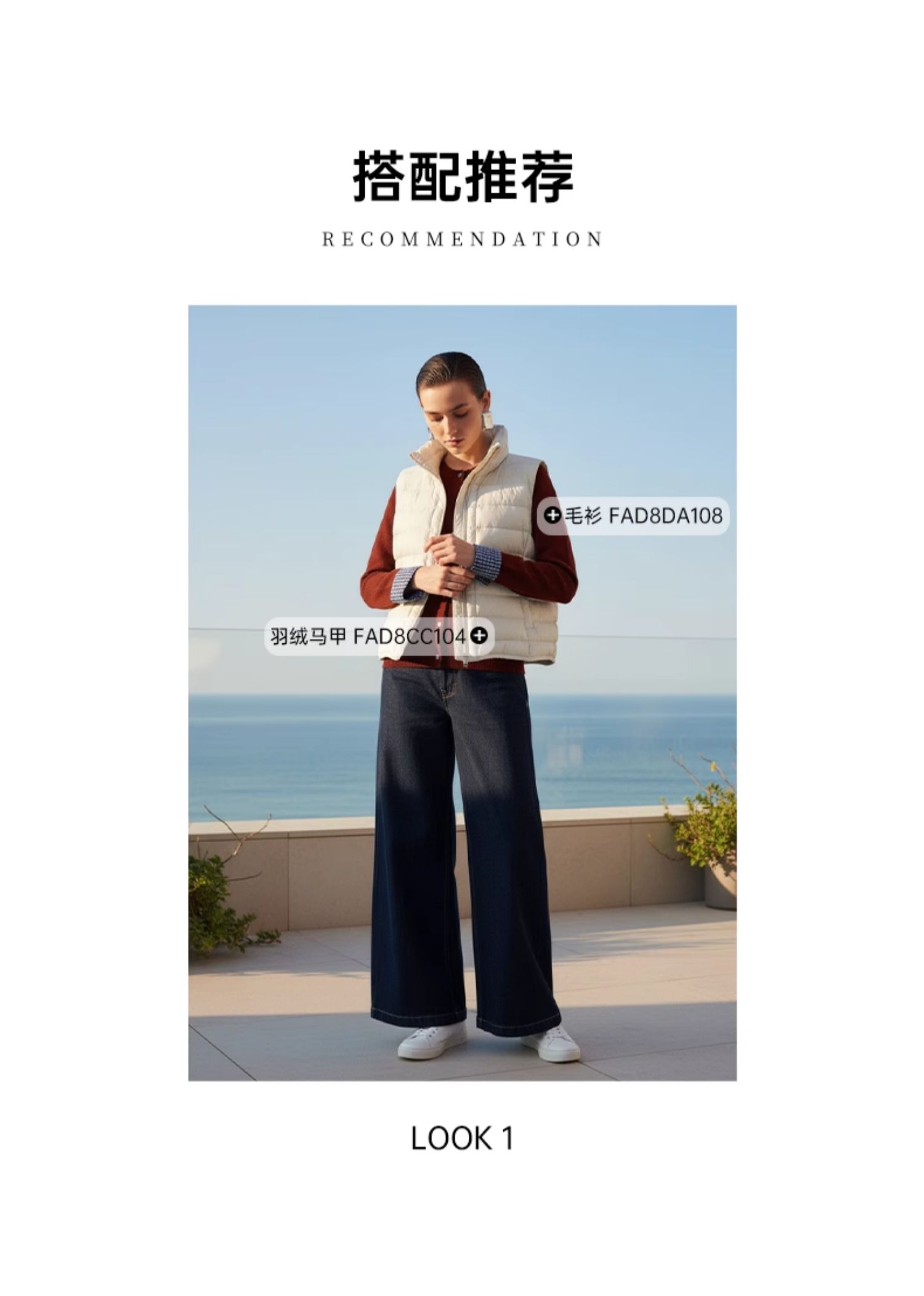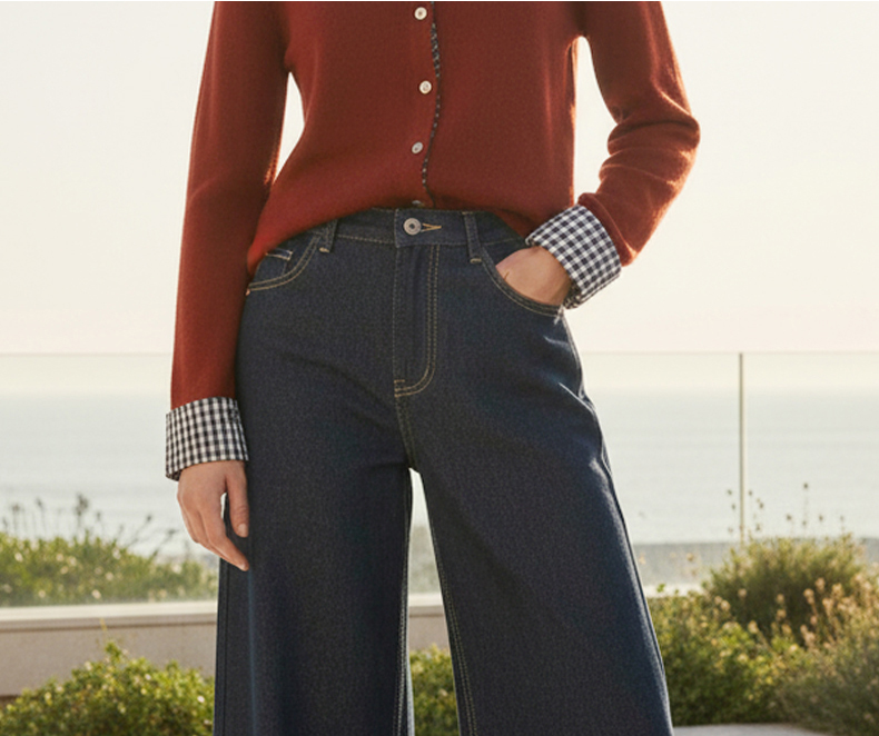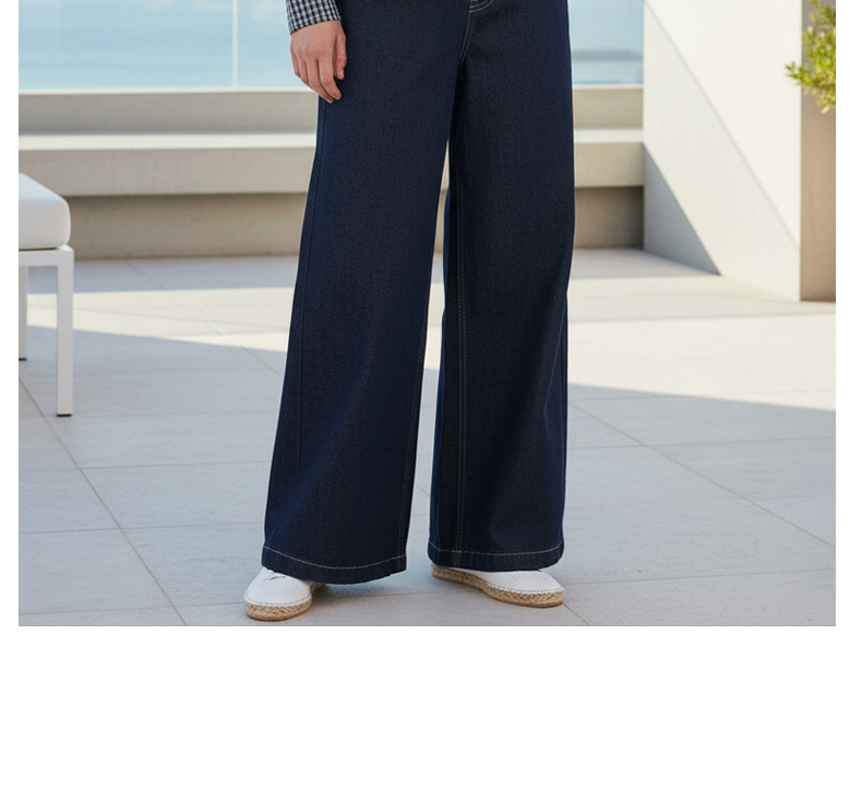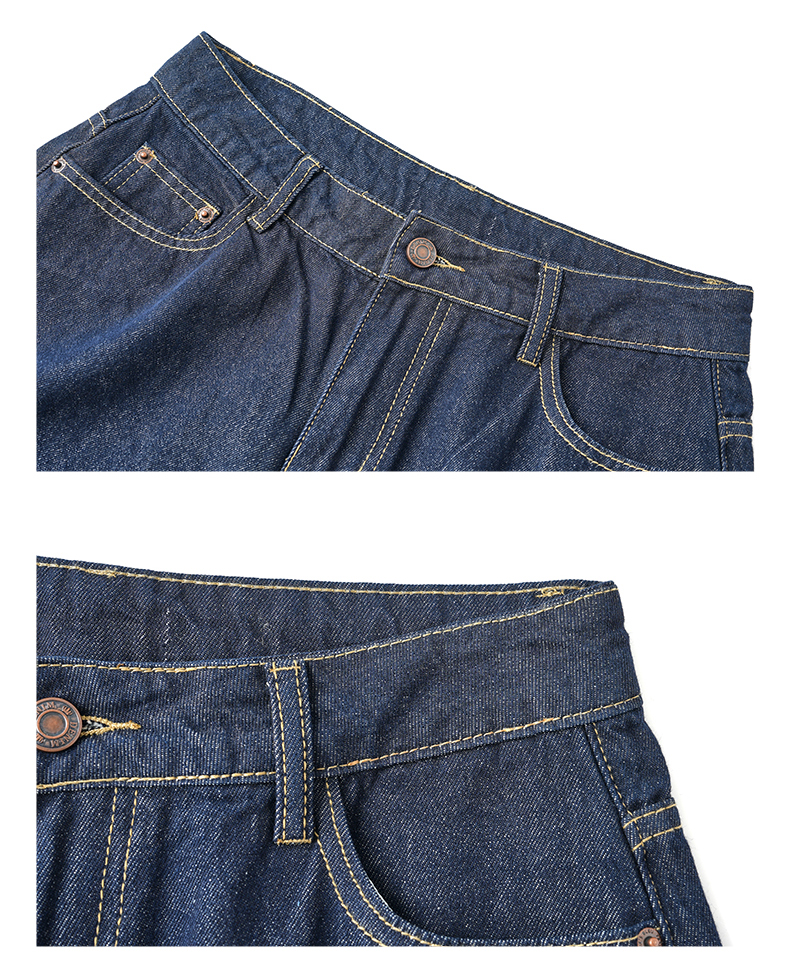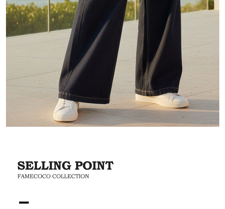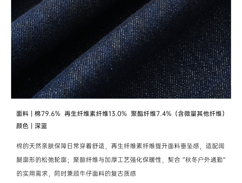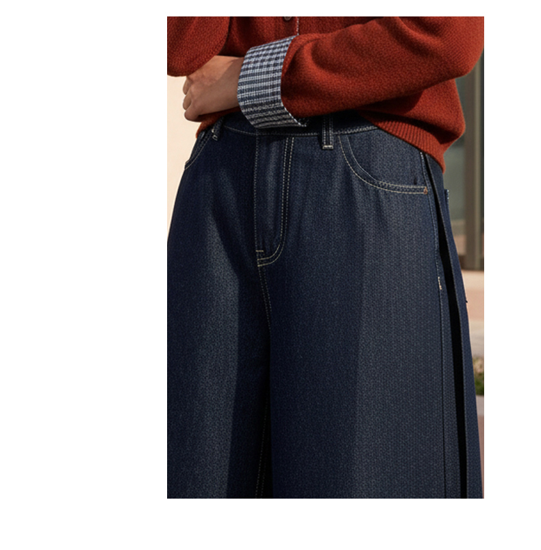 Famecoco复古深蓝加厚牛仔裤宽松高腰阔腿裤显瘦百搭FAD8GA122