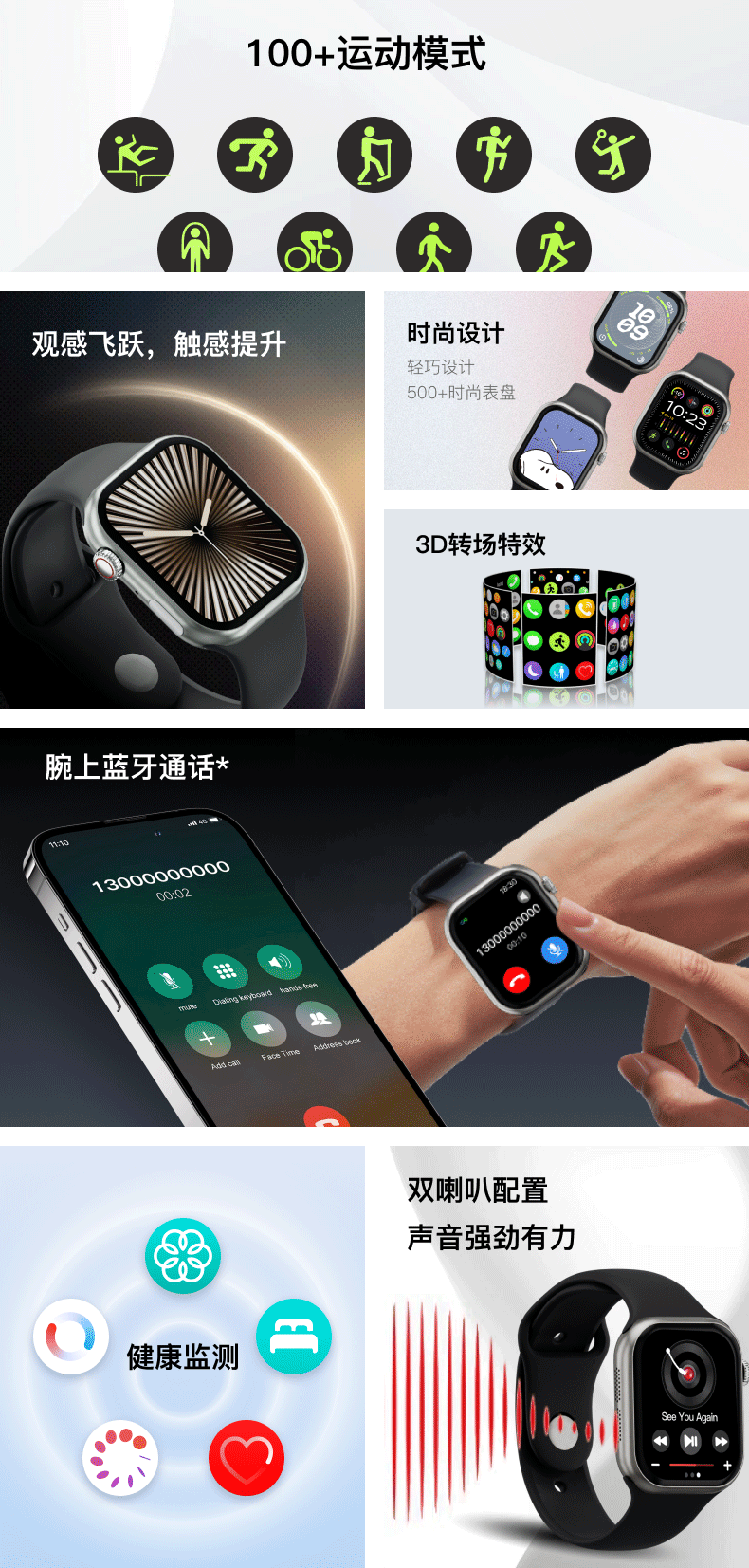 【宇柏 S10系列智能运动手表】新款S10灵动岛+支付功能智能运动手表,机身更薄,全面大屏,健康监测 电话/微信信息接收安卓/苹果通用!